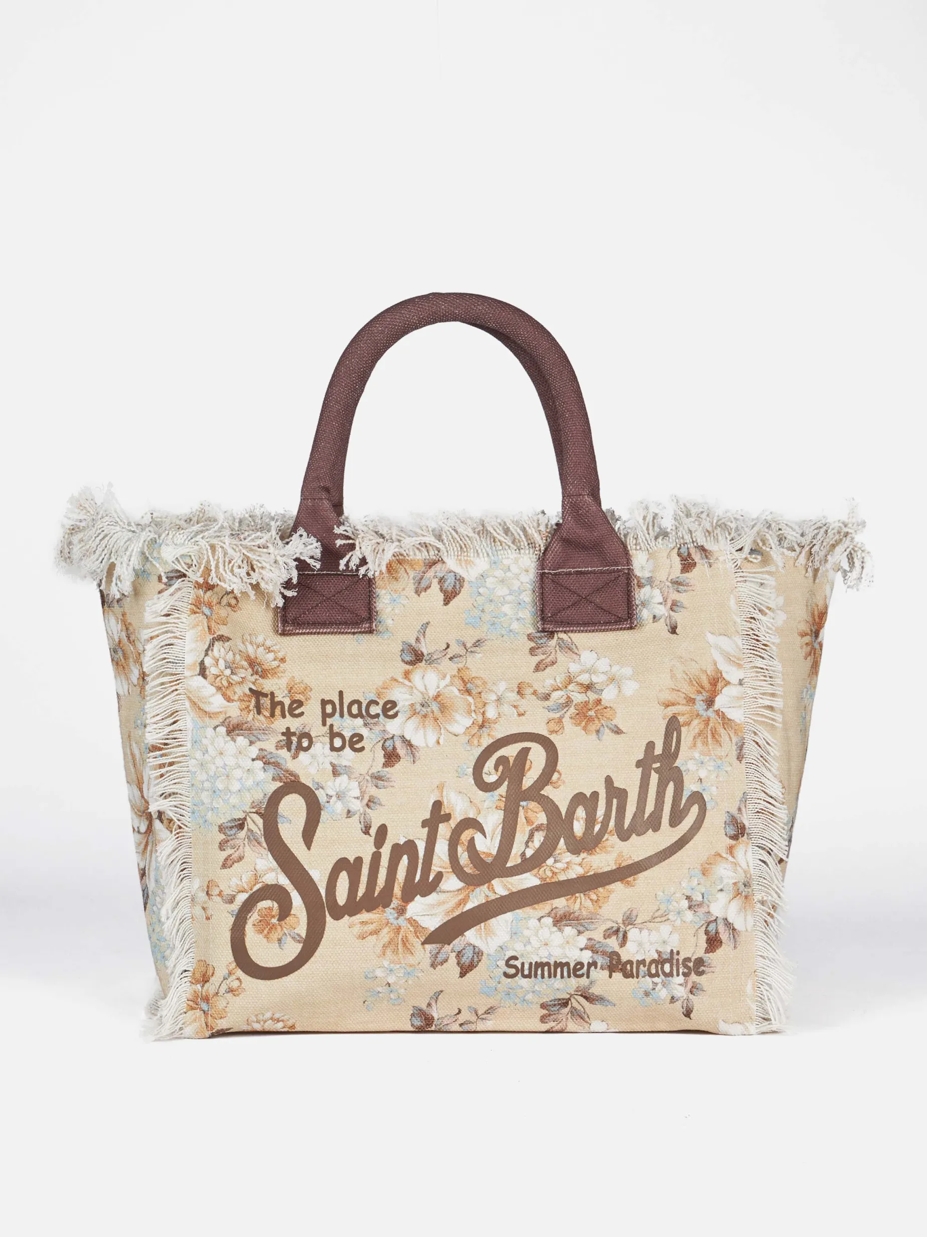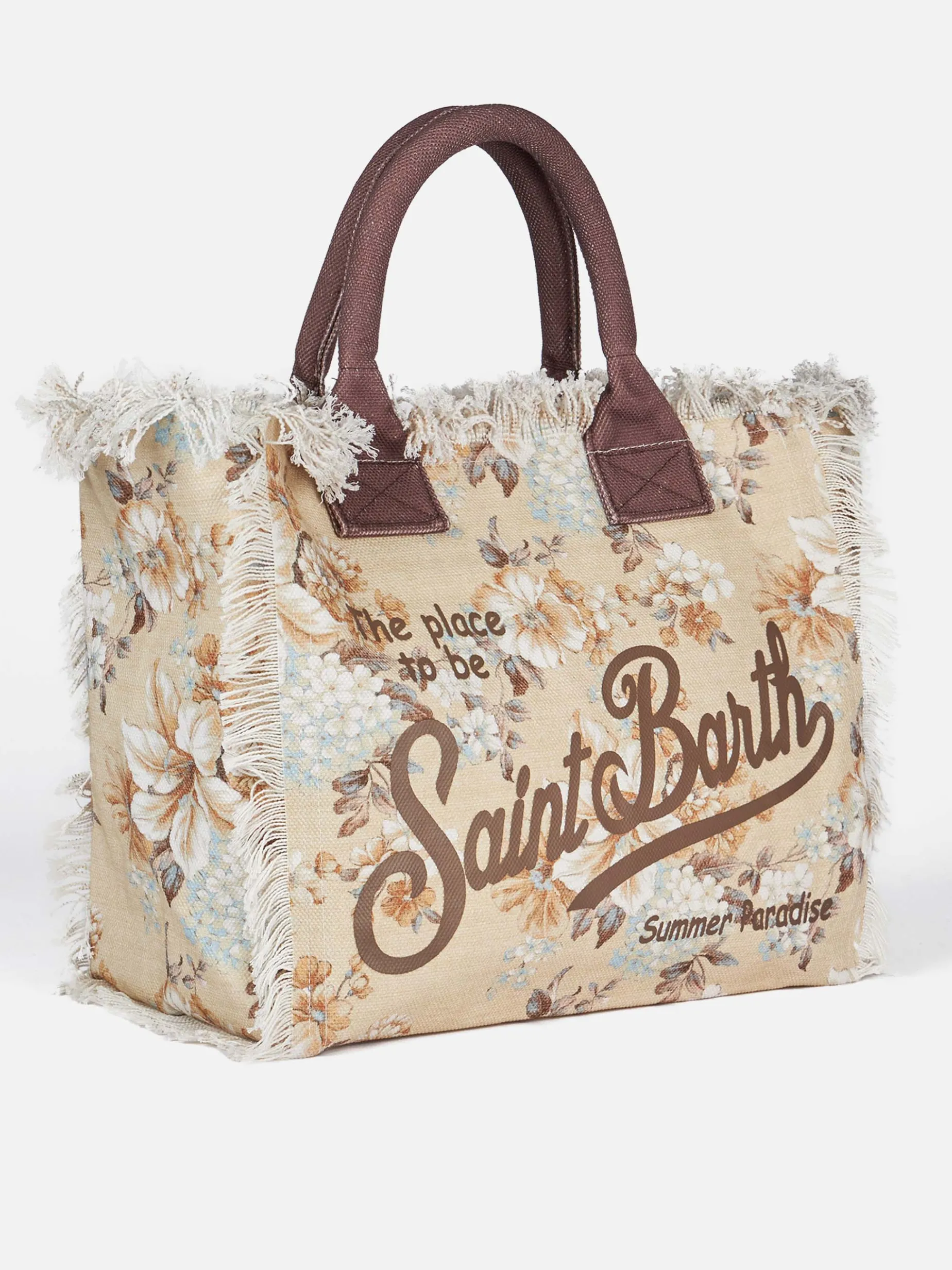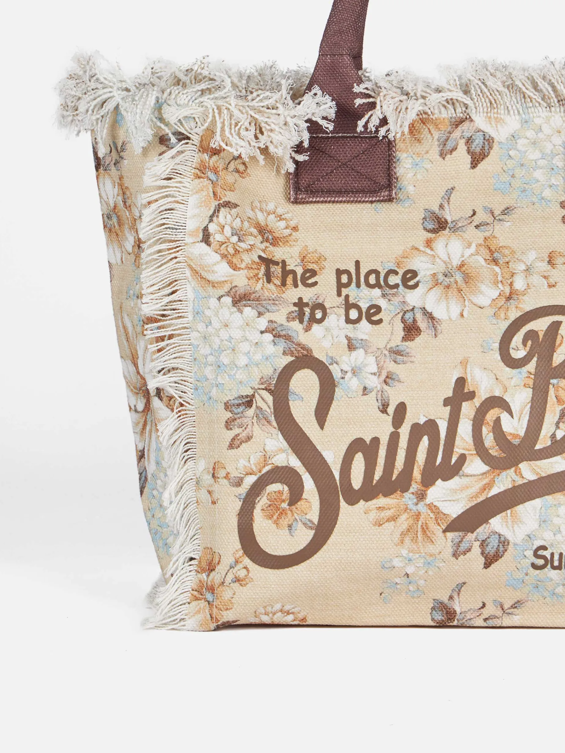 Borsa tote Vanity in tela di cotone con frange