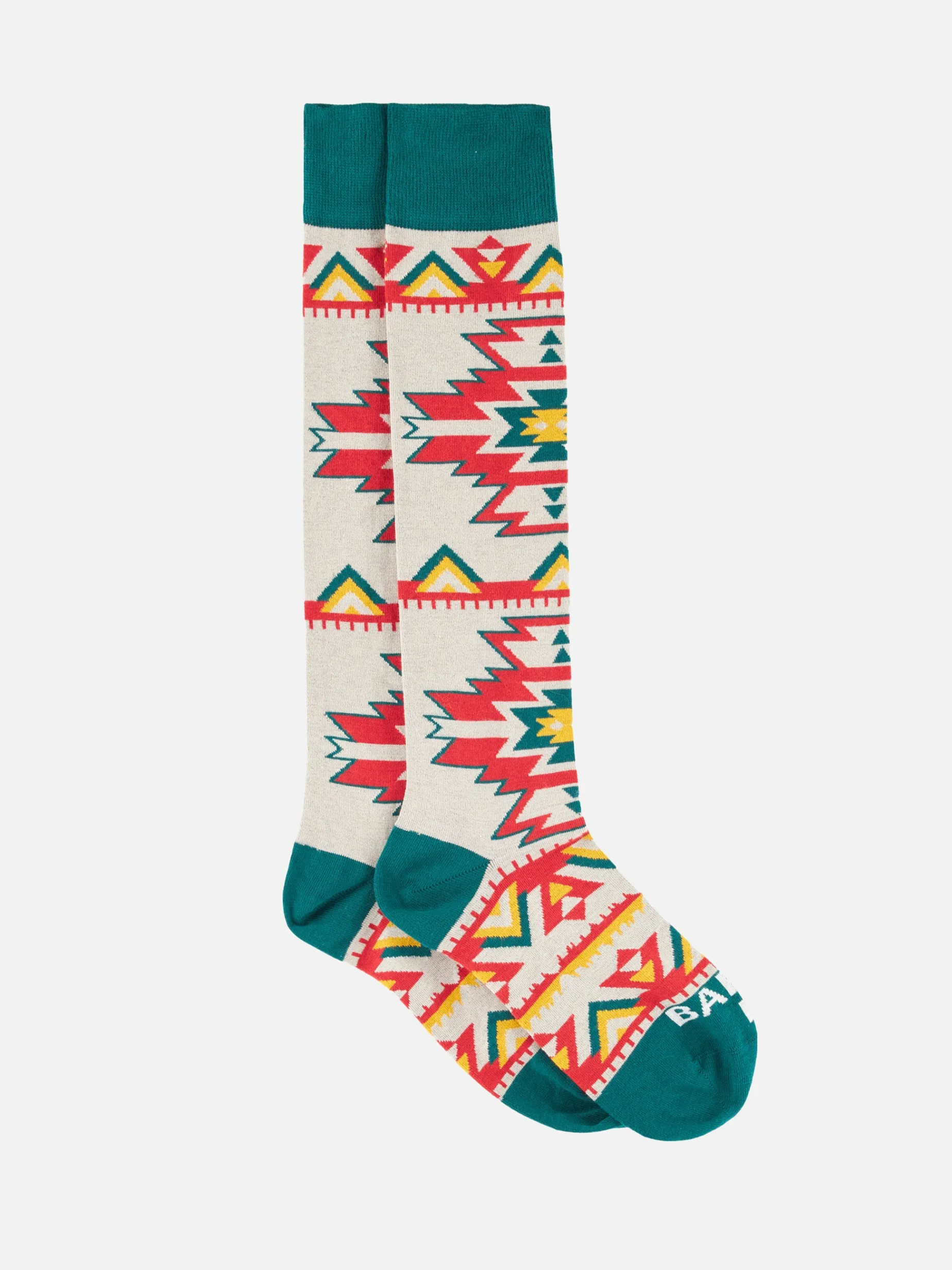 Modello etnico rosso e giallo su fondo beige