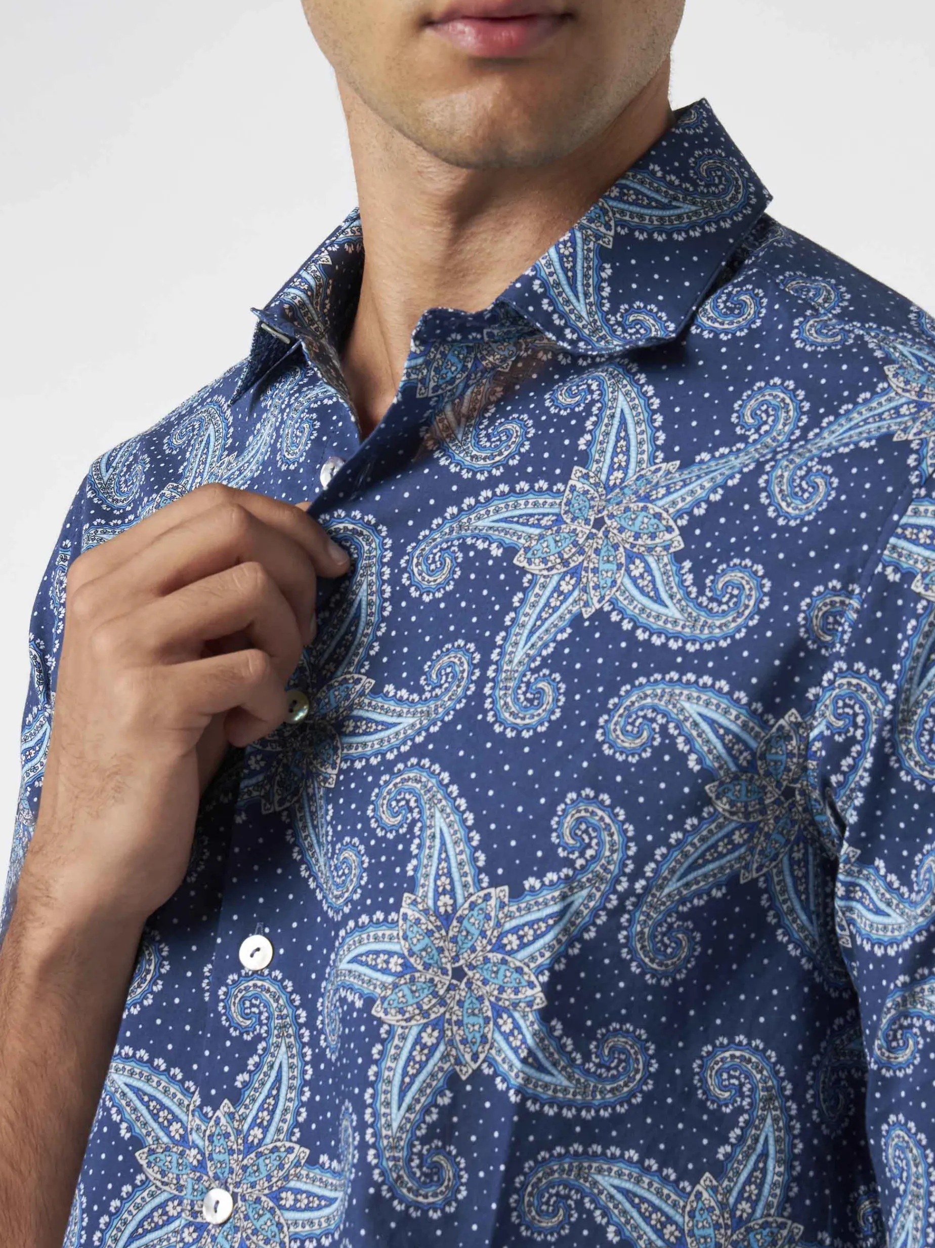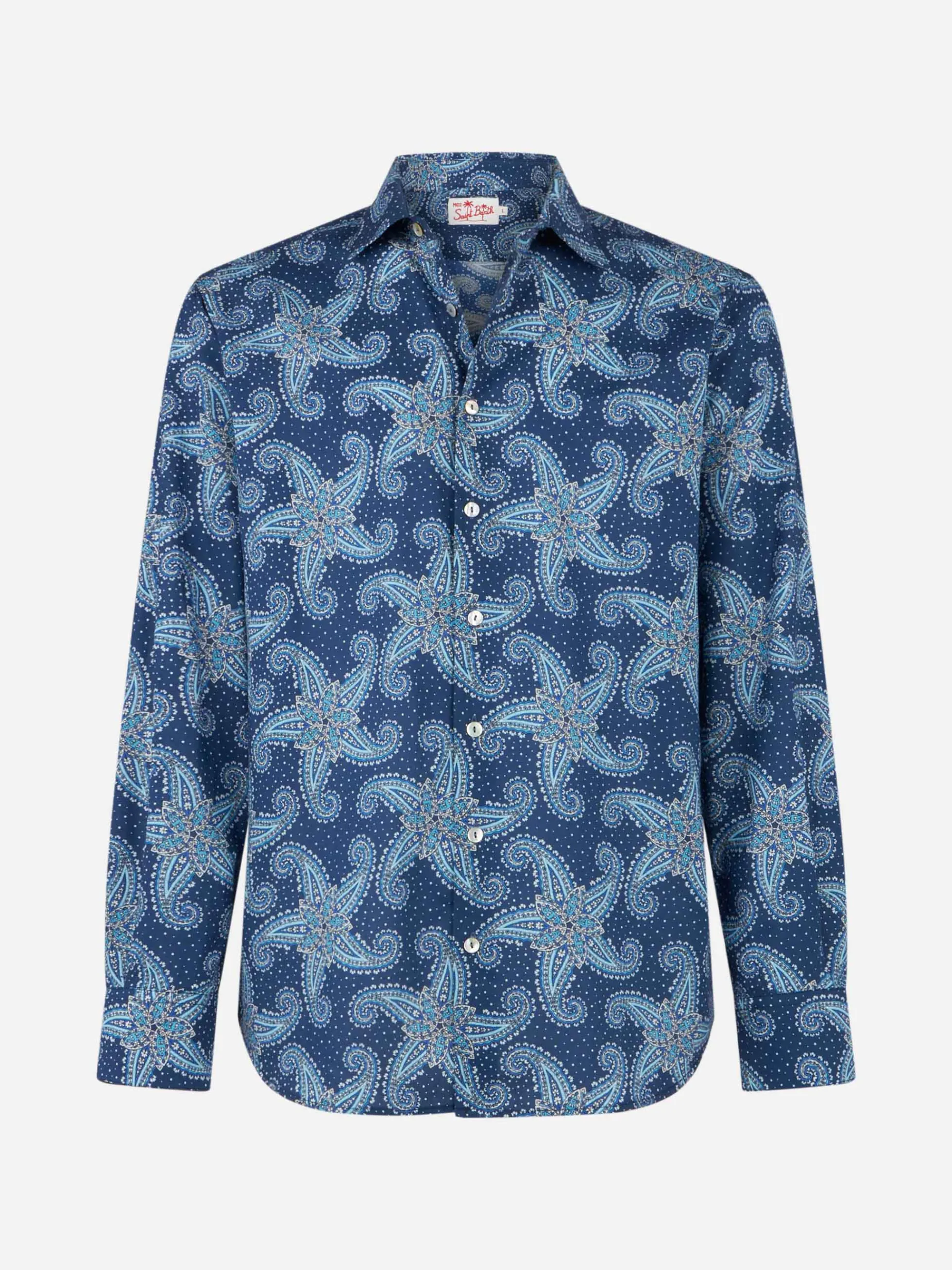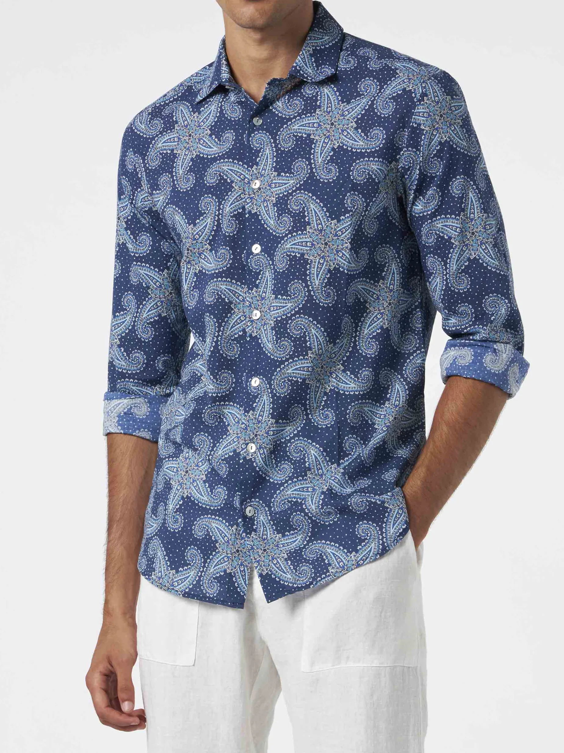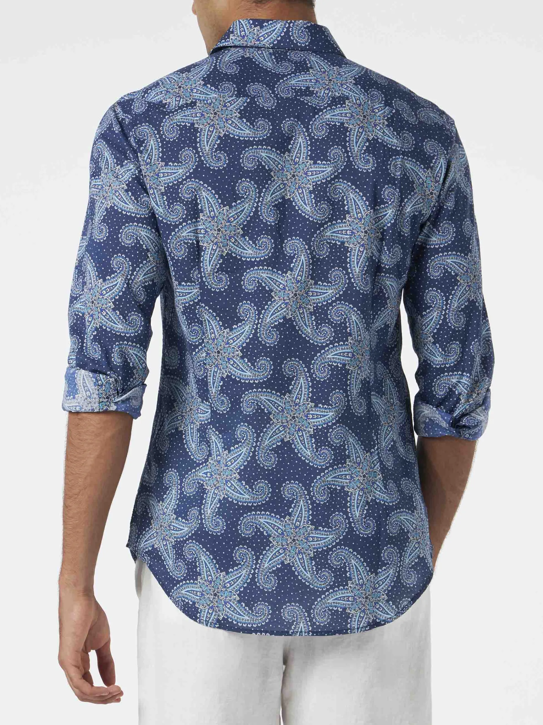 Camicia da uomo Sikelia in mussola di cotone con stampa stelle paisley