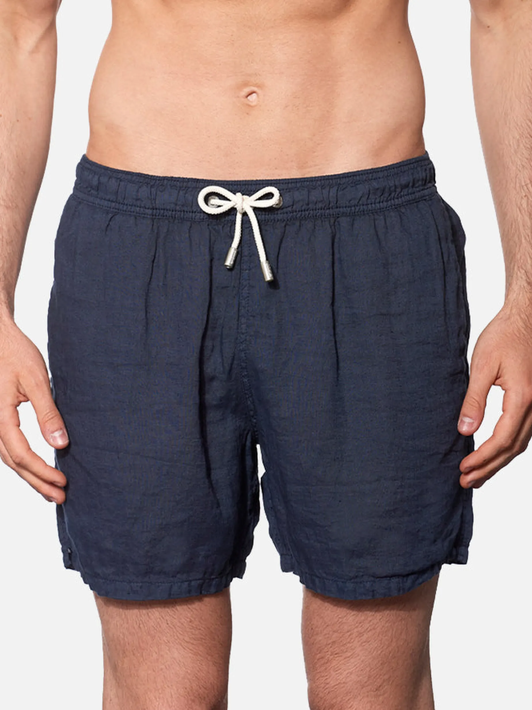 Costume da bagno in lino di media lunghezza blu tinta unita