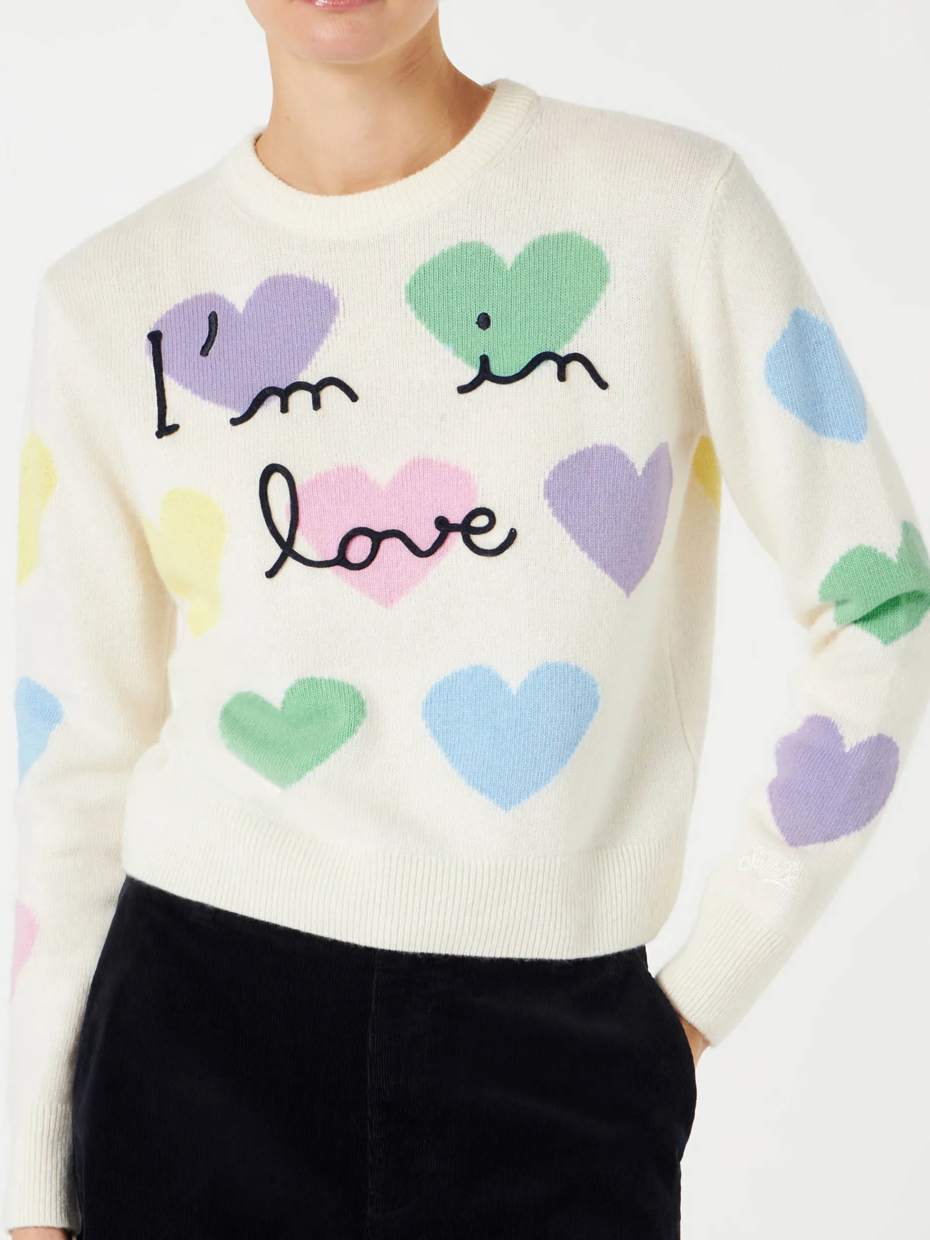 Stampa jacquard cuori multicolore