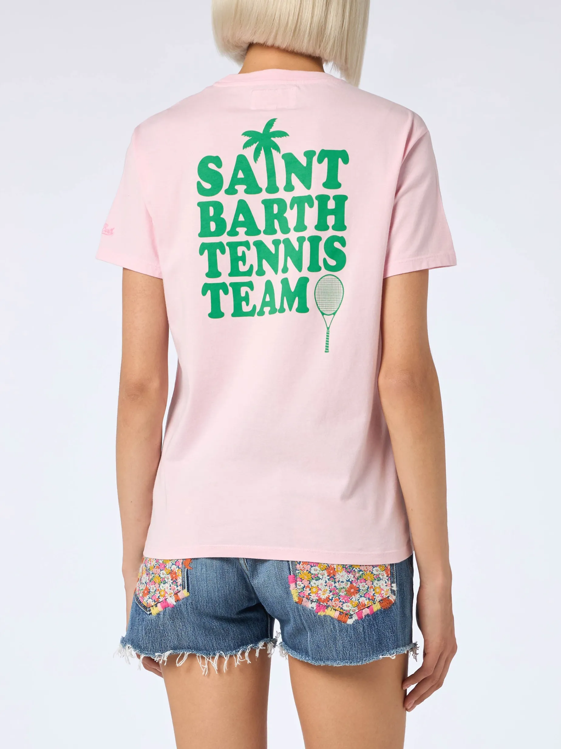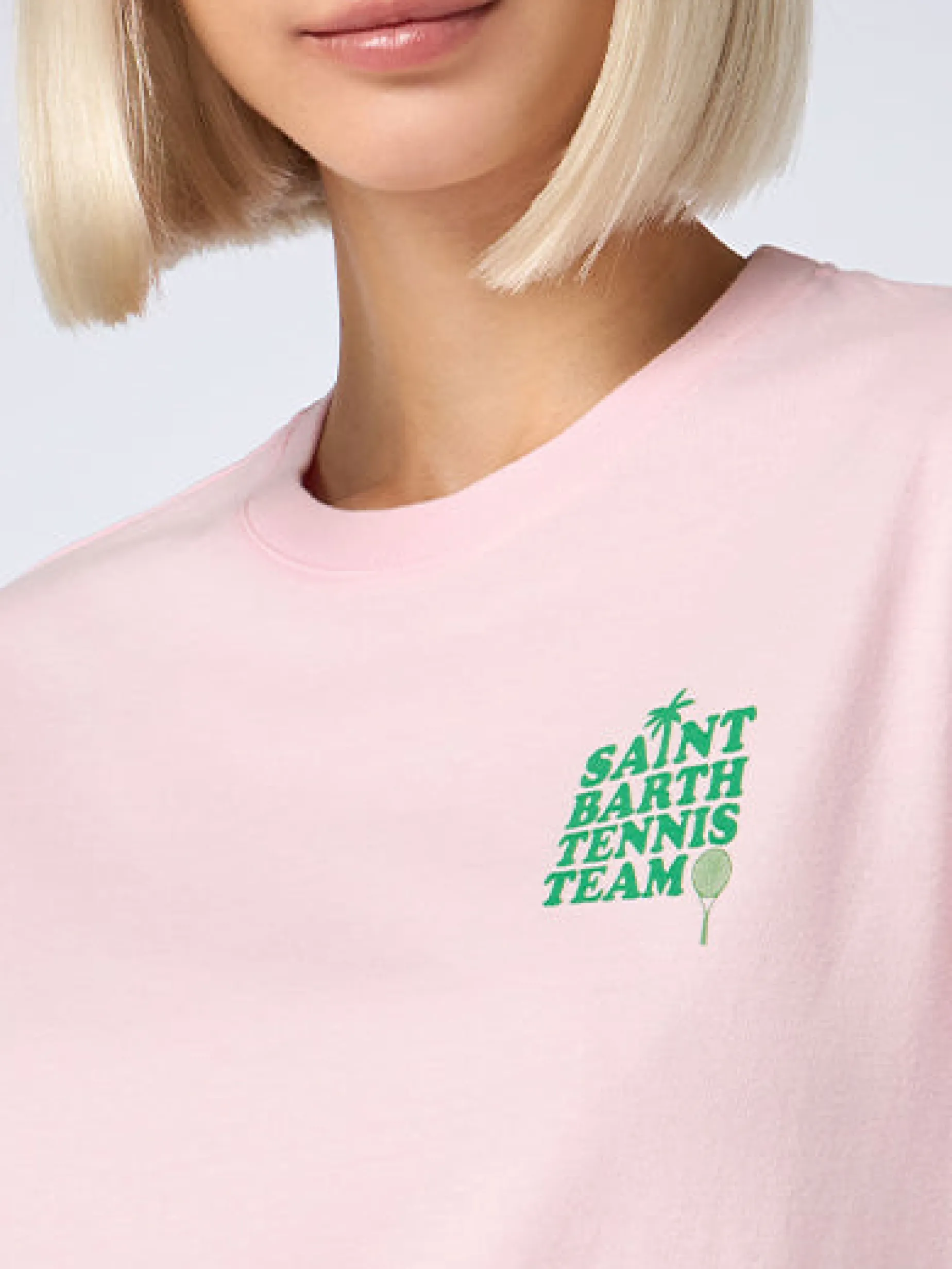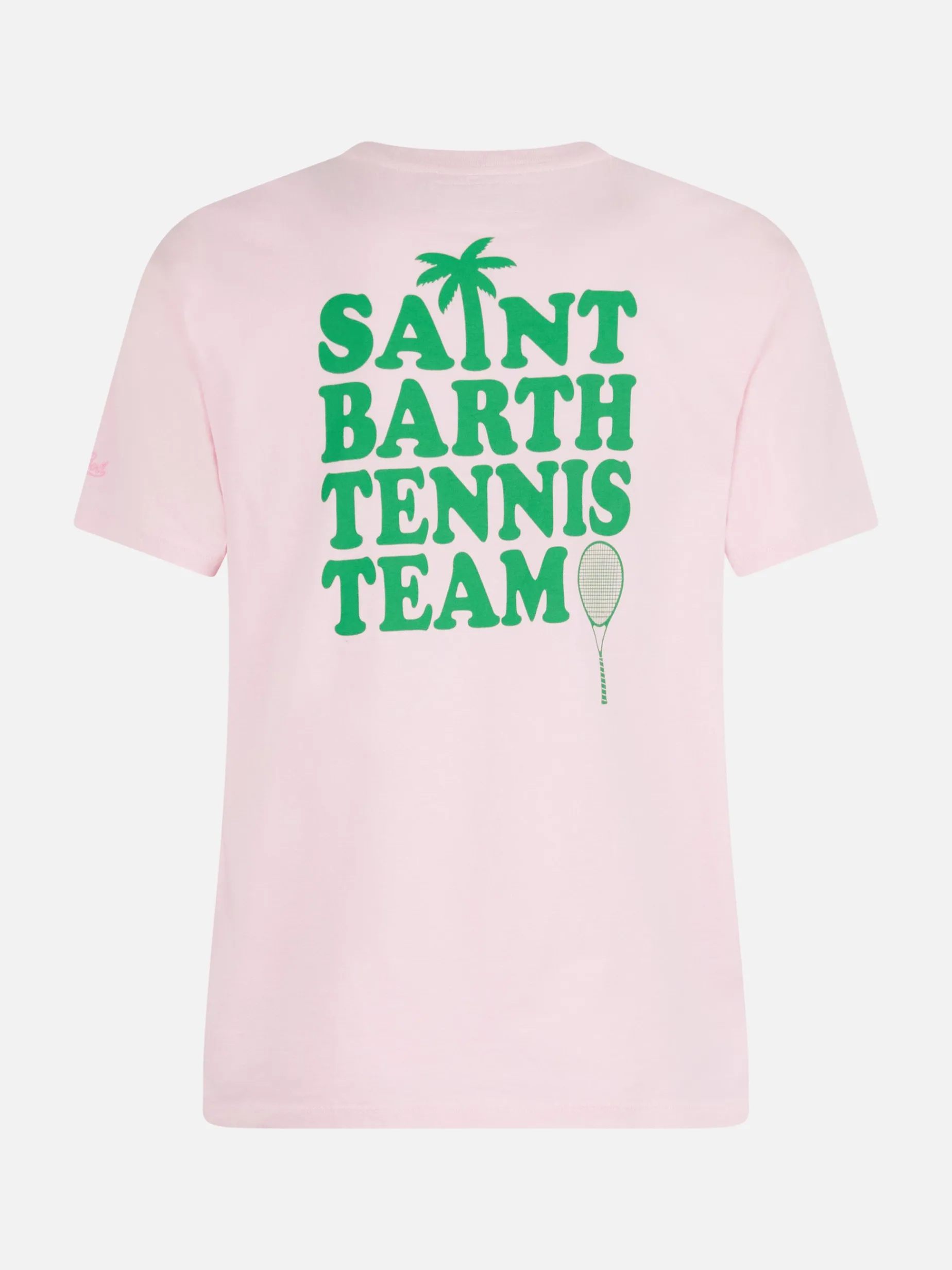 T-shirt rosa in cotone con stampa “St Barth tennis team”