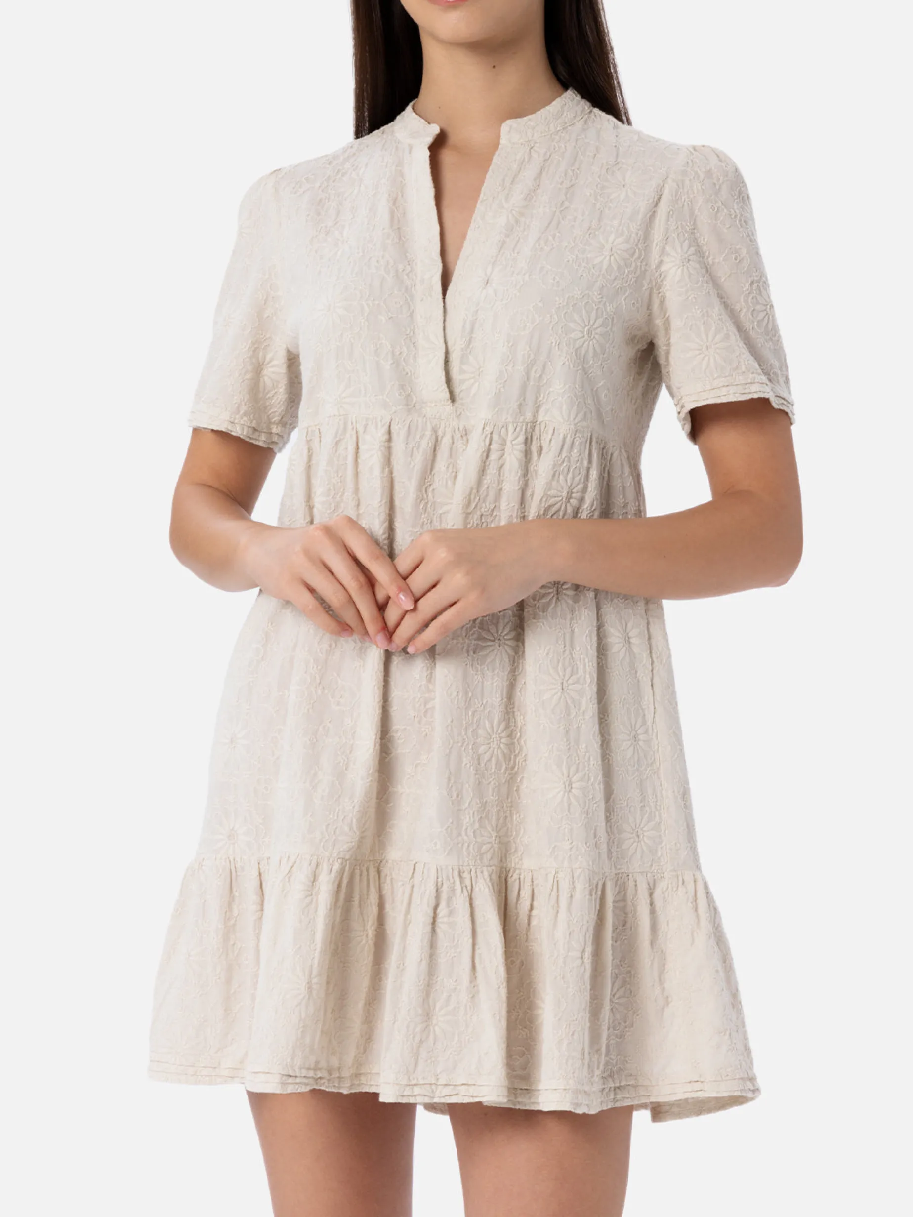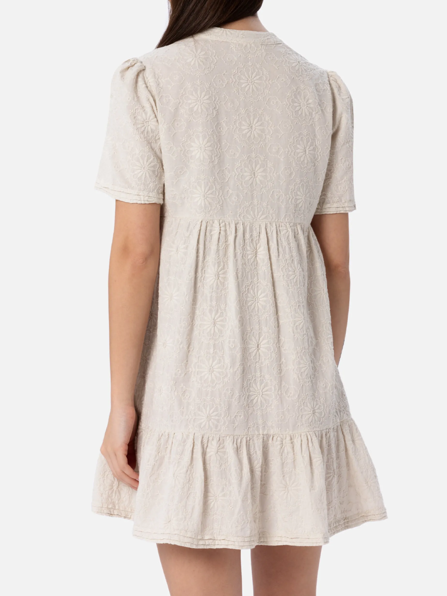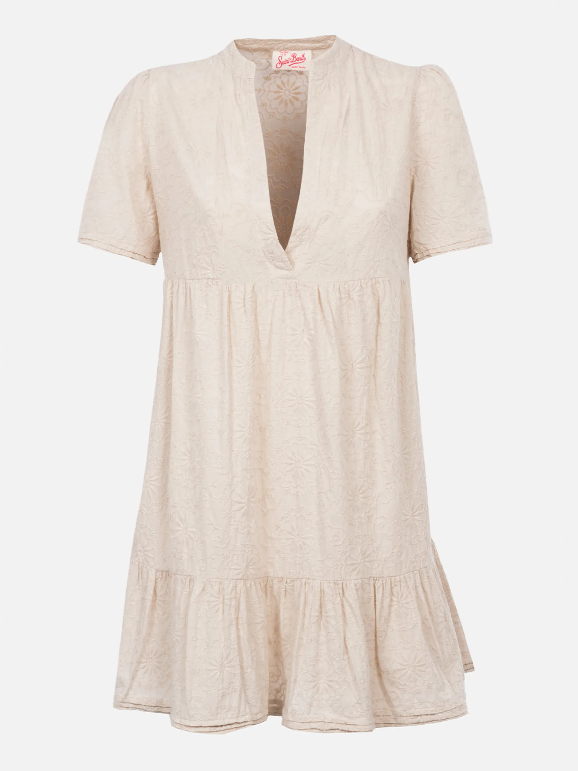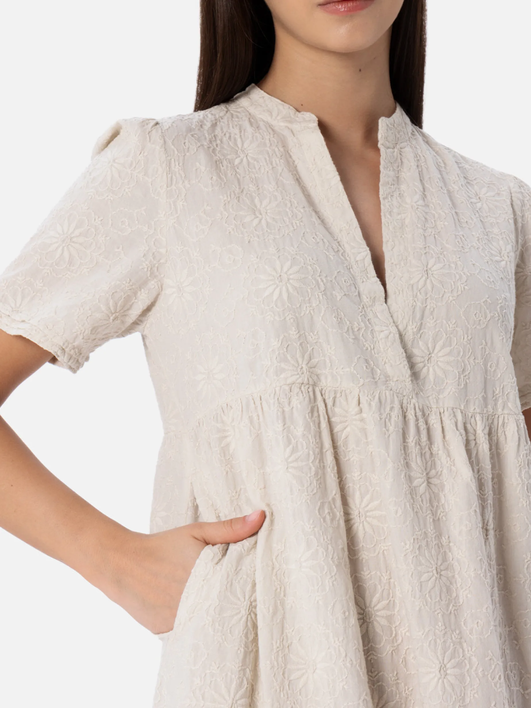 Tessuto di cotone pizzo Sangallo bianco sporco