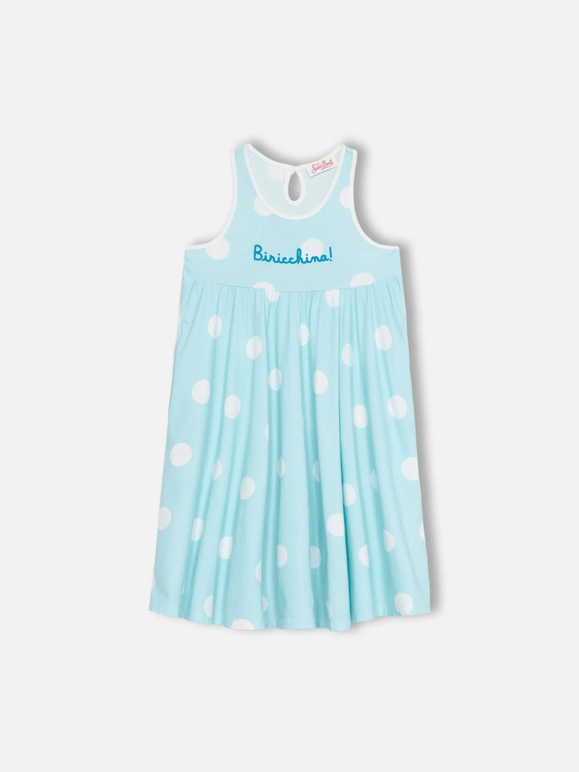 Abito da bambina in cotone Masha con stampa e ricamo “Biricchina”