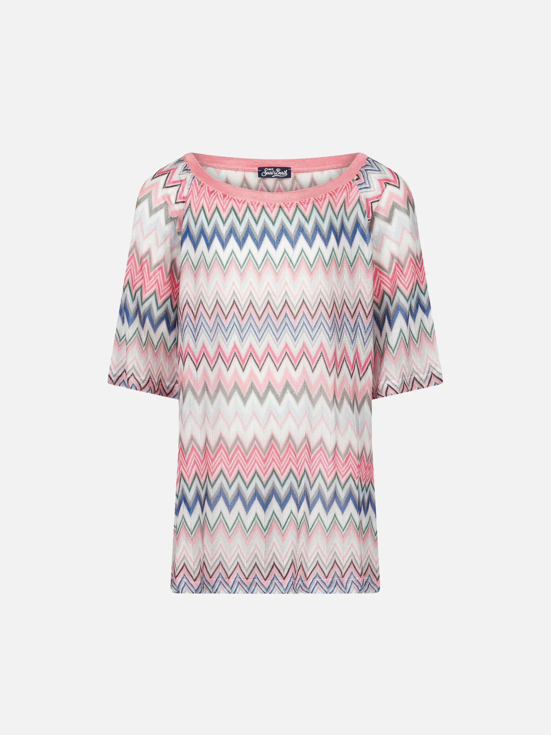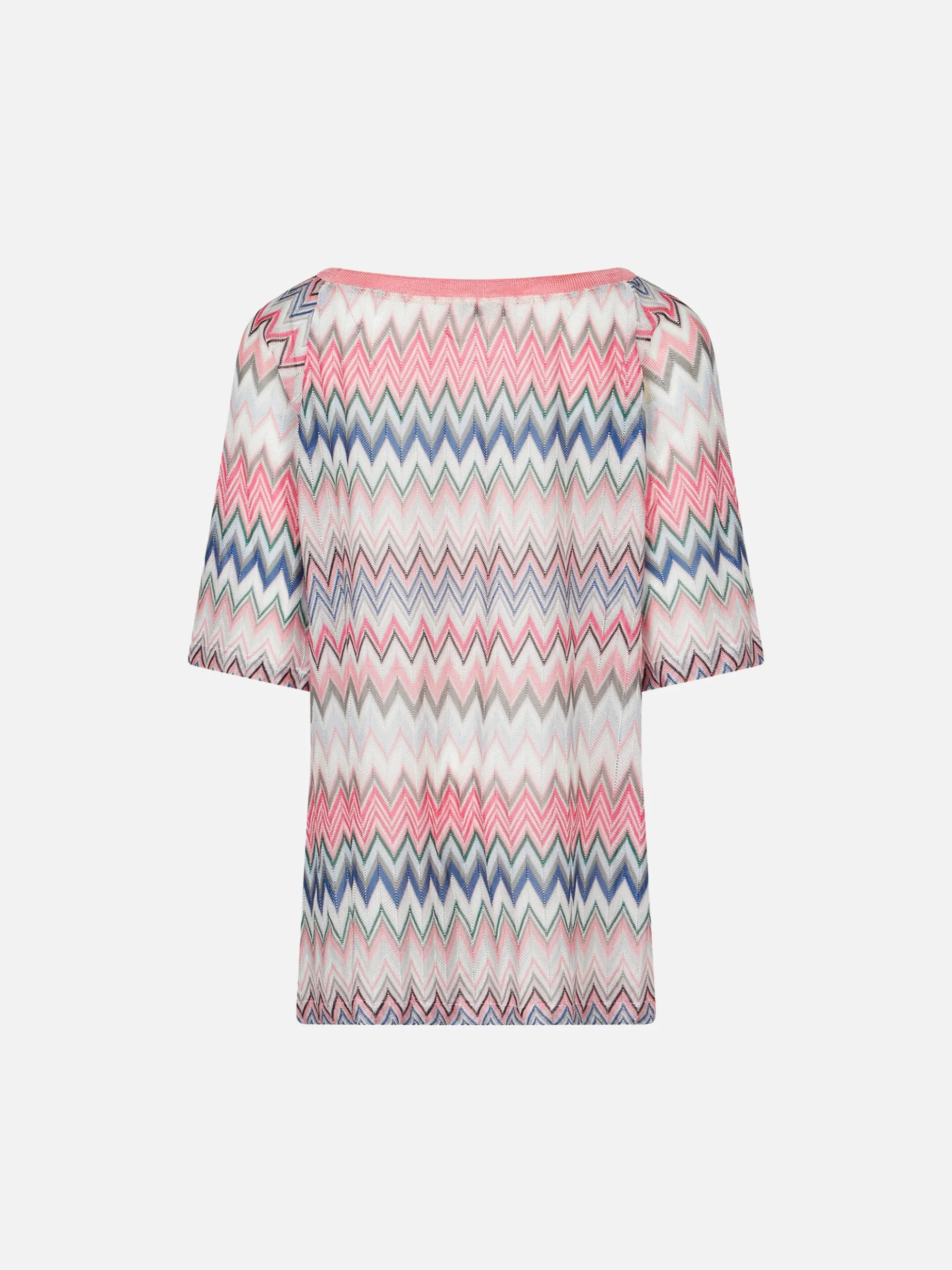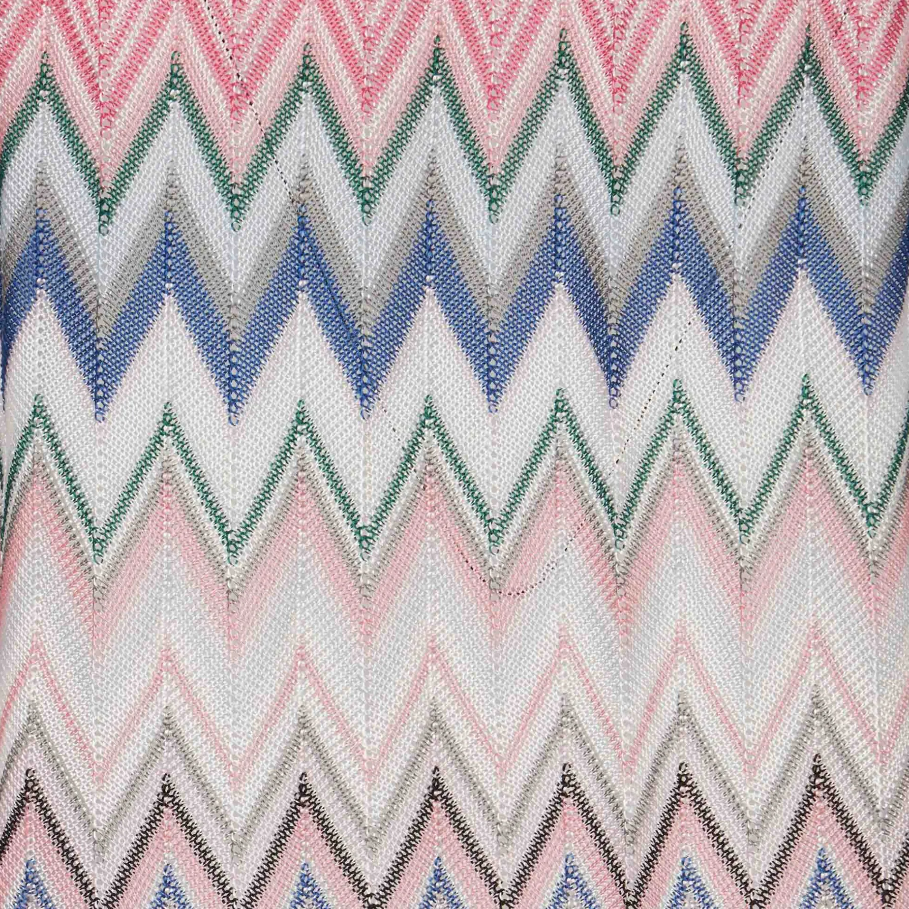 Abito estivo in maglia per Bambina , fantasia chevron rosa, abito girocollo, manica media.