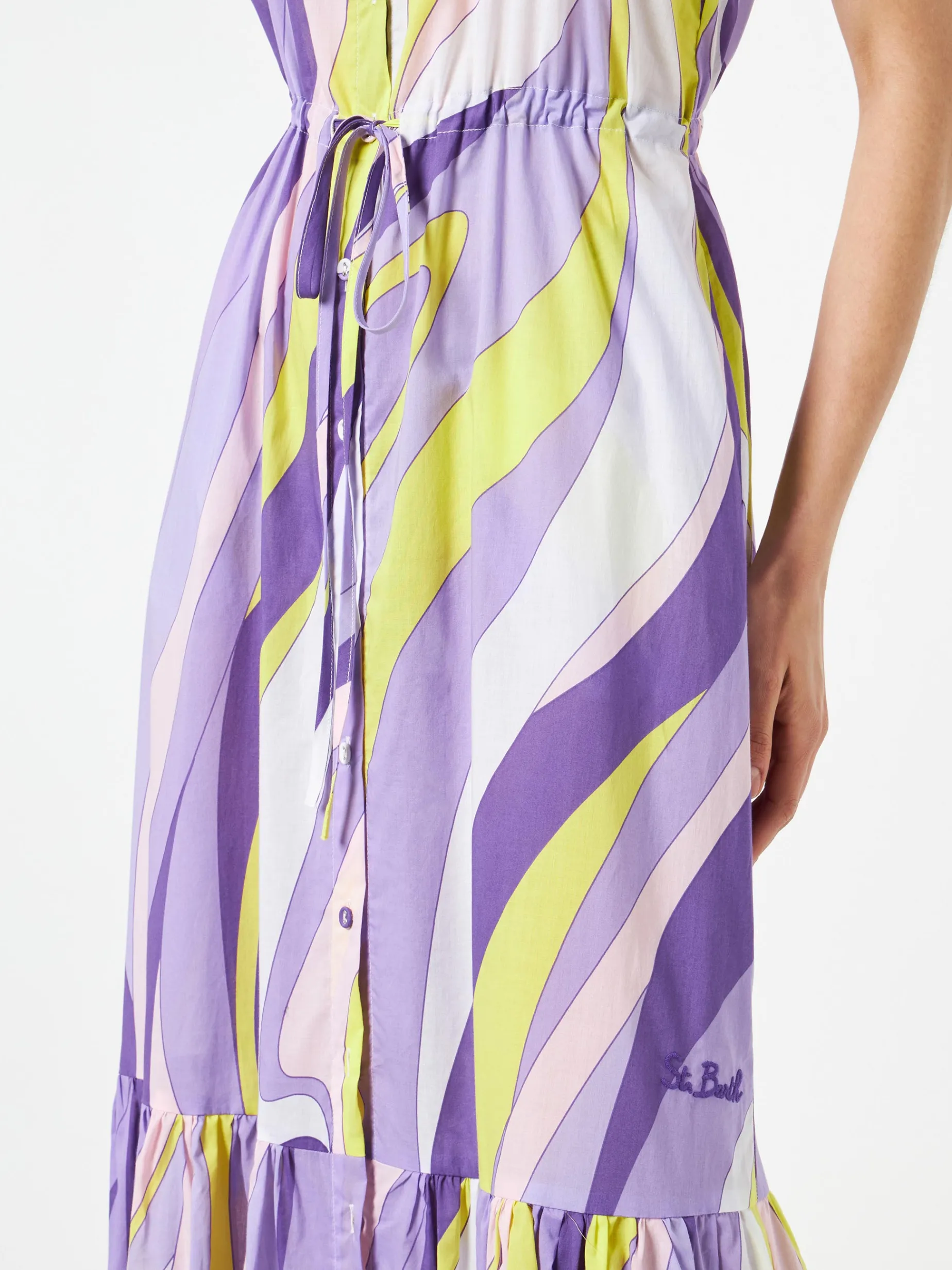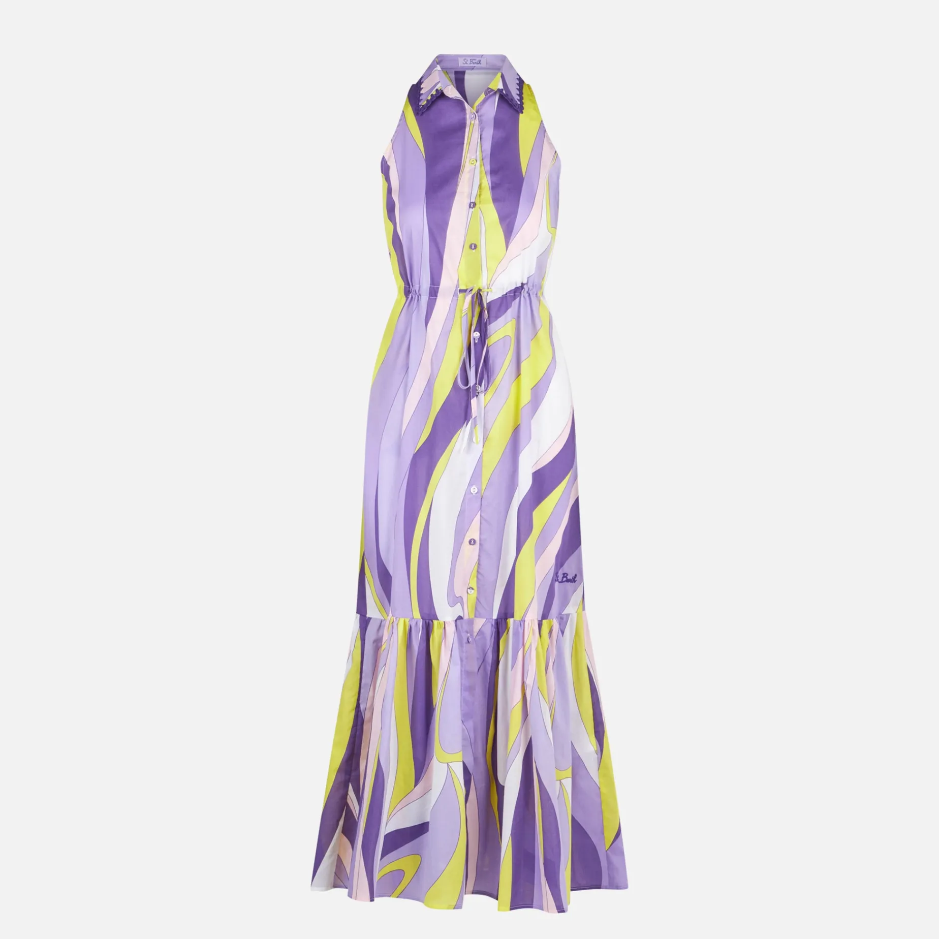 Abito da donna allacciato al collo con stampa onde