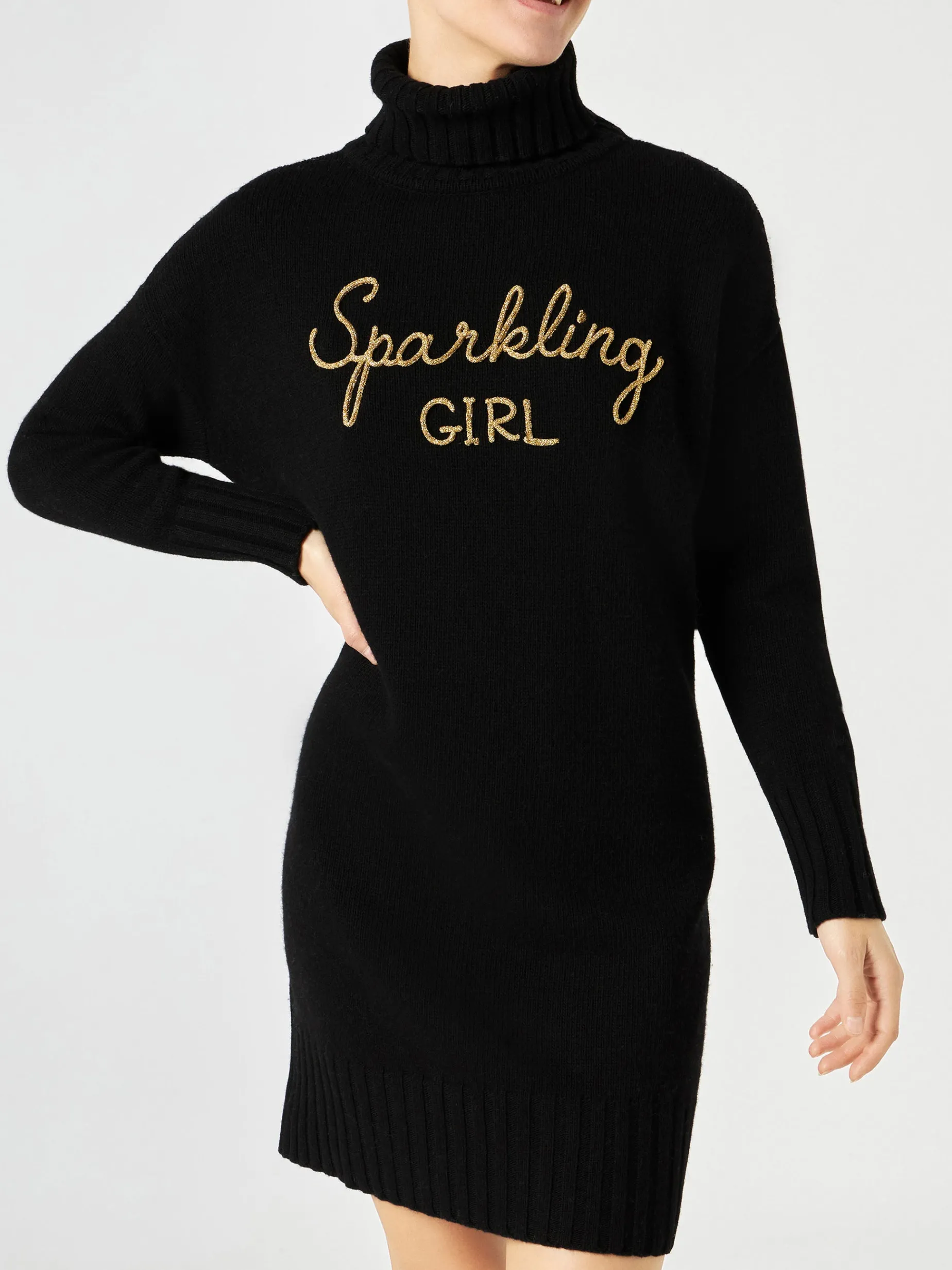 Abito nero in maglia a collo alto