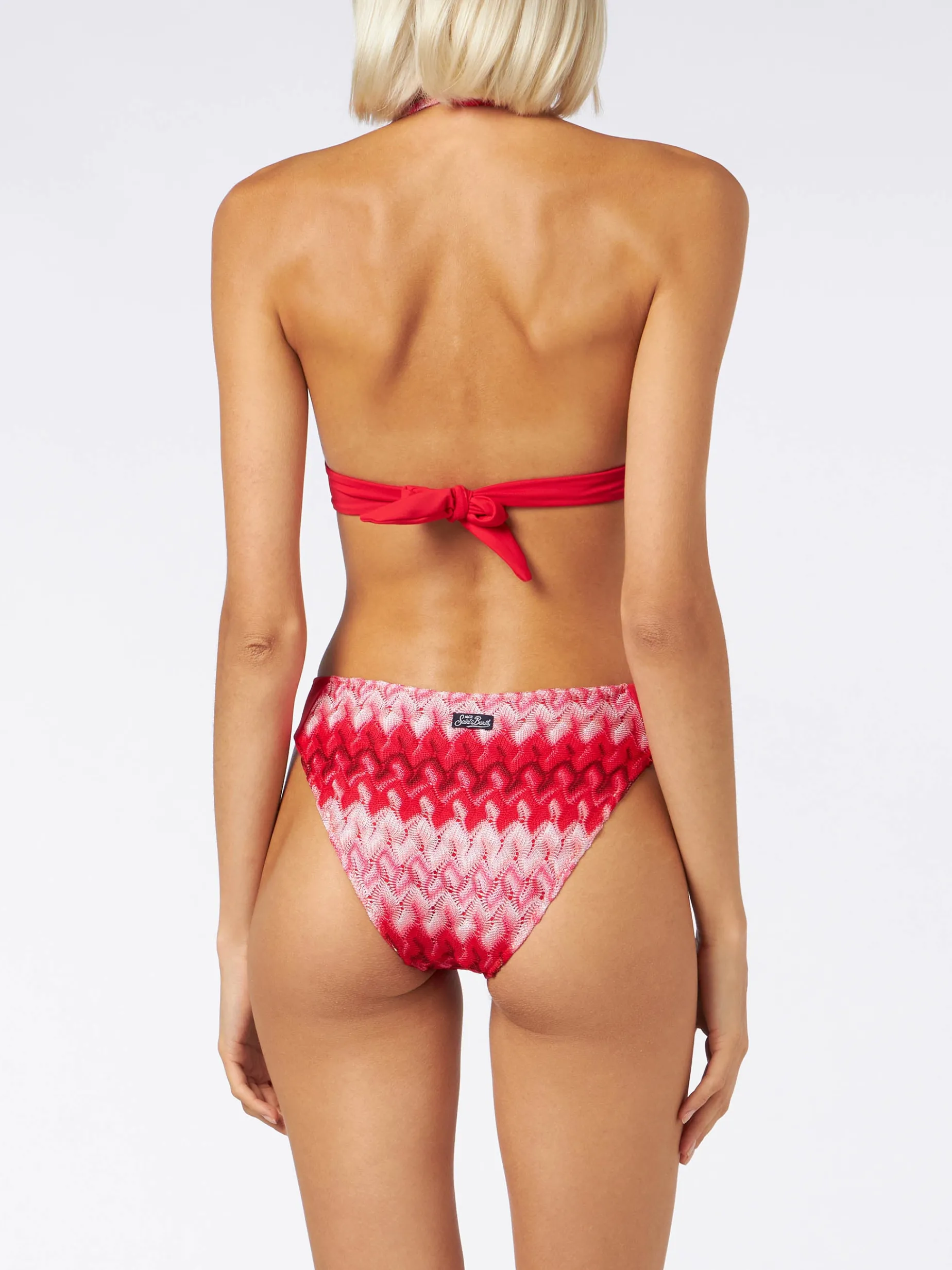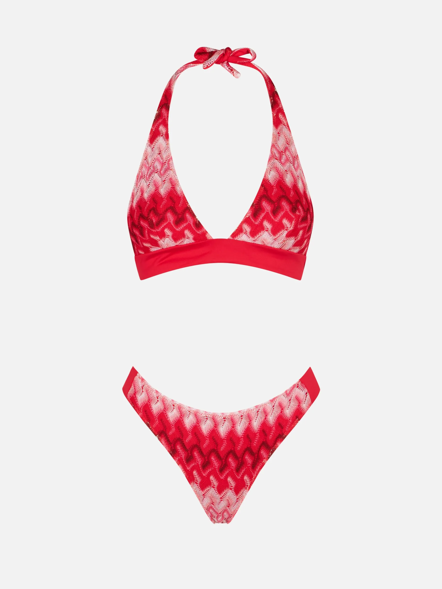 Bikini a triangolo rosso in tessuto a maglia chevron