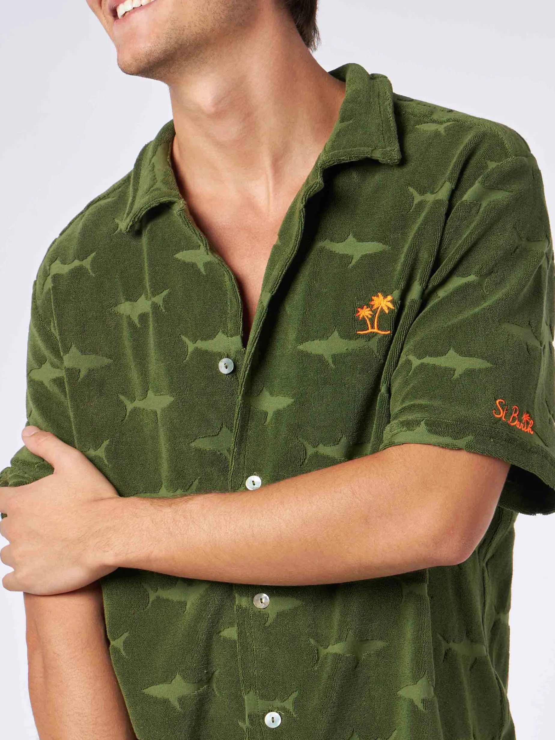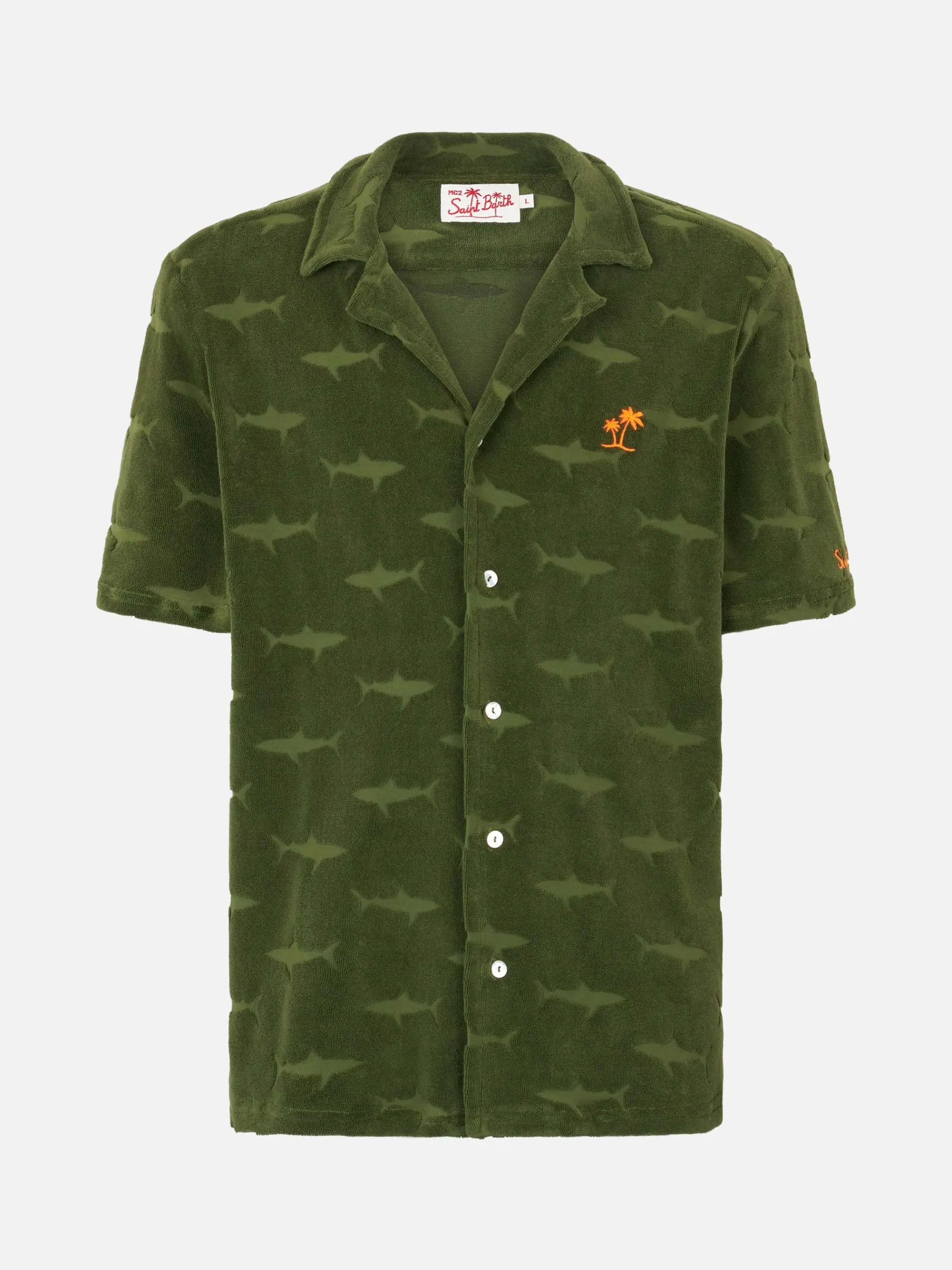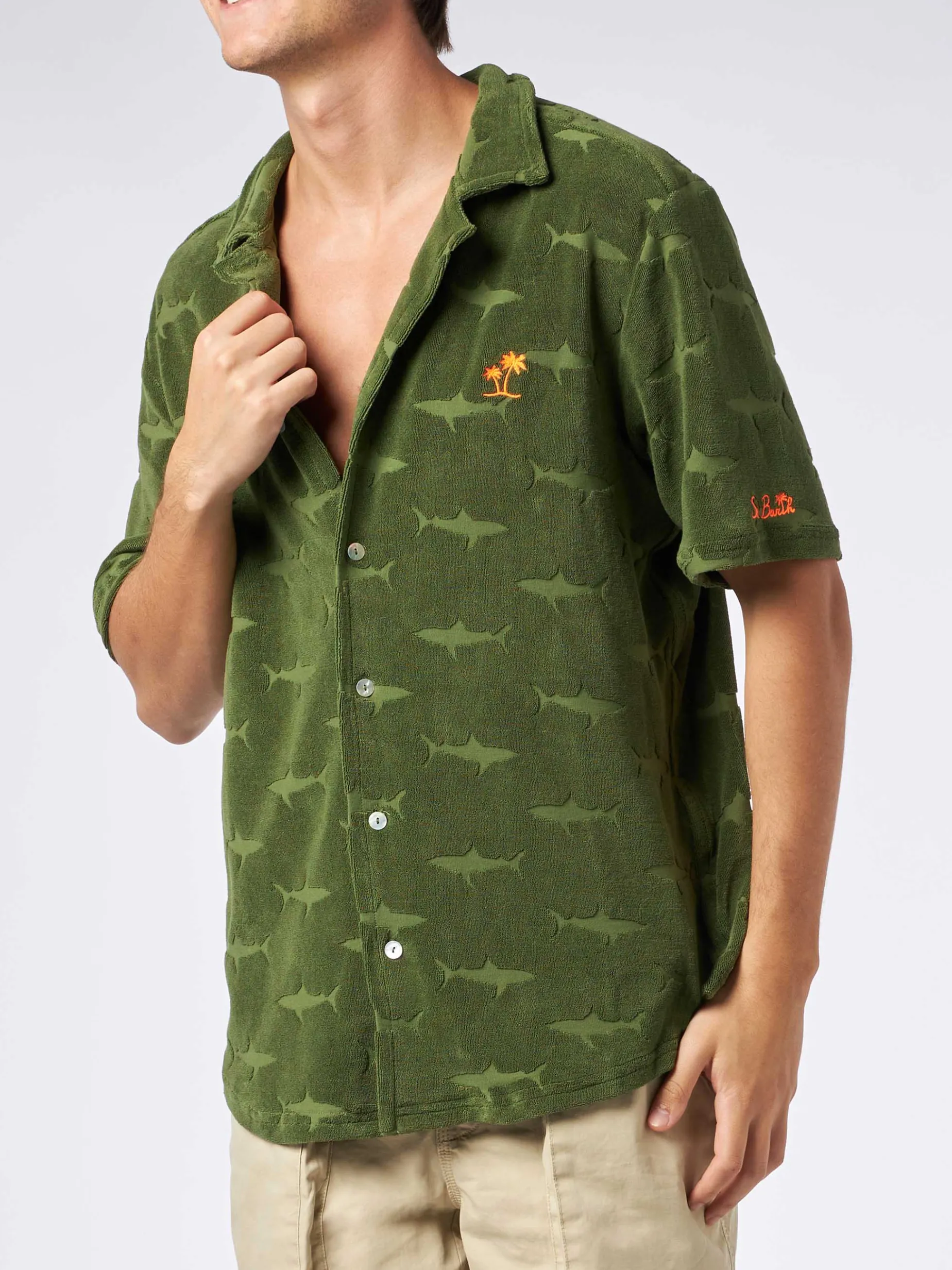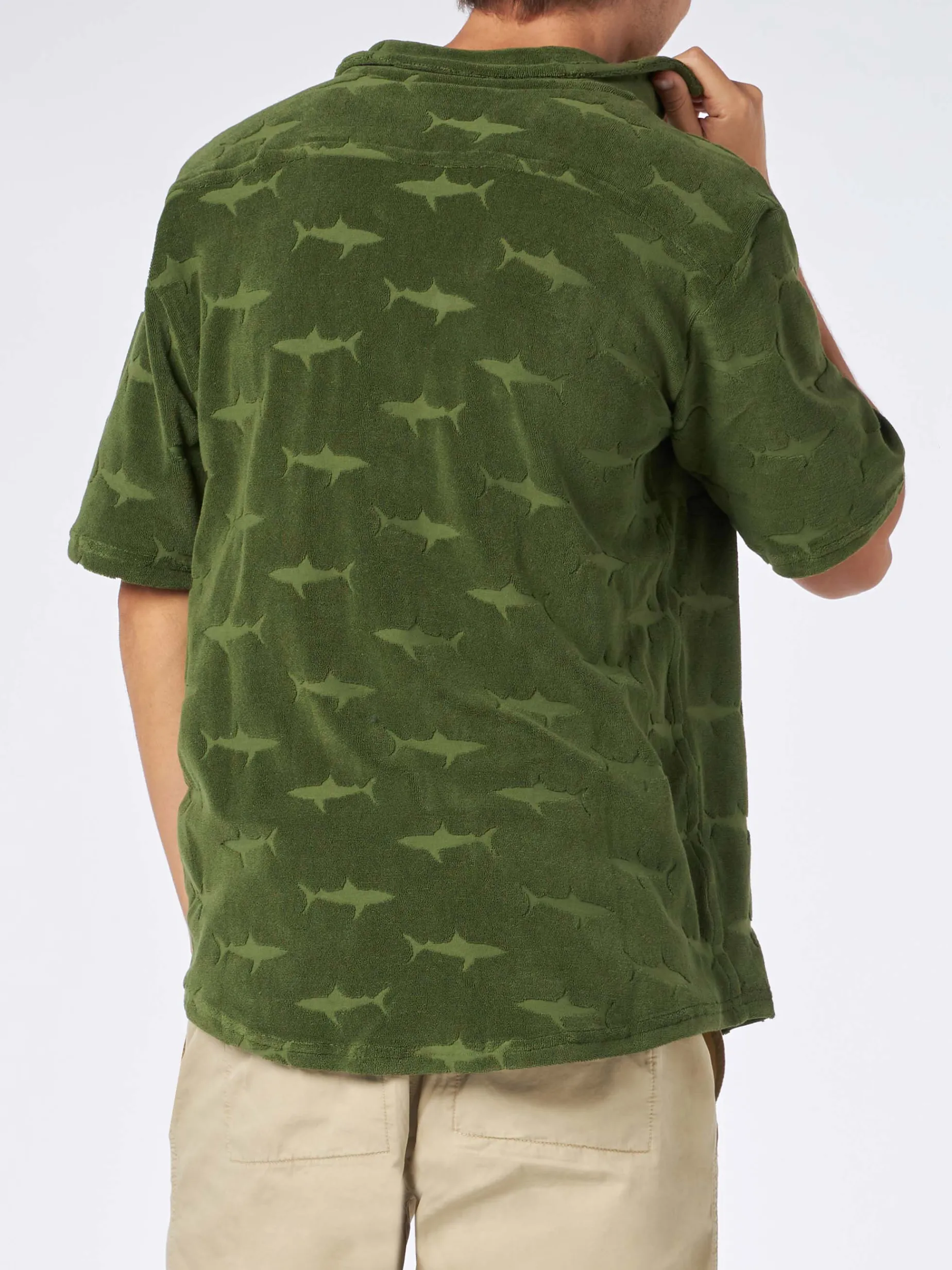 Colore verde militare con squali in spugna in rilievo