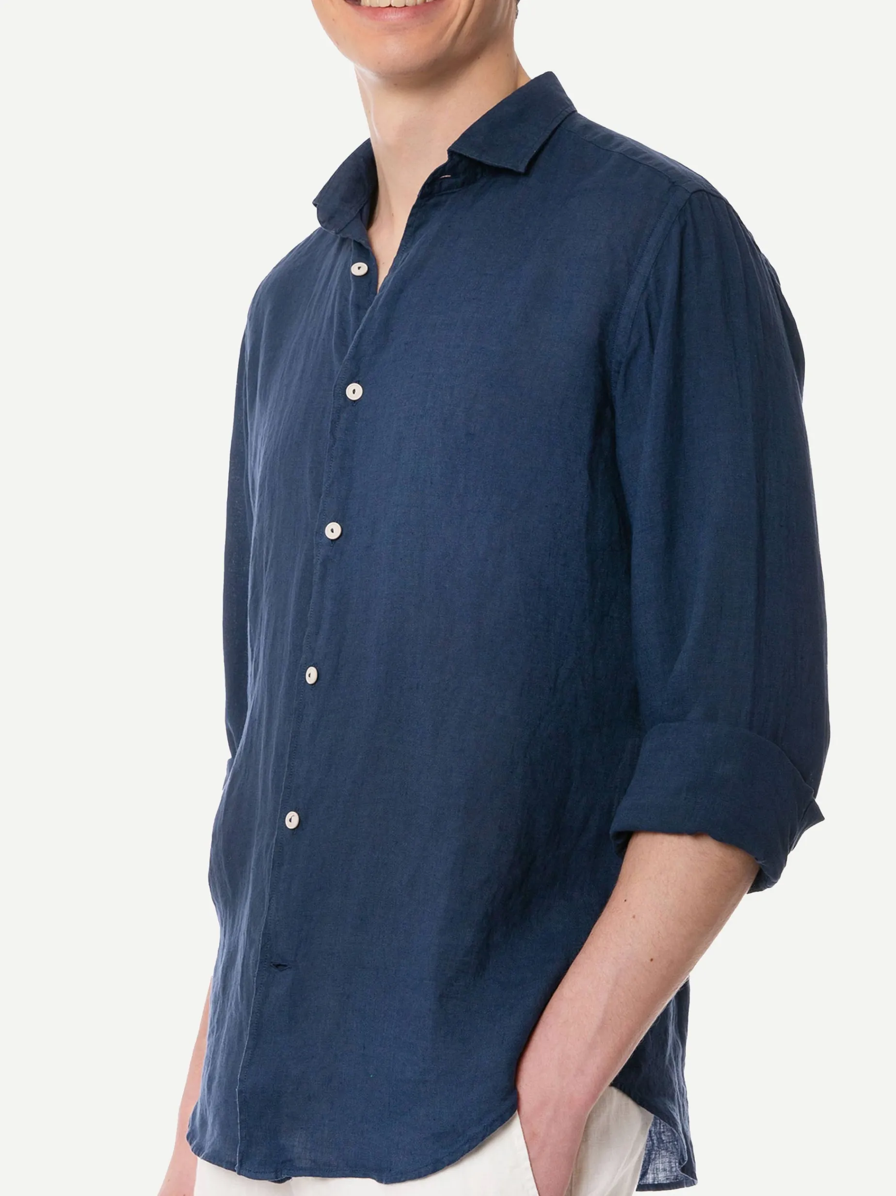 Camicia da uomo Pamplona in lino blu navy