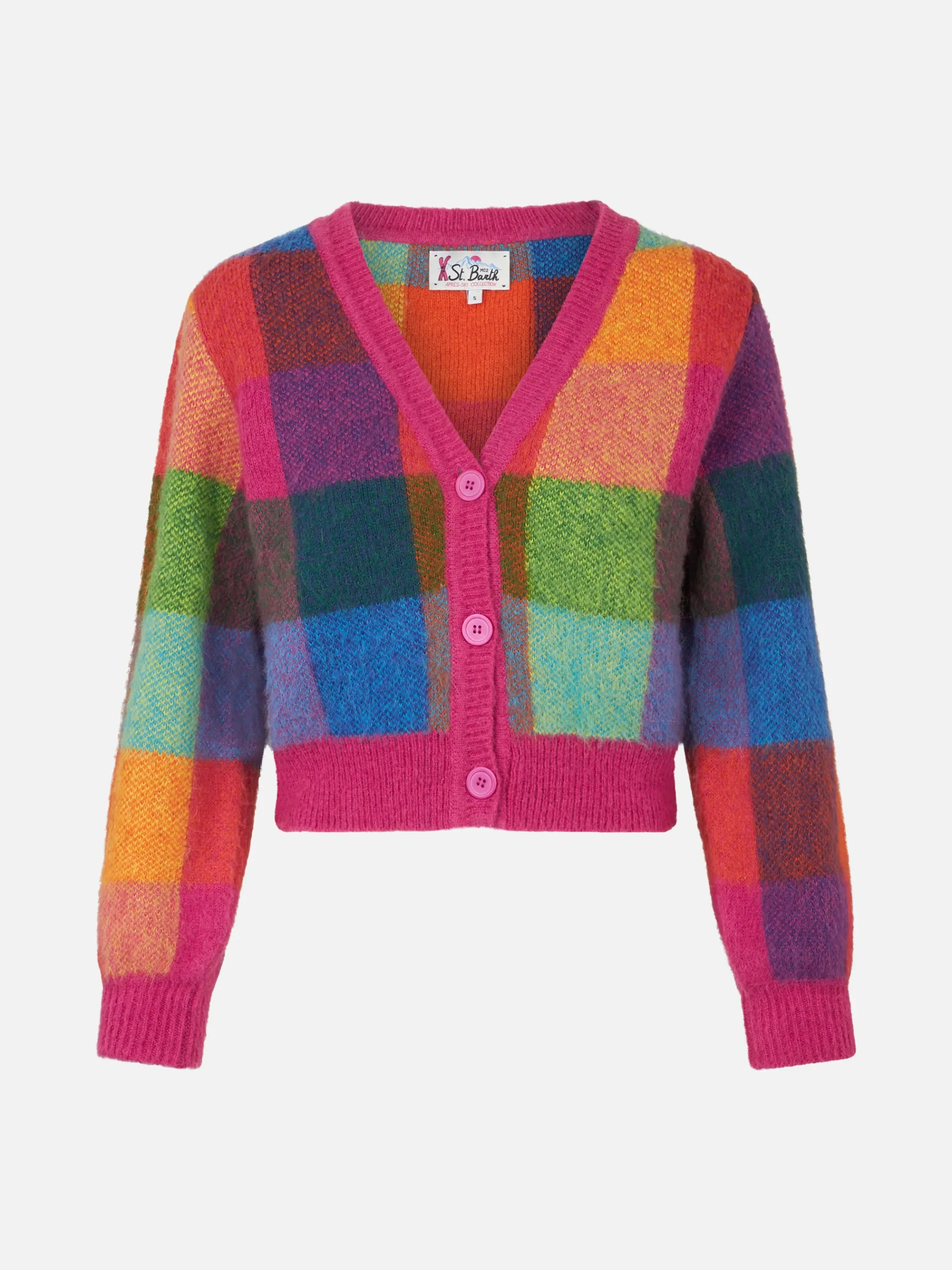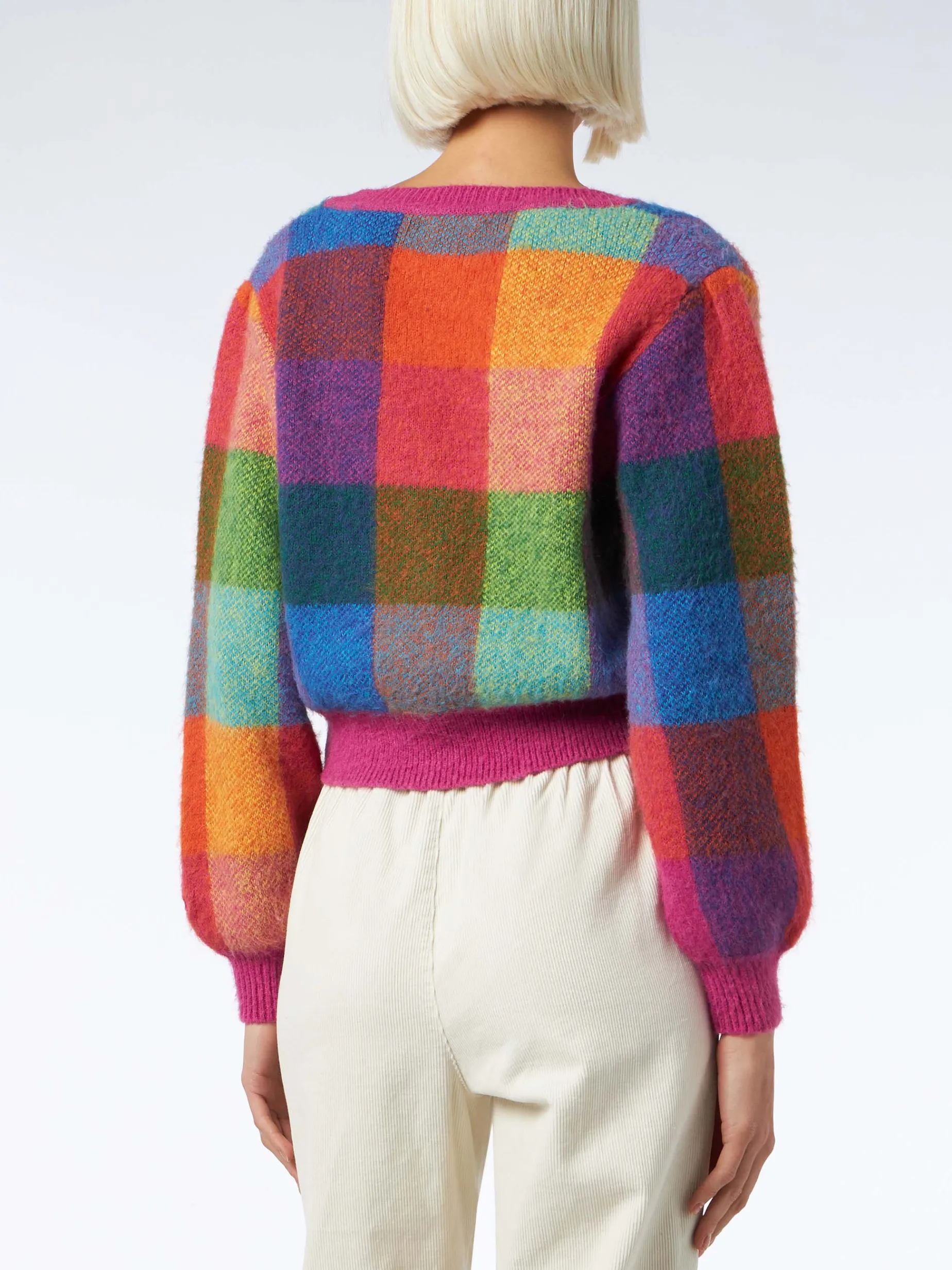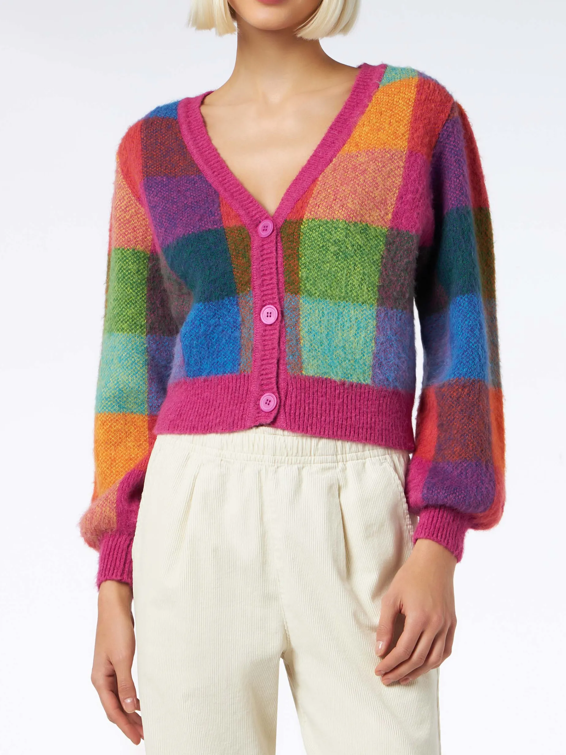 Cardigan cropped garzato da donna con maniche a sbuffo