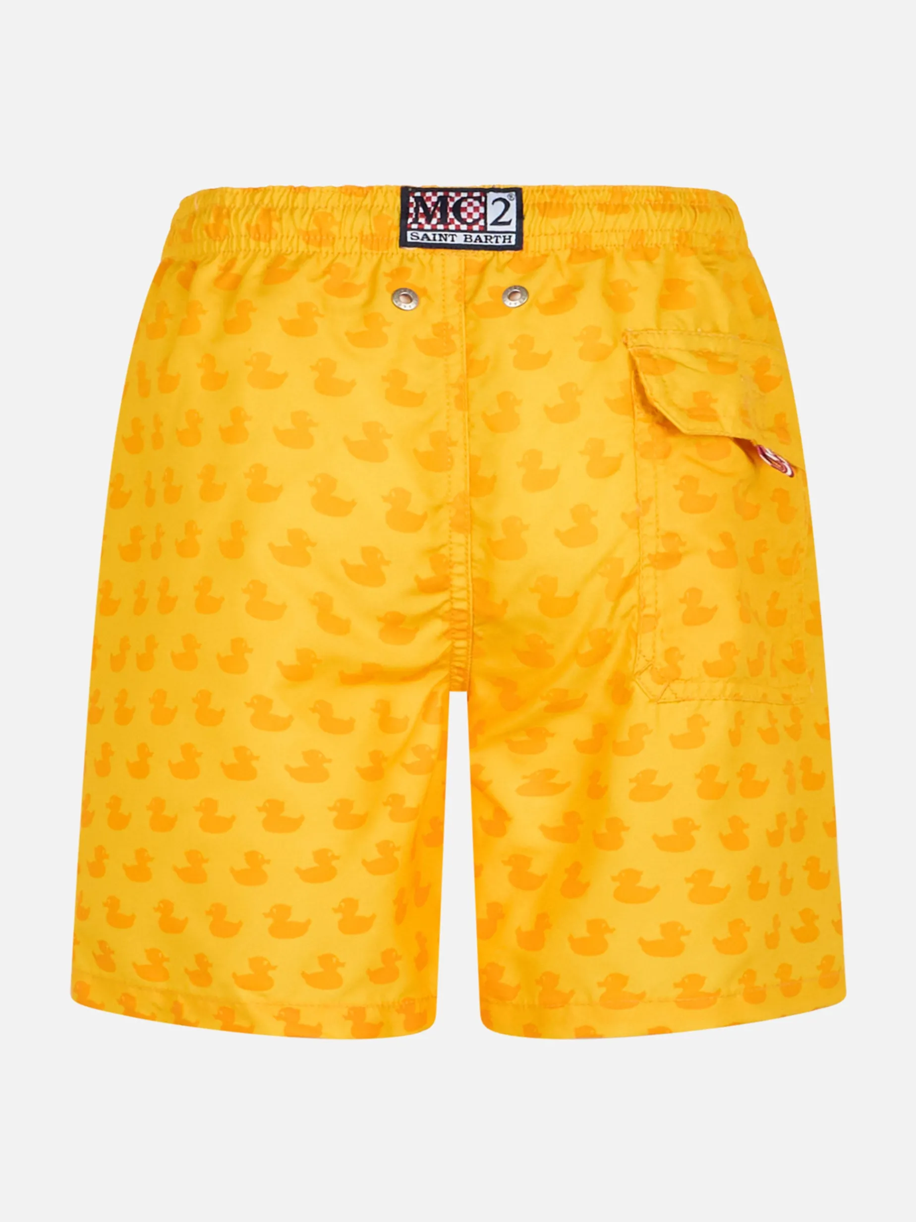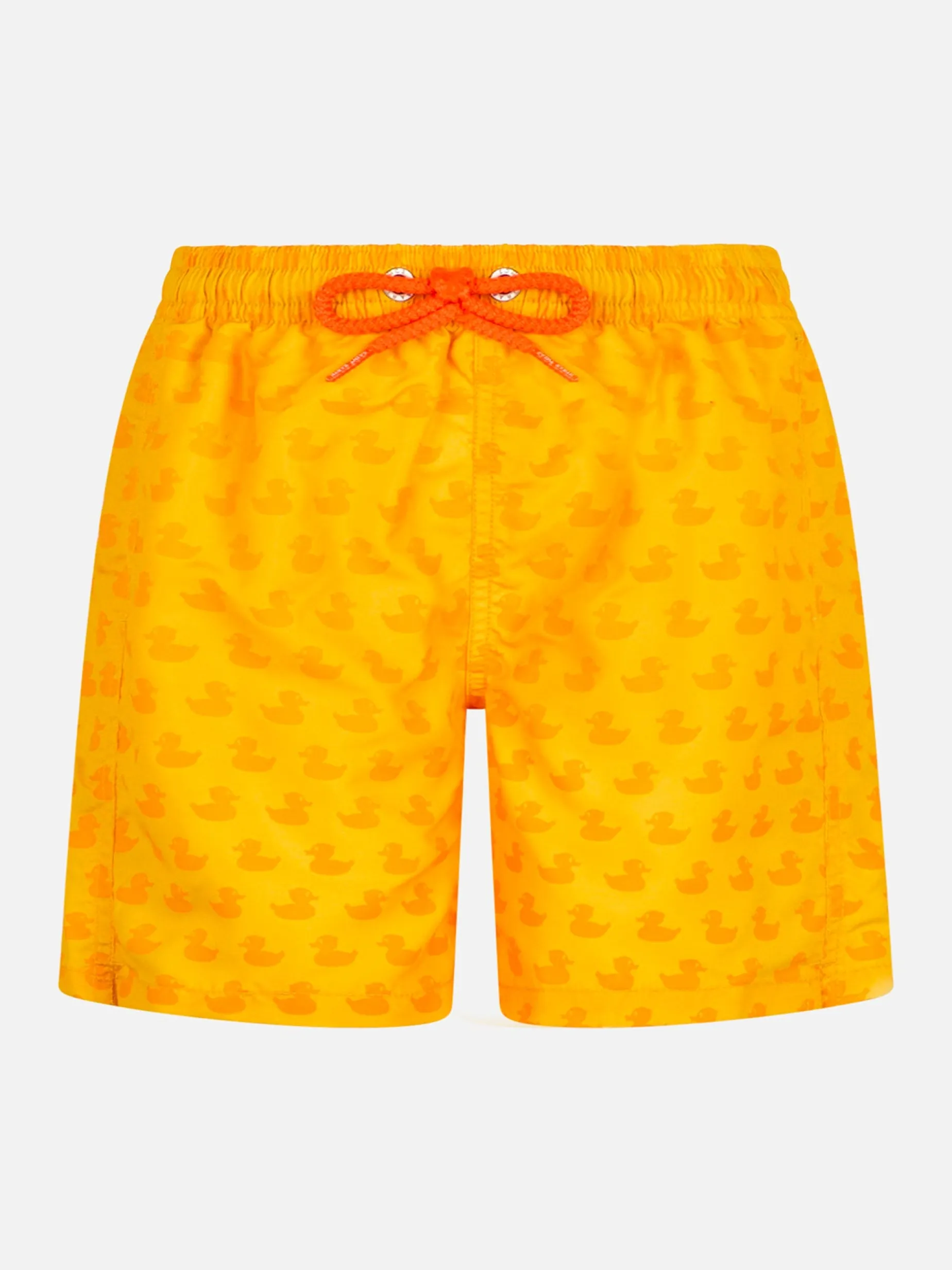 Fino a 25°/30° gradi Celsius, i pantaloncini da bagno con stampa a forma di paperella.