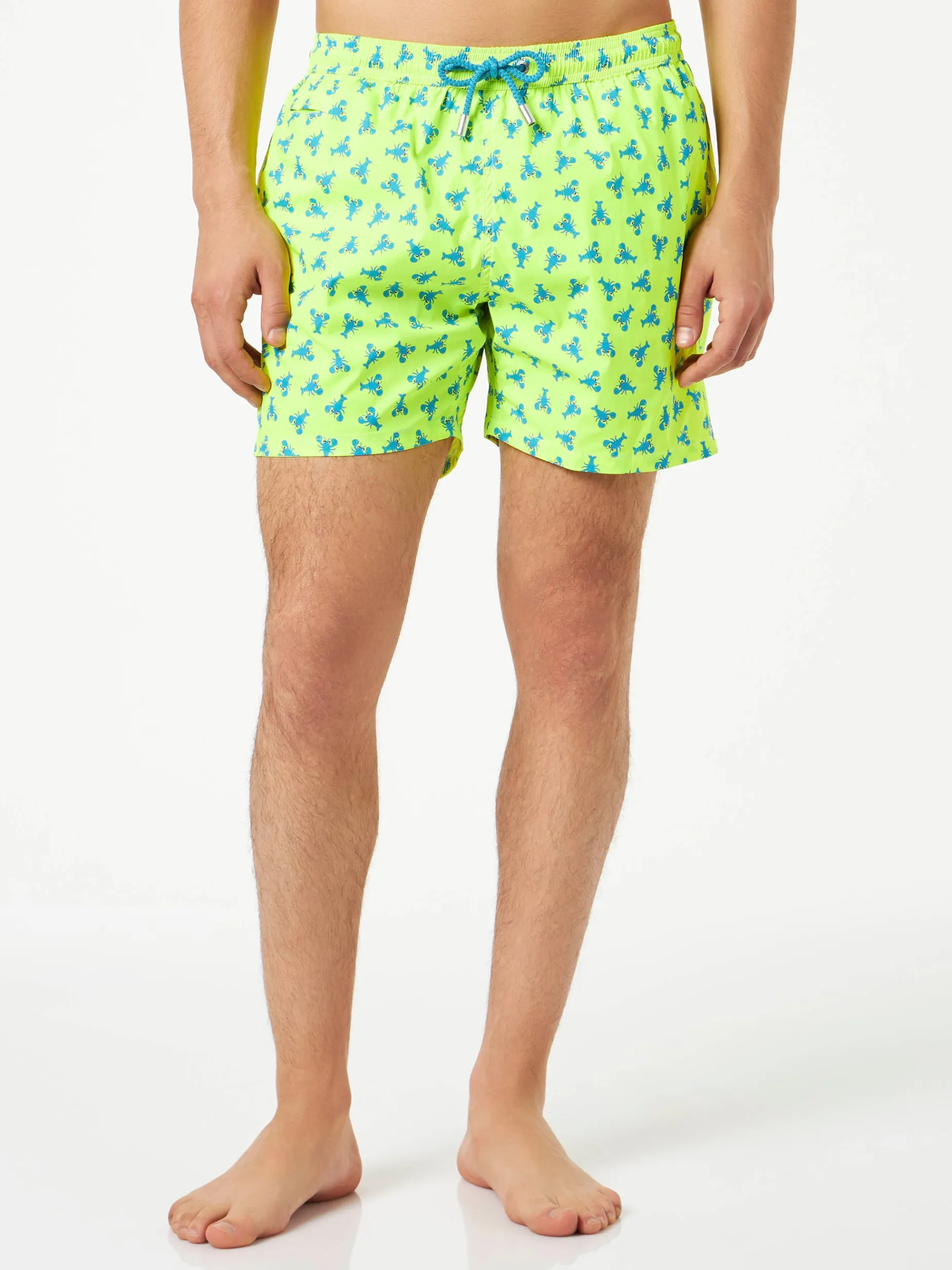 Stampa aragoste azzurre su sfondo giallo