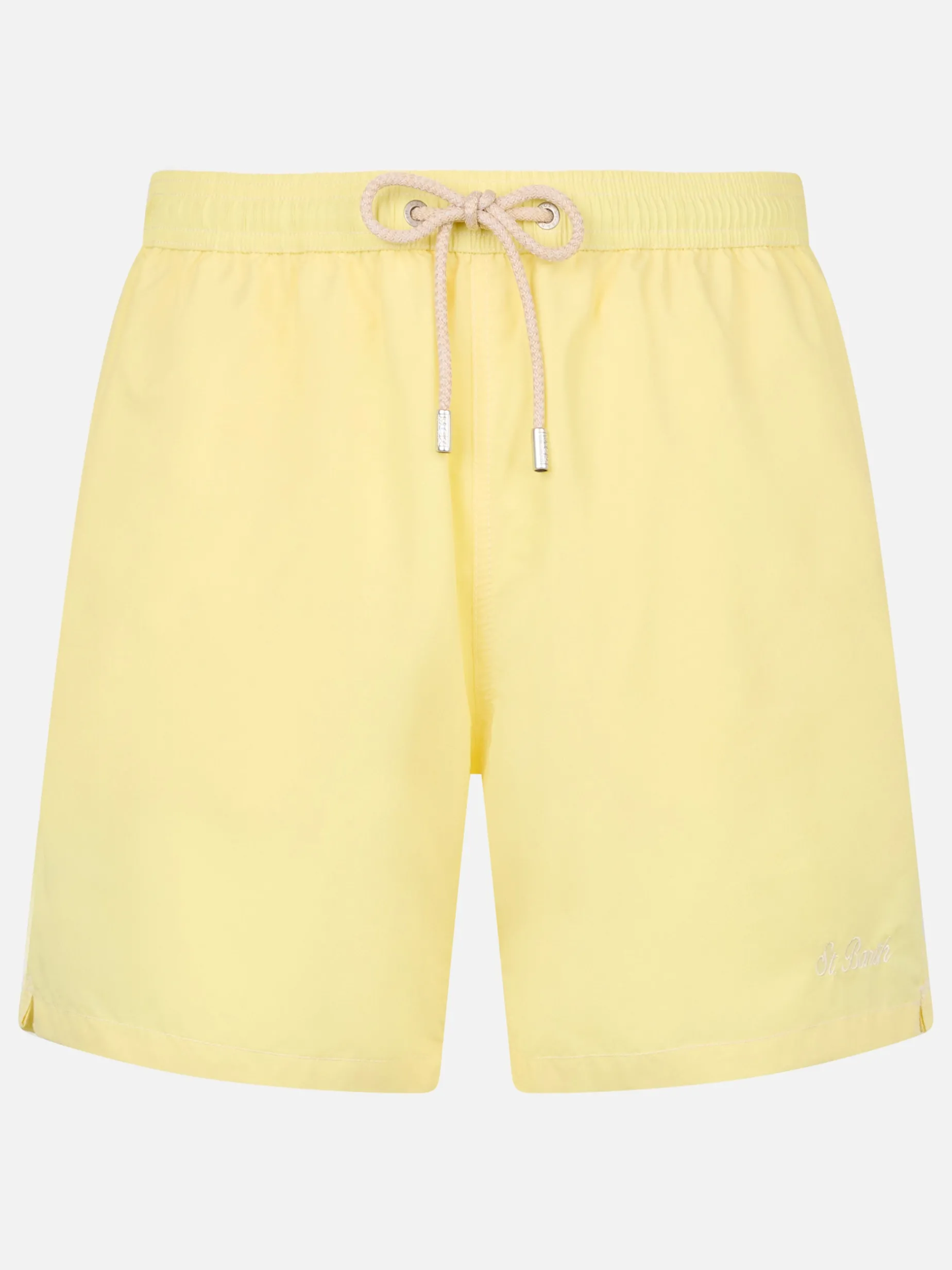 Esclusivo dettaglio logo Saint Barth sul fondo gamba