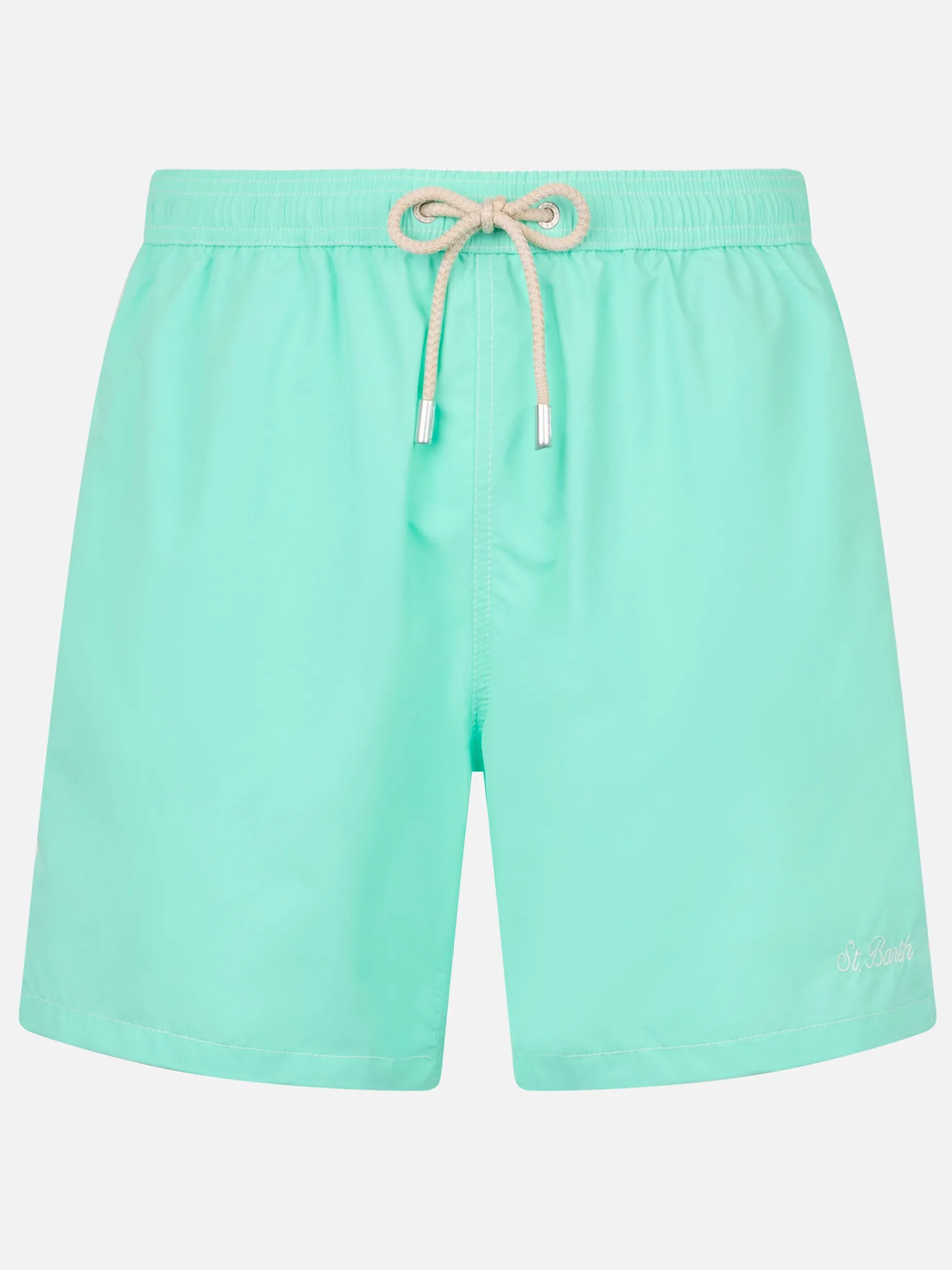Esclusivo dettaglio logo Saint Barth sul fondo gamba