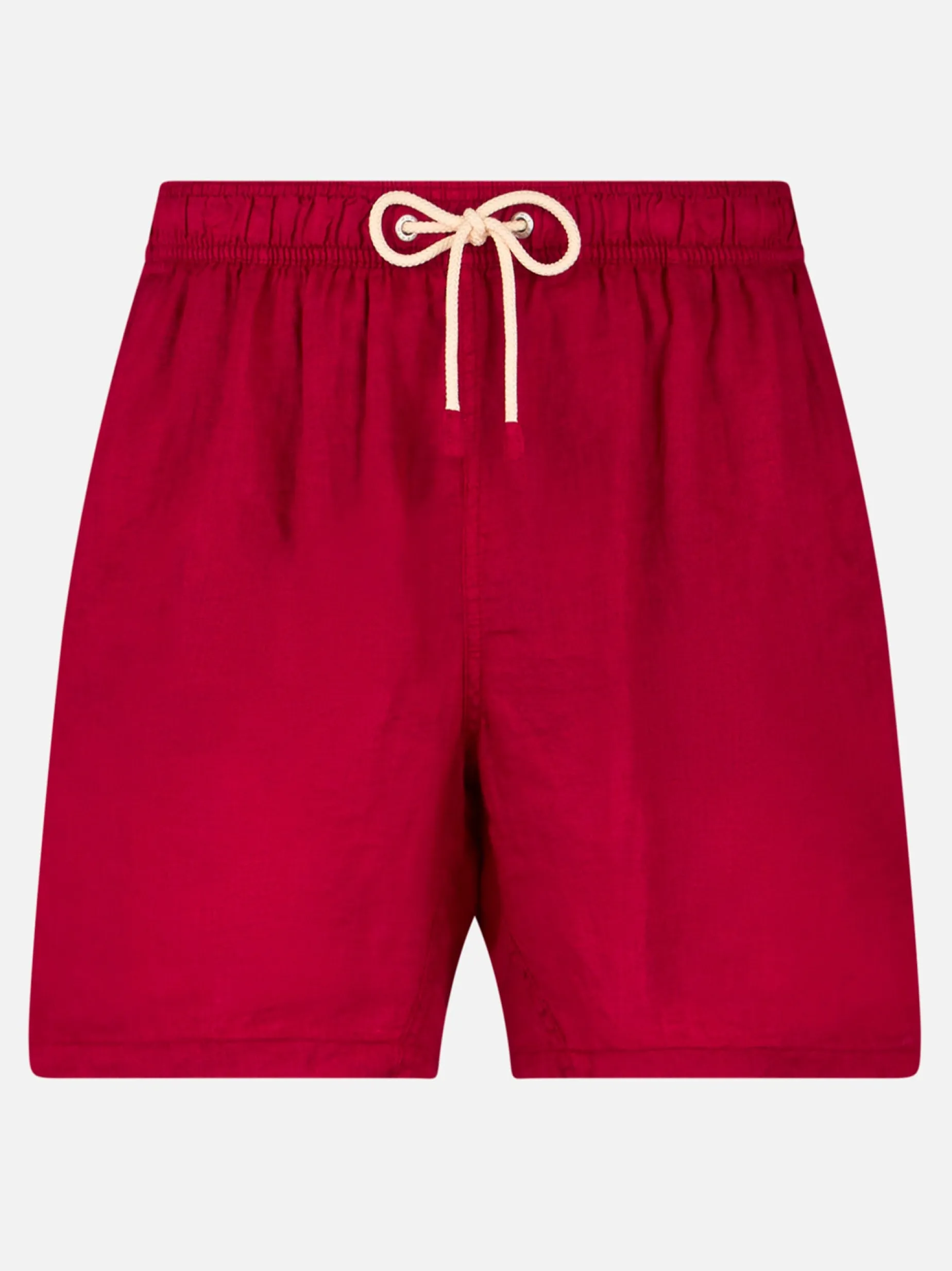 Il classico costume da bagno Gustavia viene ora declinato nella versione in lino bordeaux naturale al 100%, per uno stile shabby chic.