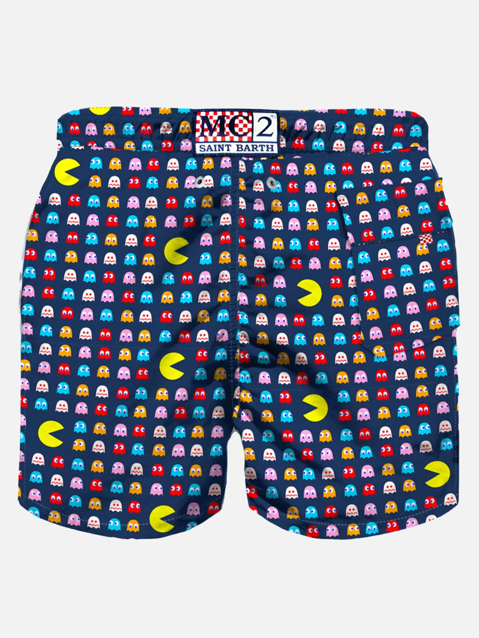 Stampa Pac-Man¶© multicolore, costume da bagno di media lunghezza, vestibilità regolare, multicolore in microfibra, comoda coulisse in vita, slip interno ergonomico, tasche su entrambi i lati, tasca classica posteriore con chiusura a velcro. Modello Jean Lighting Hungry Pacman61.