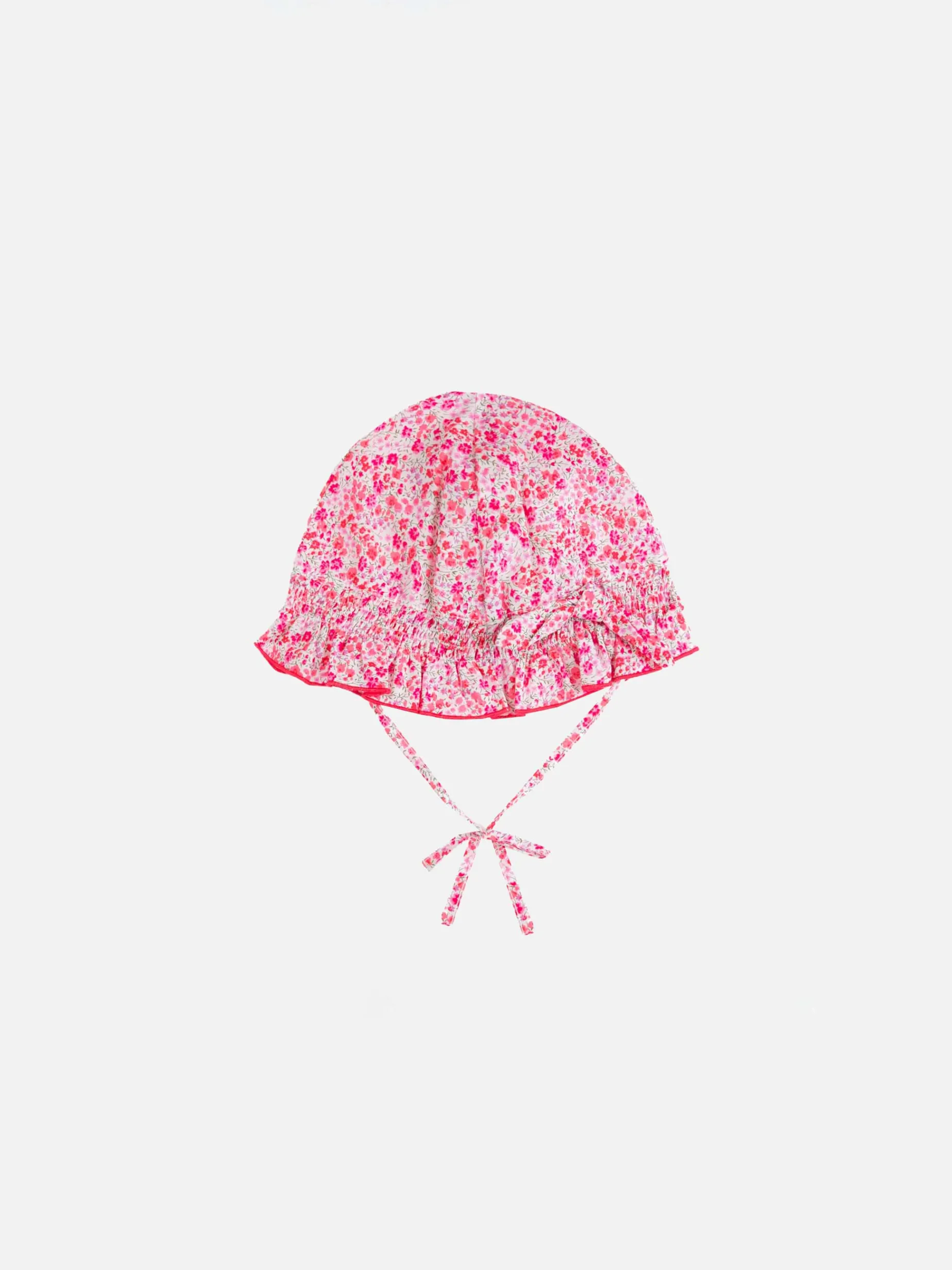 Cuffia per neonata. Lacci con fiocco, stampa Fiore rosso