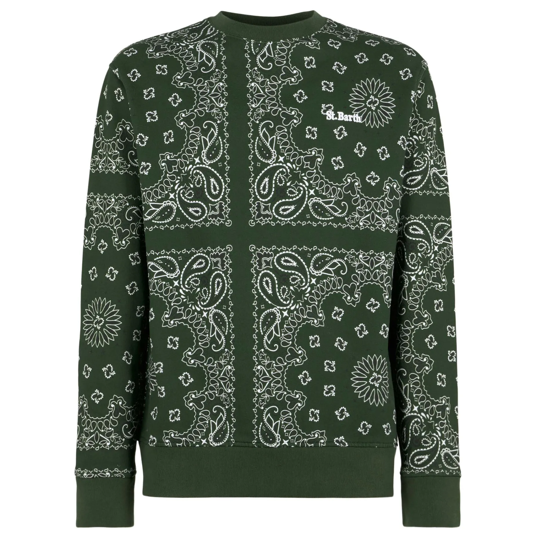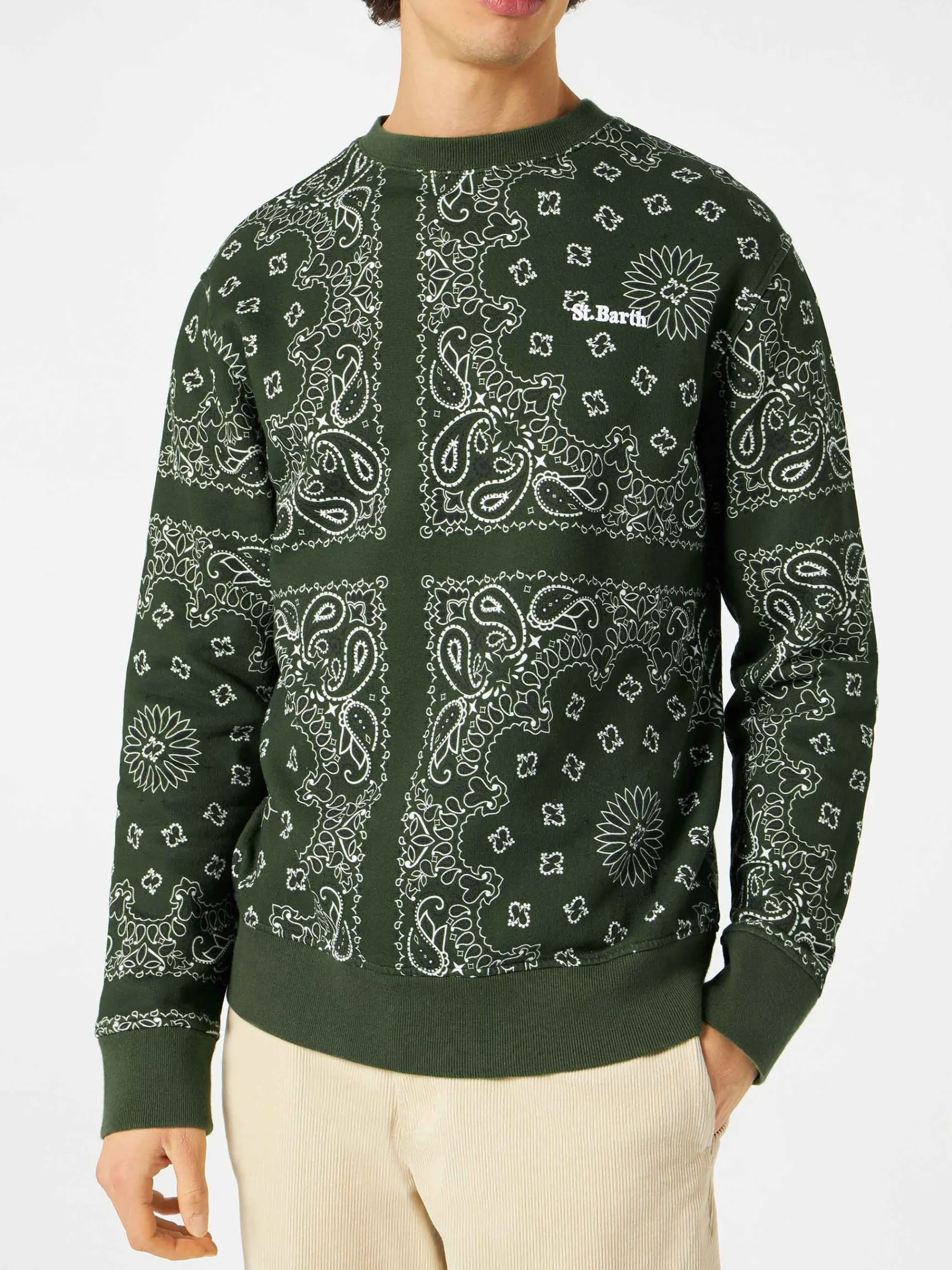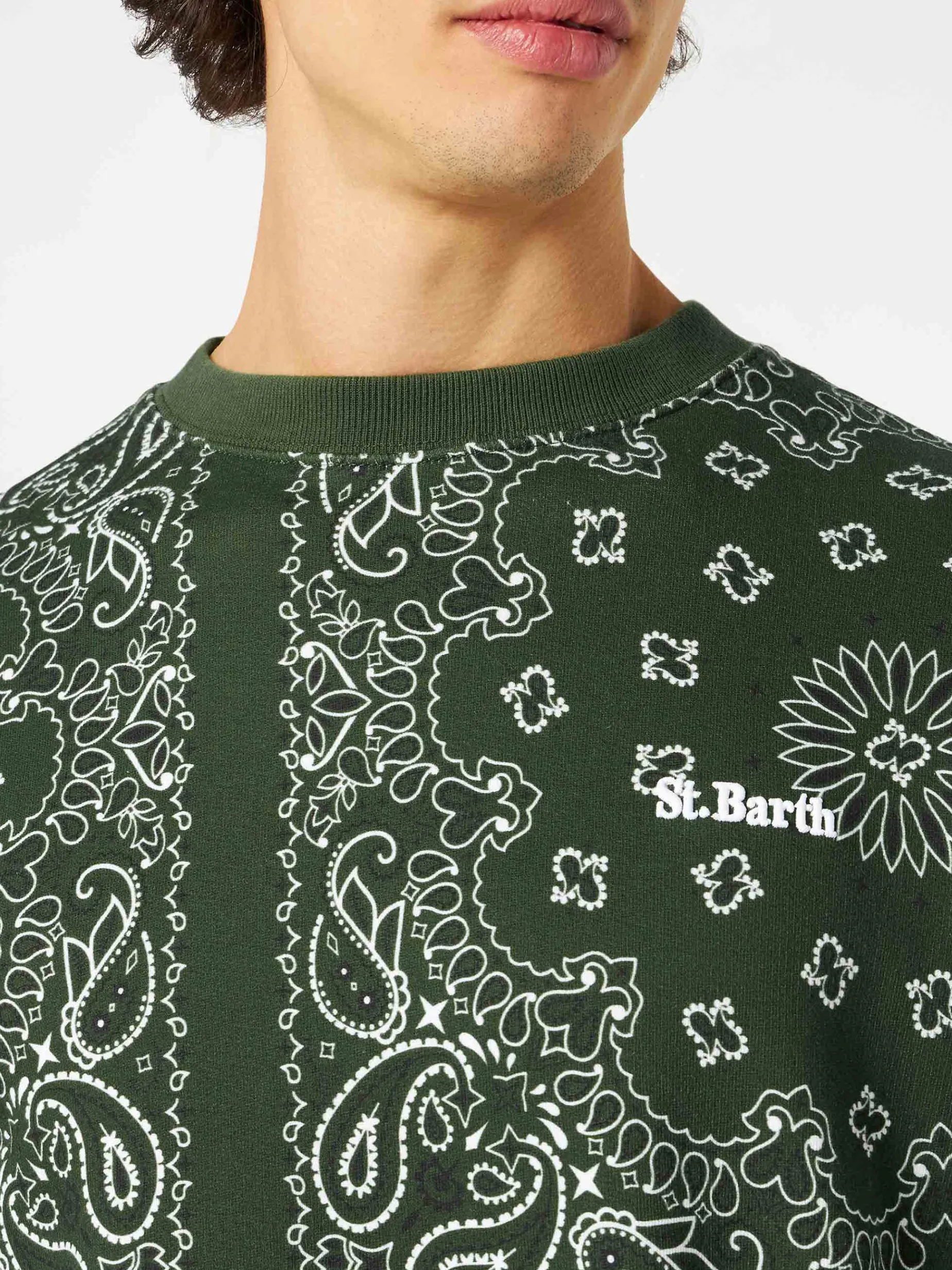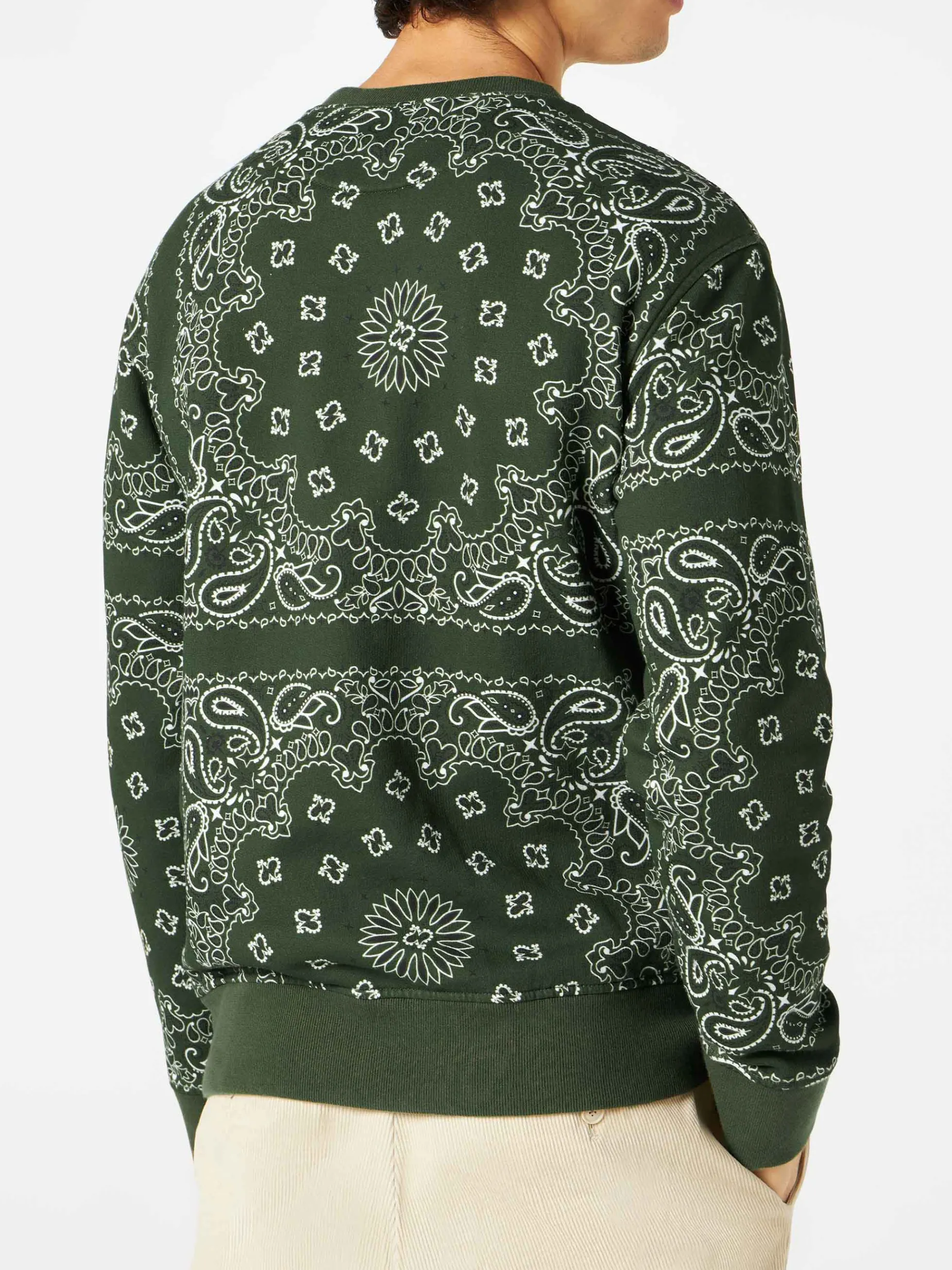Felpa da uomo girocollo con stampa bandana verde