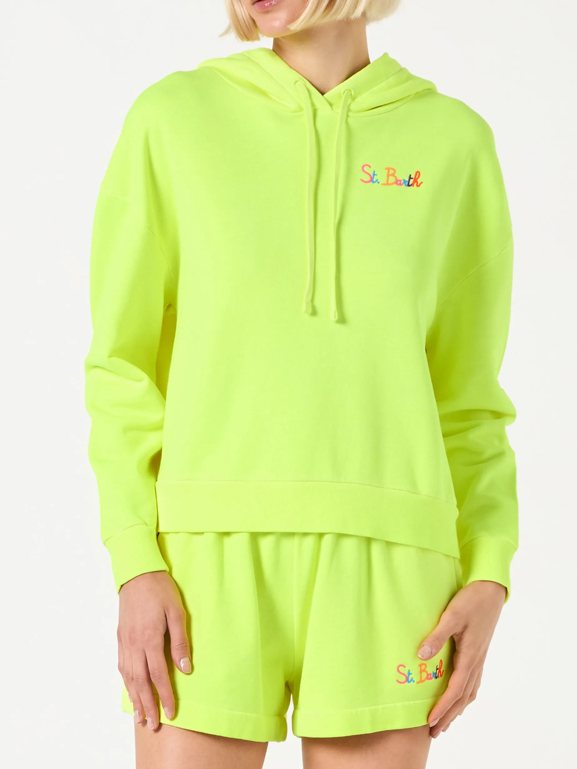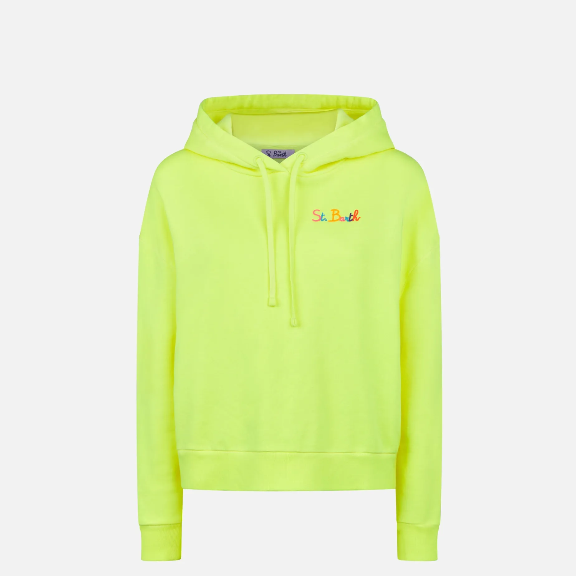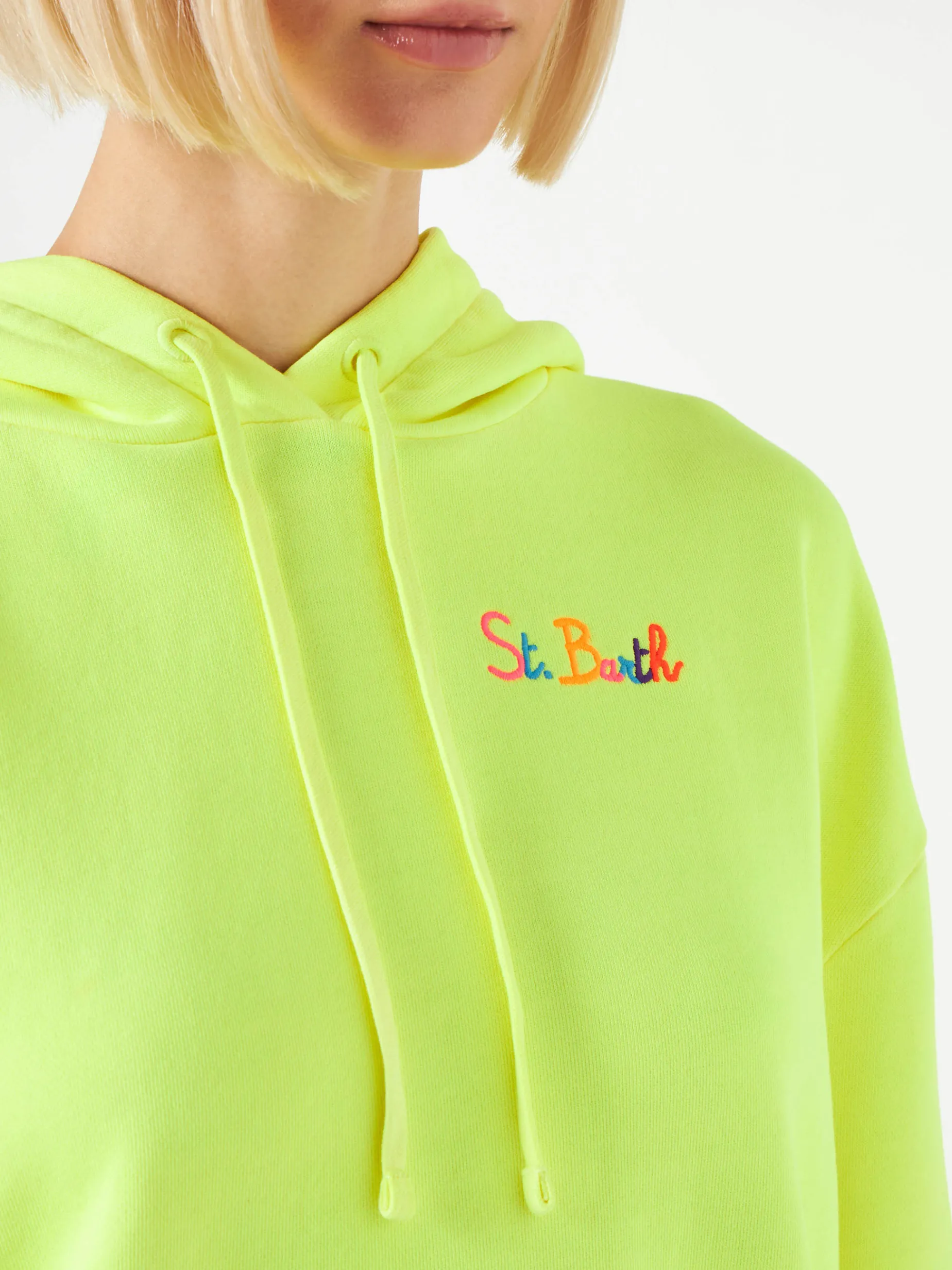 Felpa giallo fluo con cappuccio con ricamo St. Barth