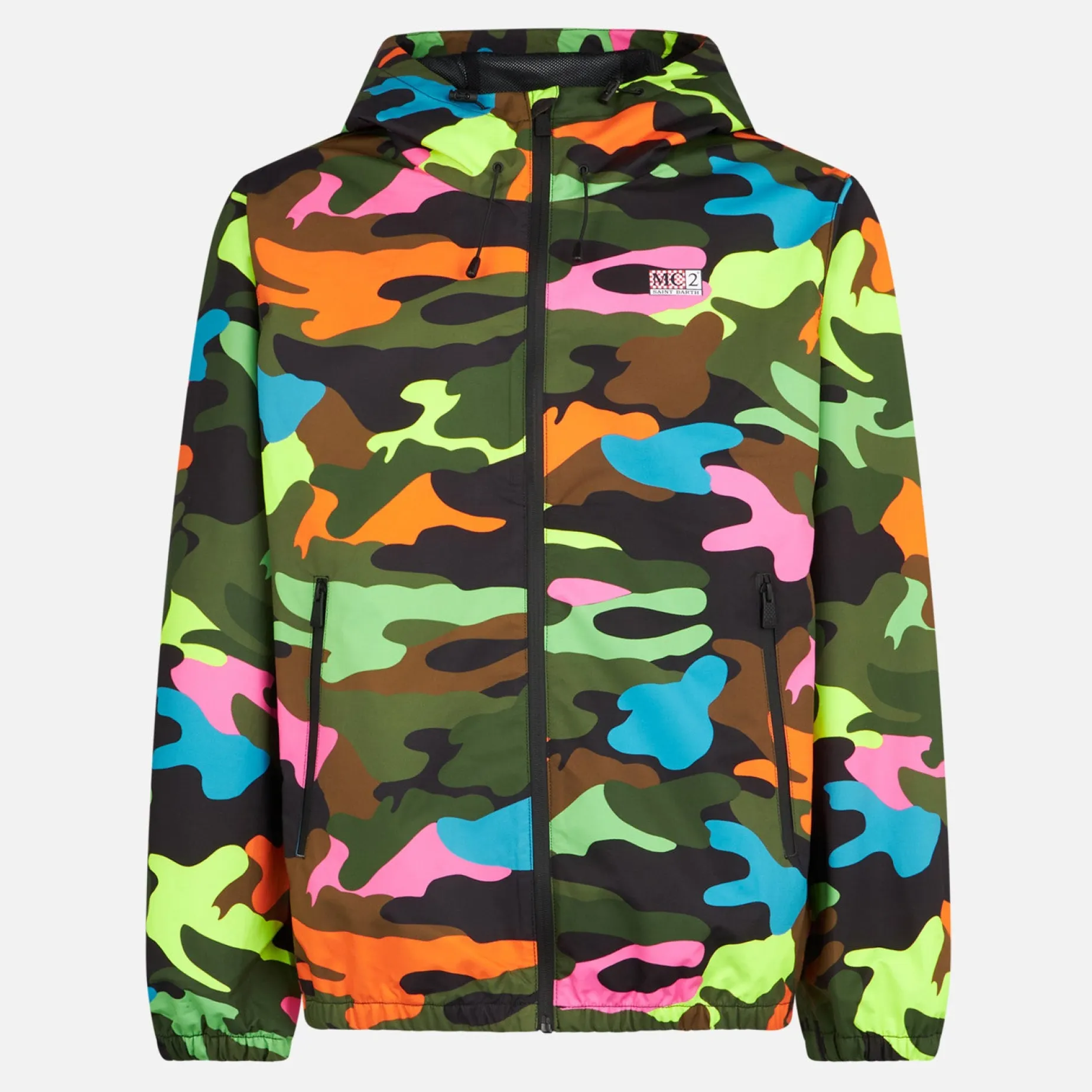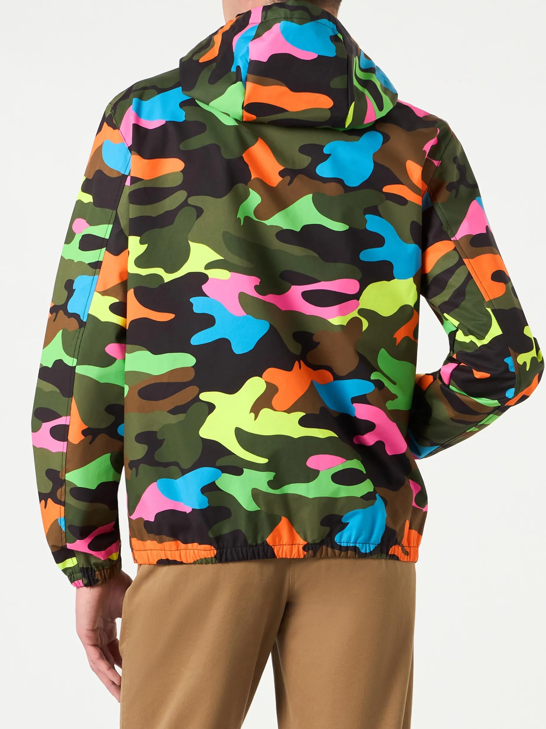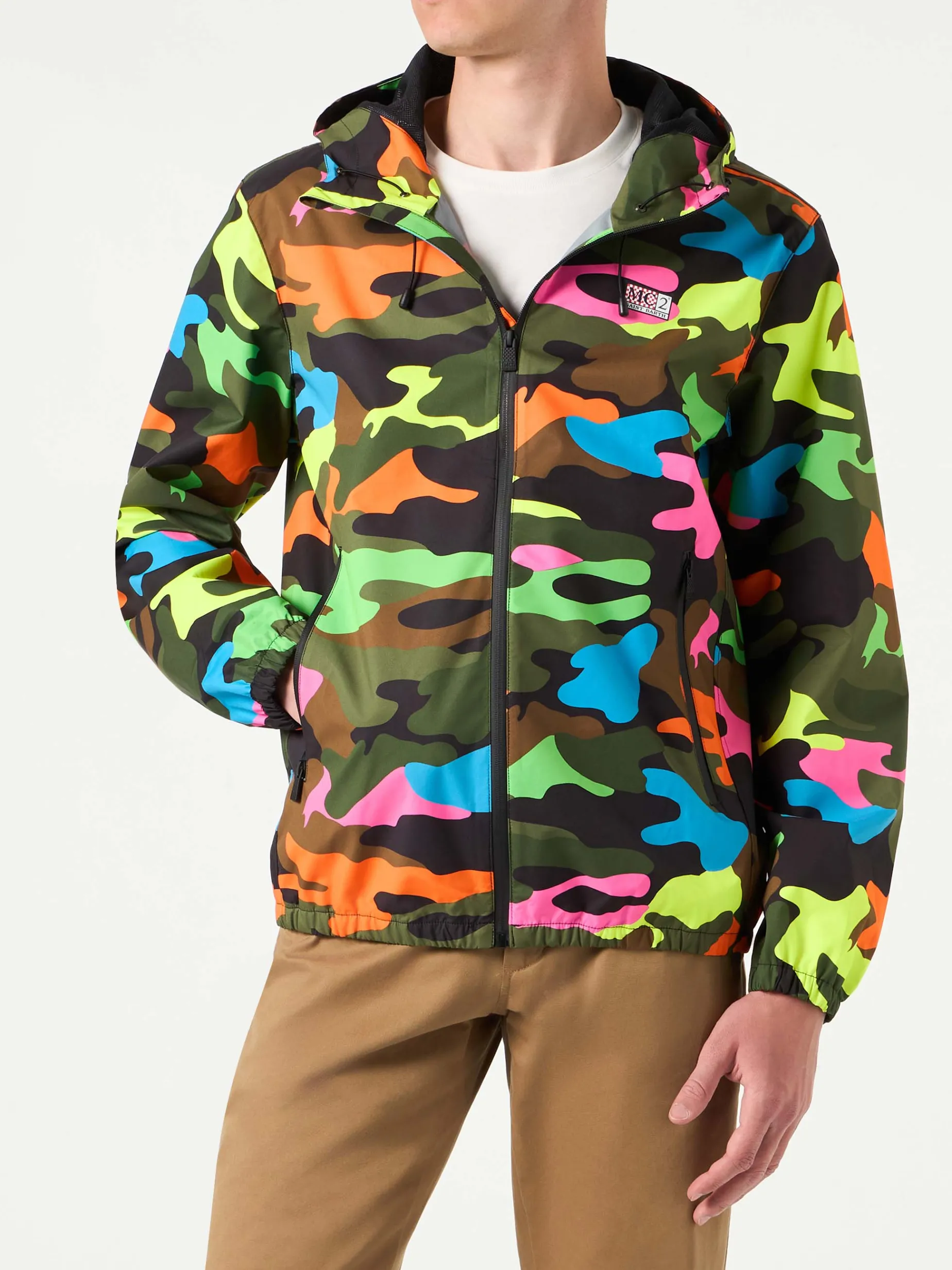 Giacca a vento da uomo con cappuccio con stampa mimetica