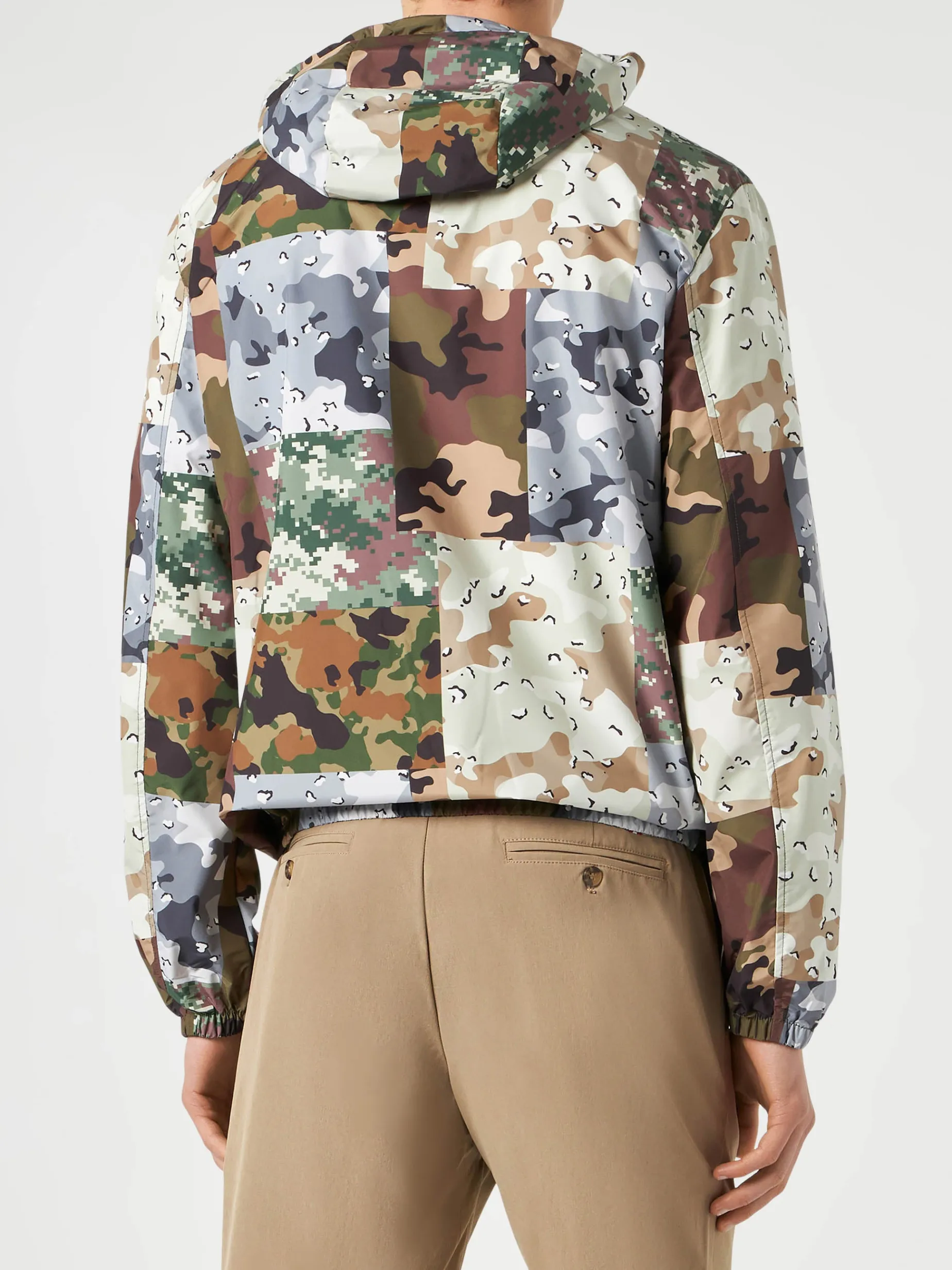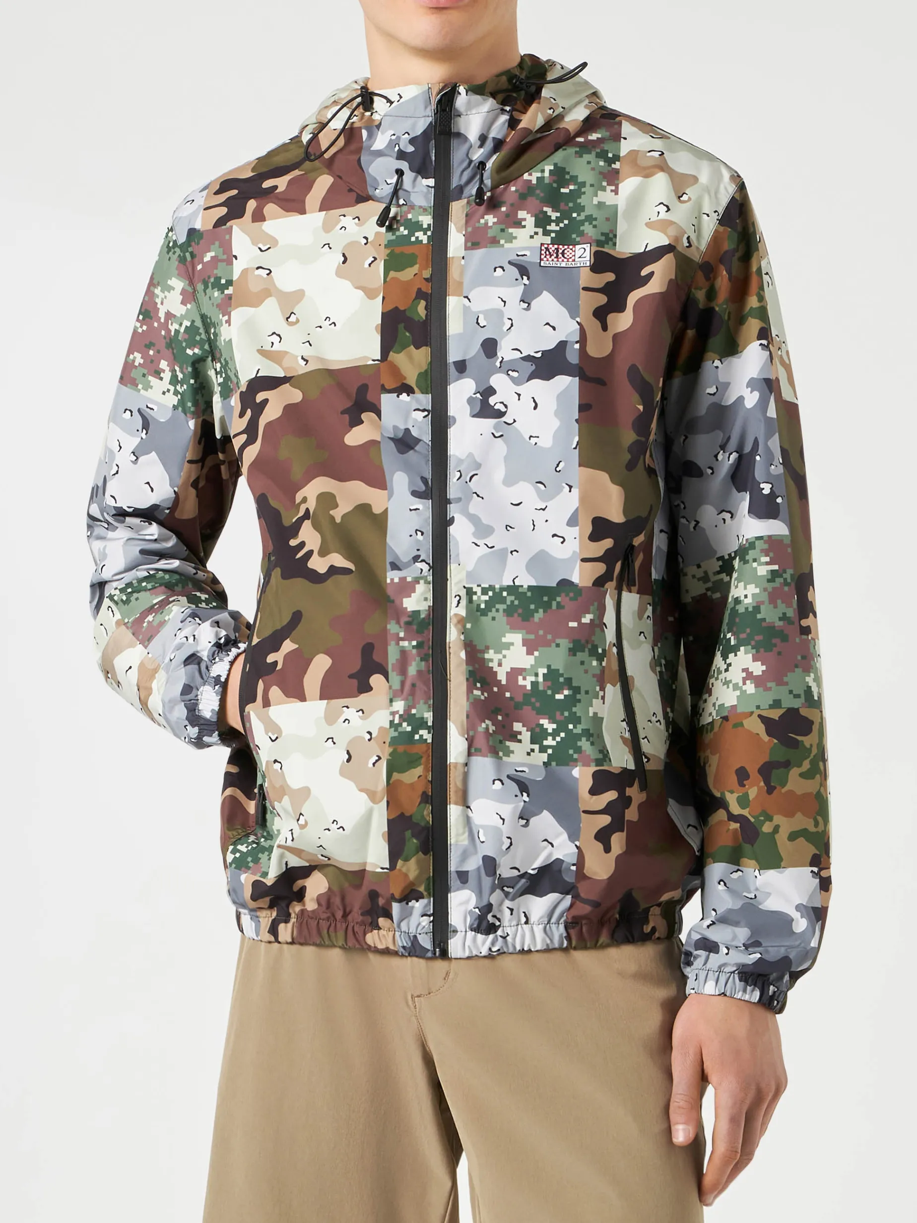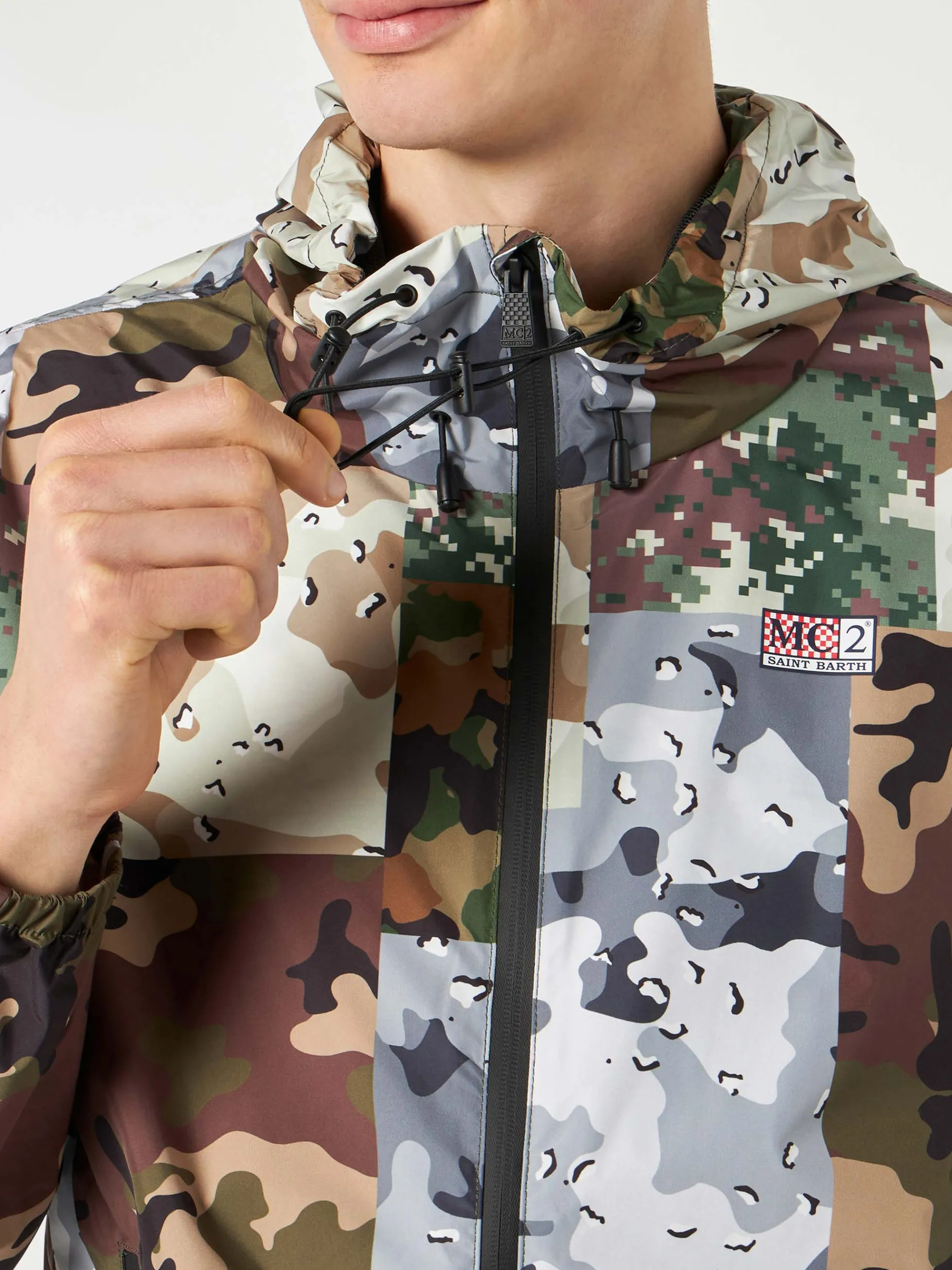 Giacca a vento leggera da uomo con cappuccio e stampa mimetica