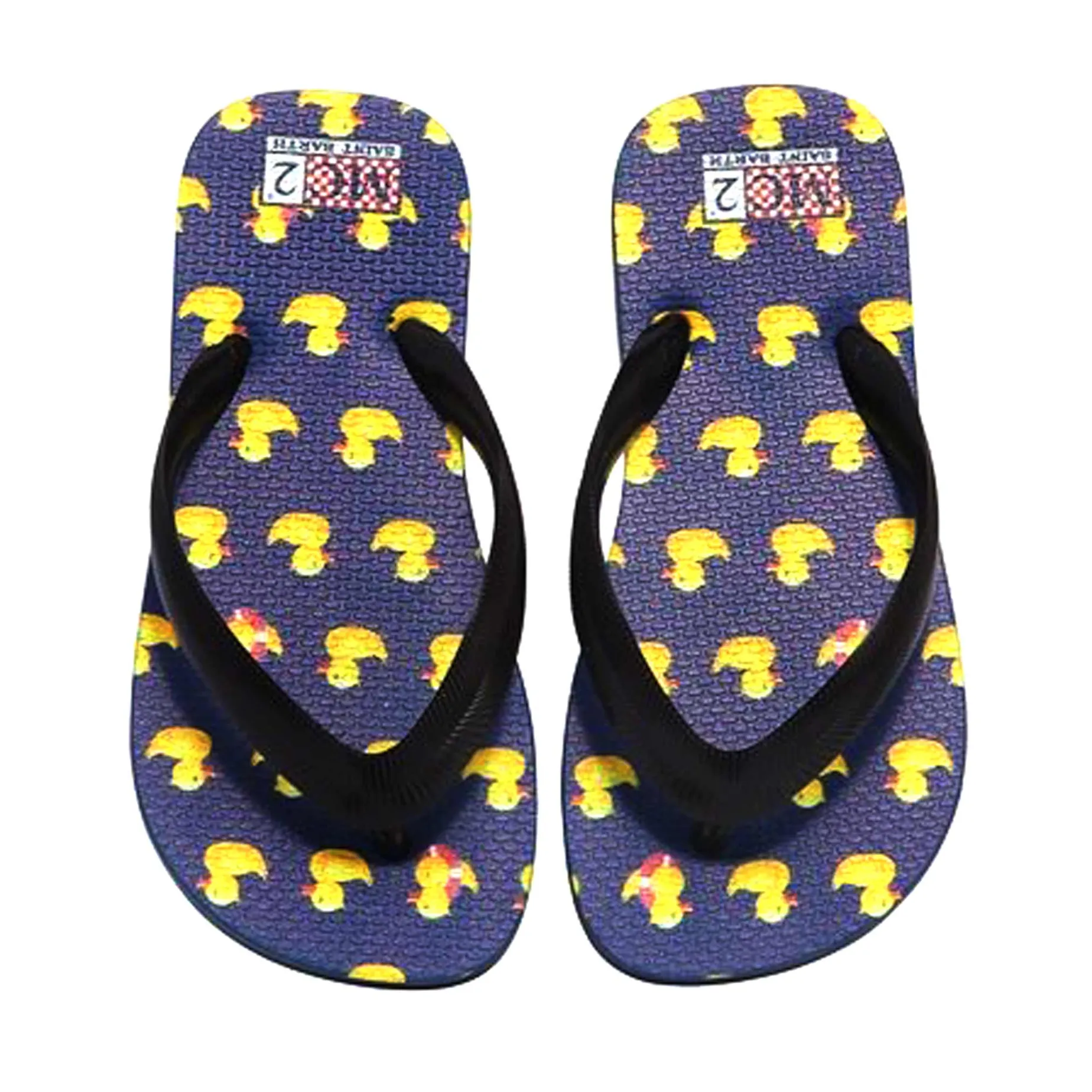 Infradito di gomma nera e blu con stampa papere di MC2 SAINT BARTH con retro aperto, punta aperta e stile infradito. Modello: JIMMY DUC61