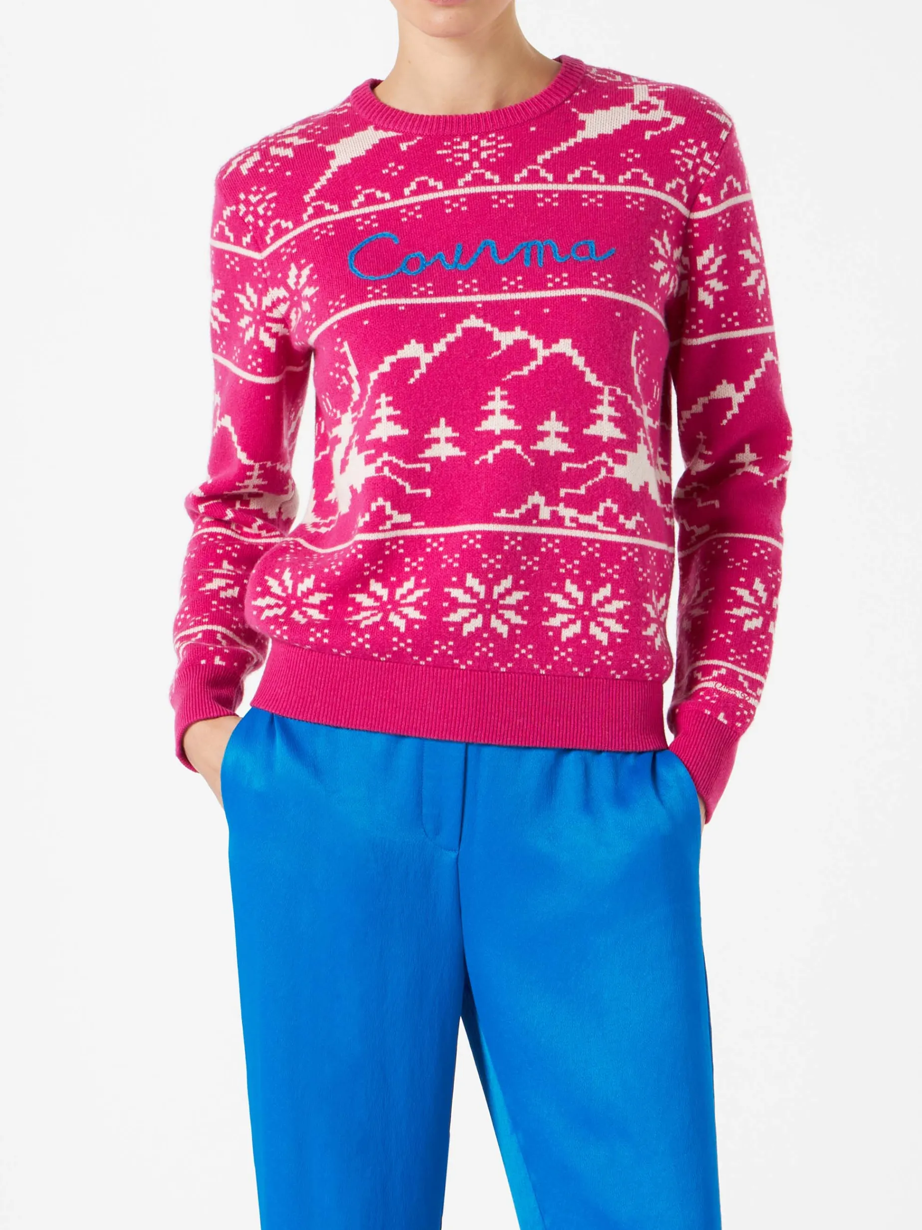 Maglia da donna in misto cashmere fucsia