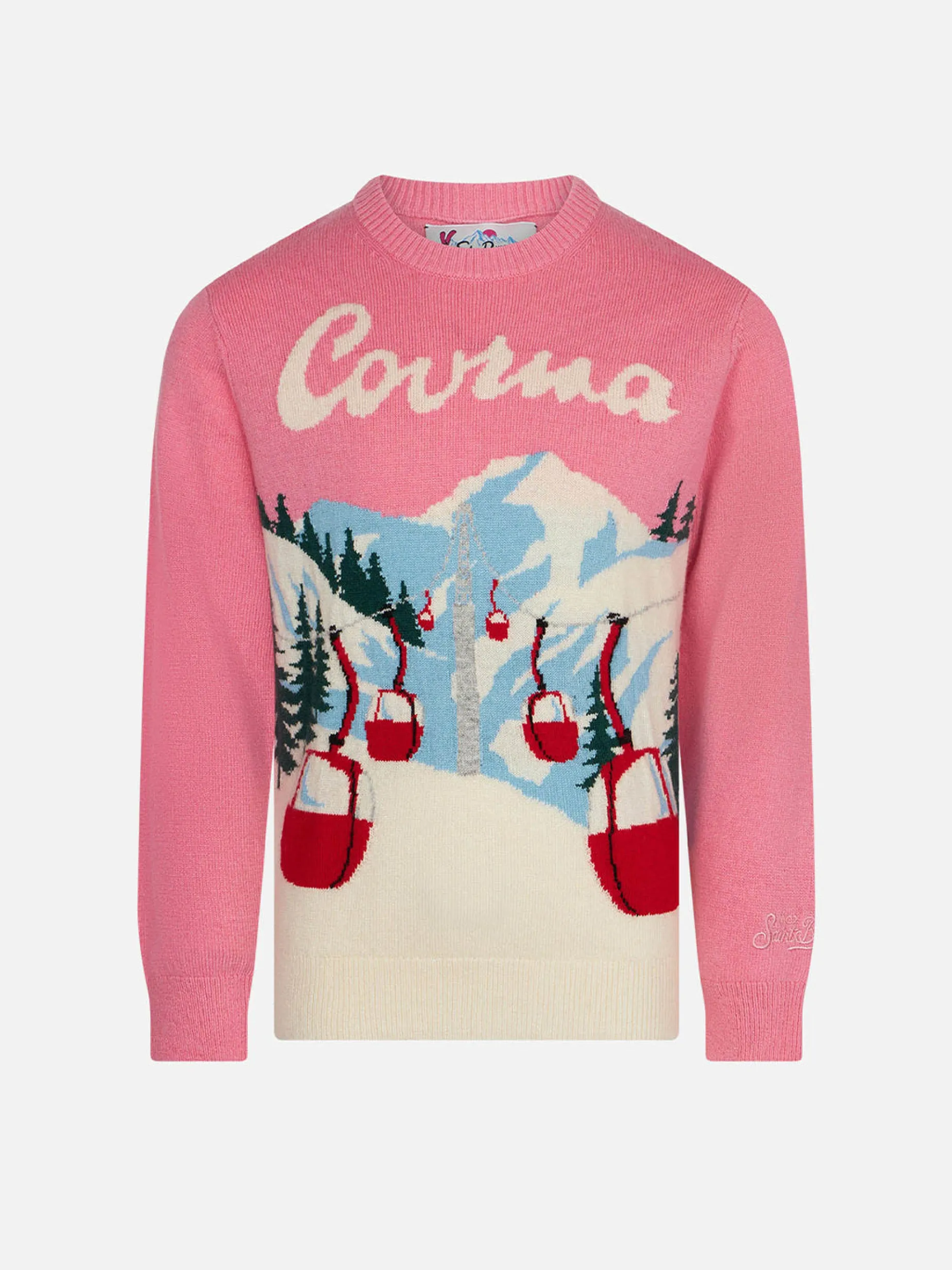 Cartolina di Courmayeur su sfondo rosa