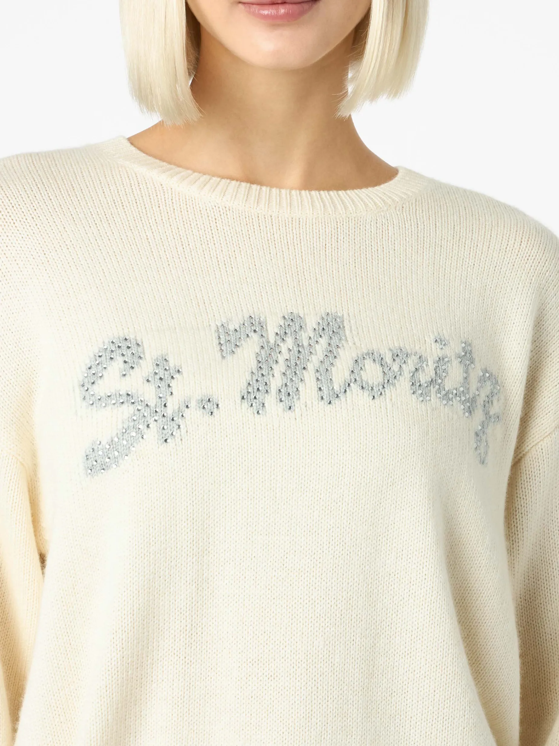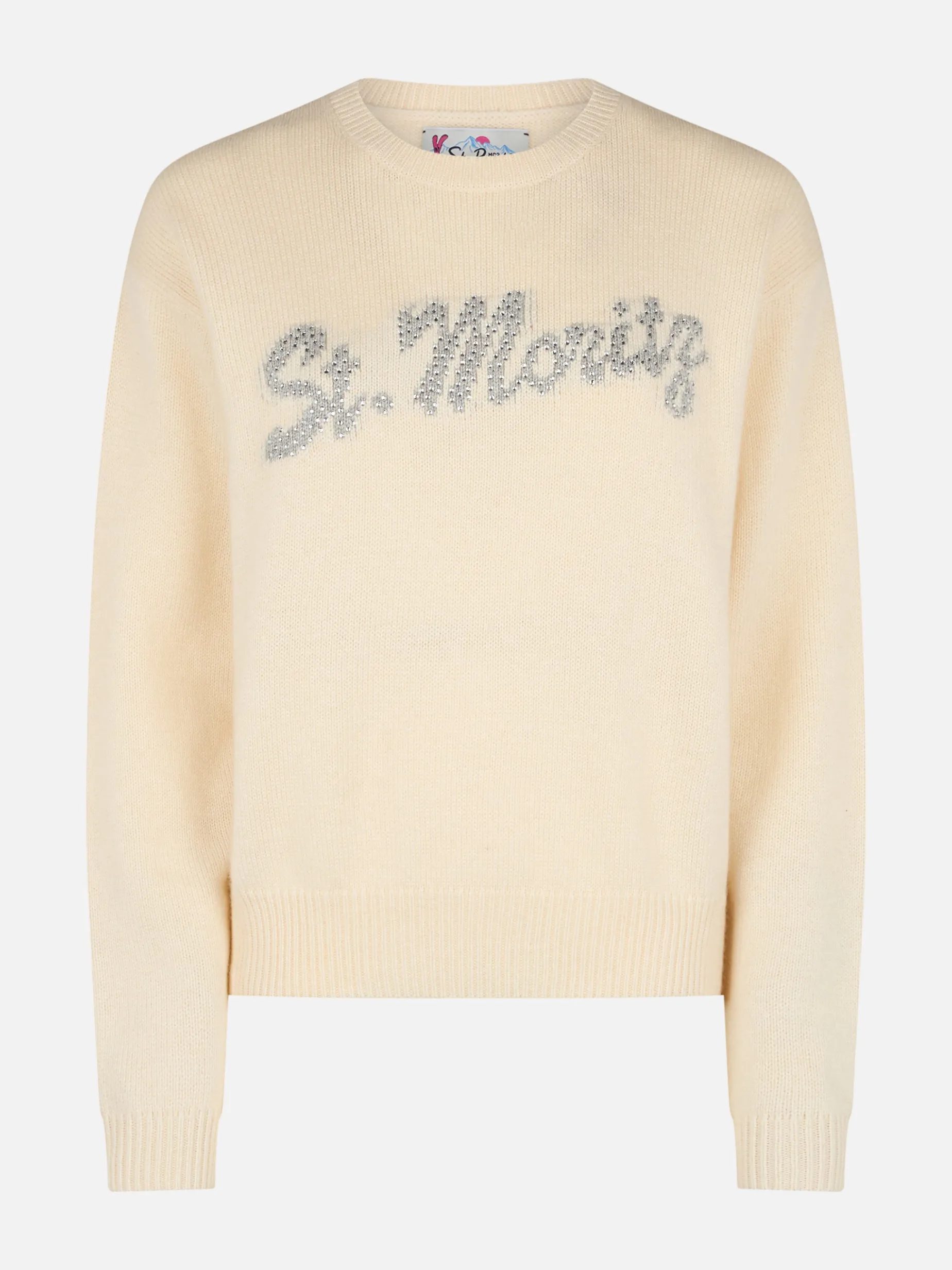 Iscrizione St. Moritz Top of the World impreziosita da scintillanti strass