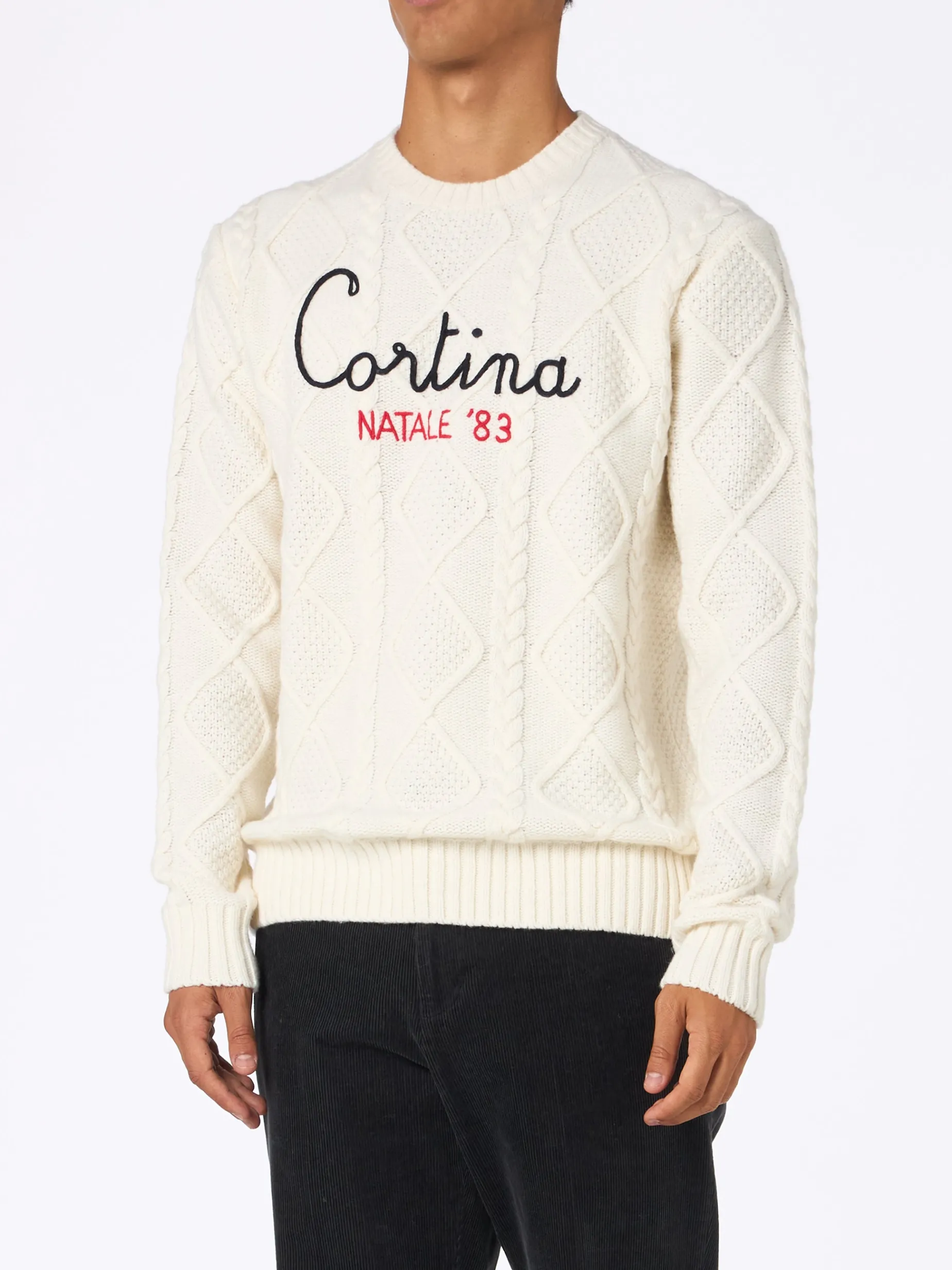 Maglione girocollo da uomo in maglia a trecce
