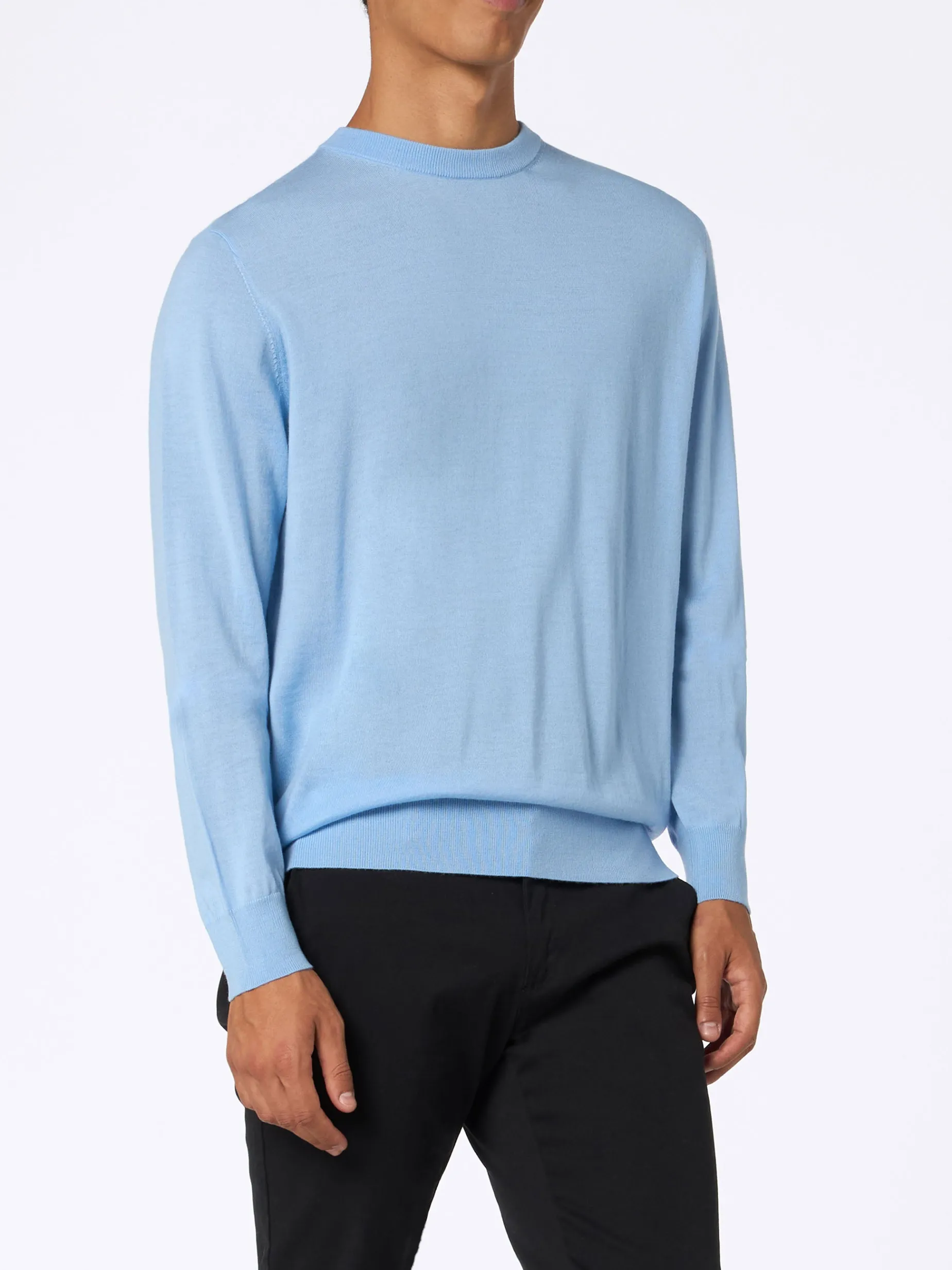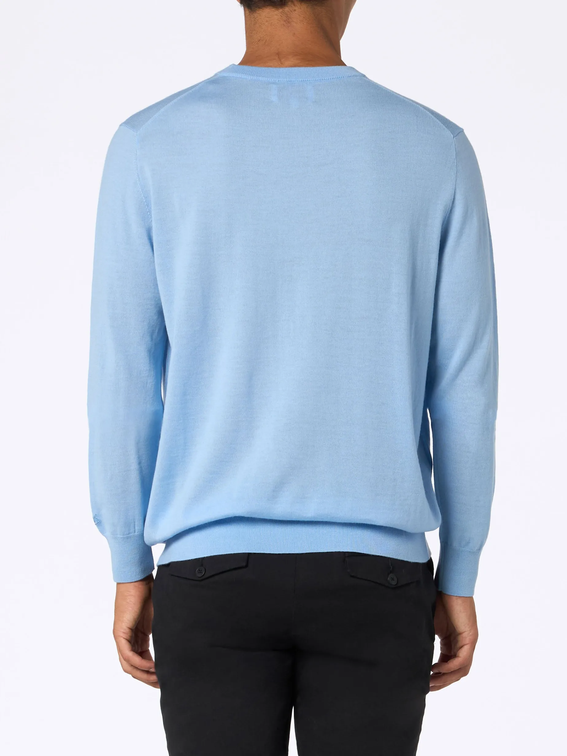 Maglione da uomo in lana merino azzurro chiaro