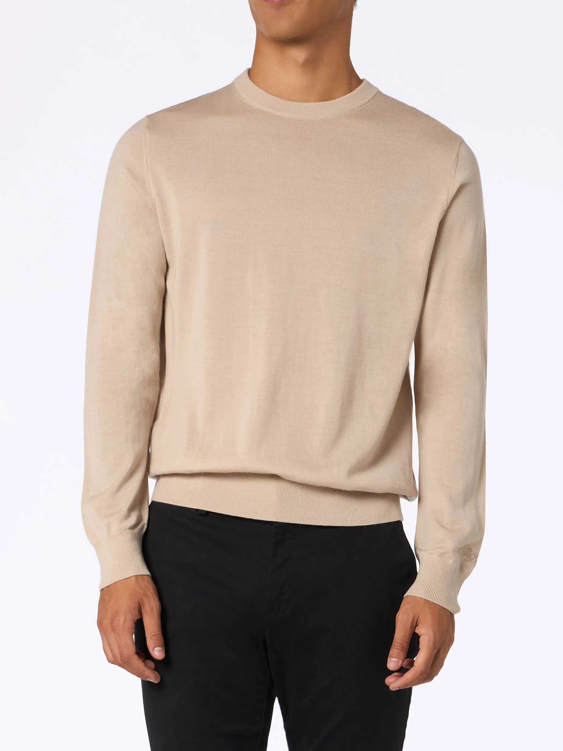 Maglione da uomo in lana merino beige