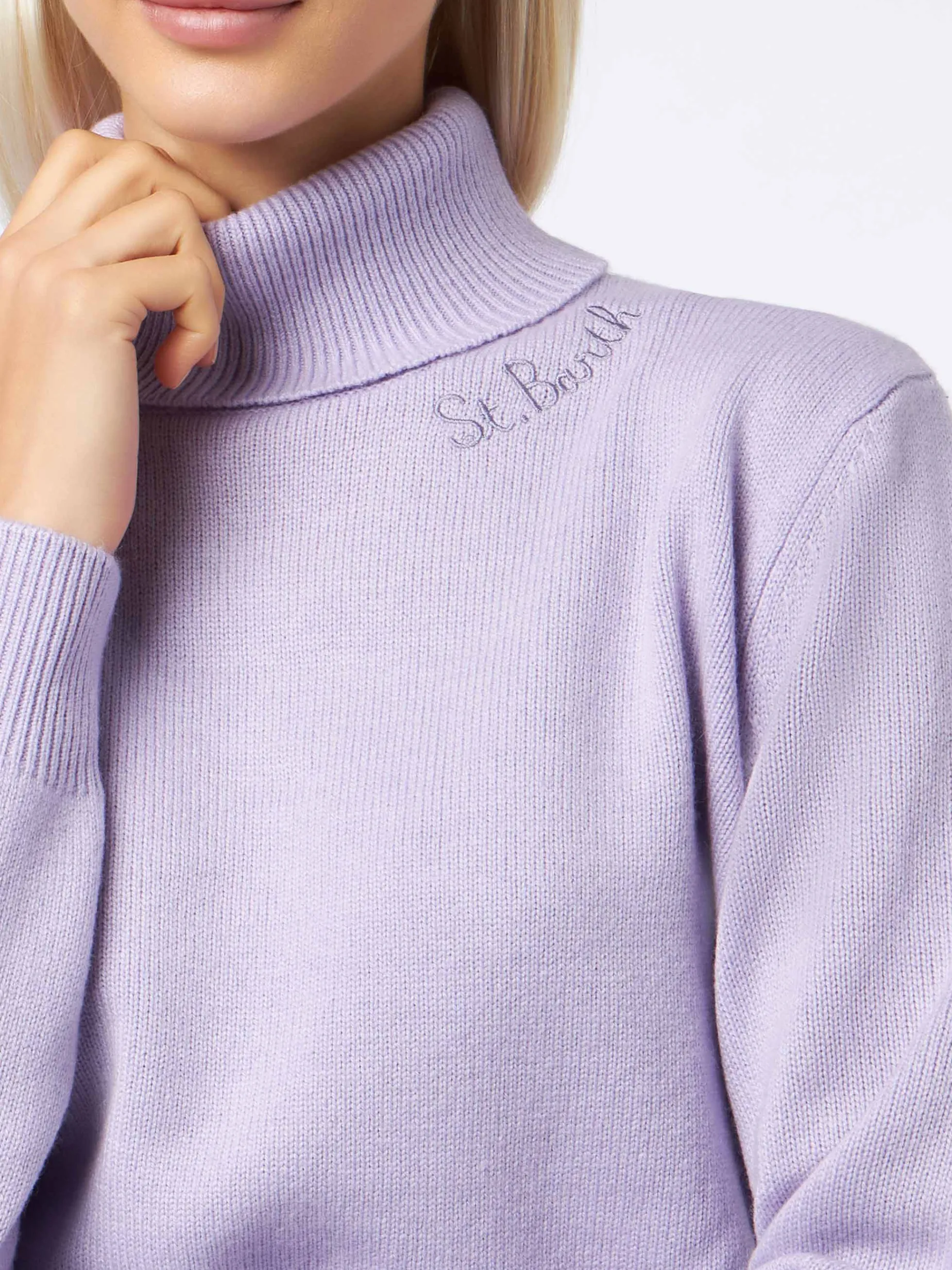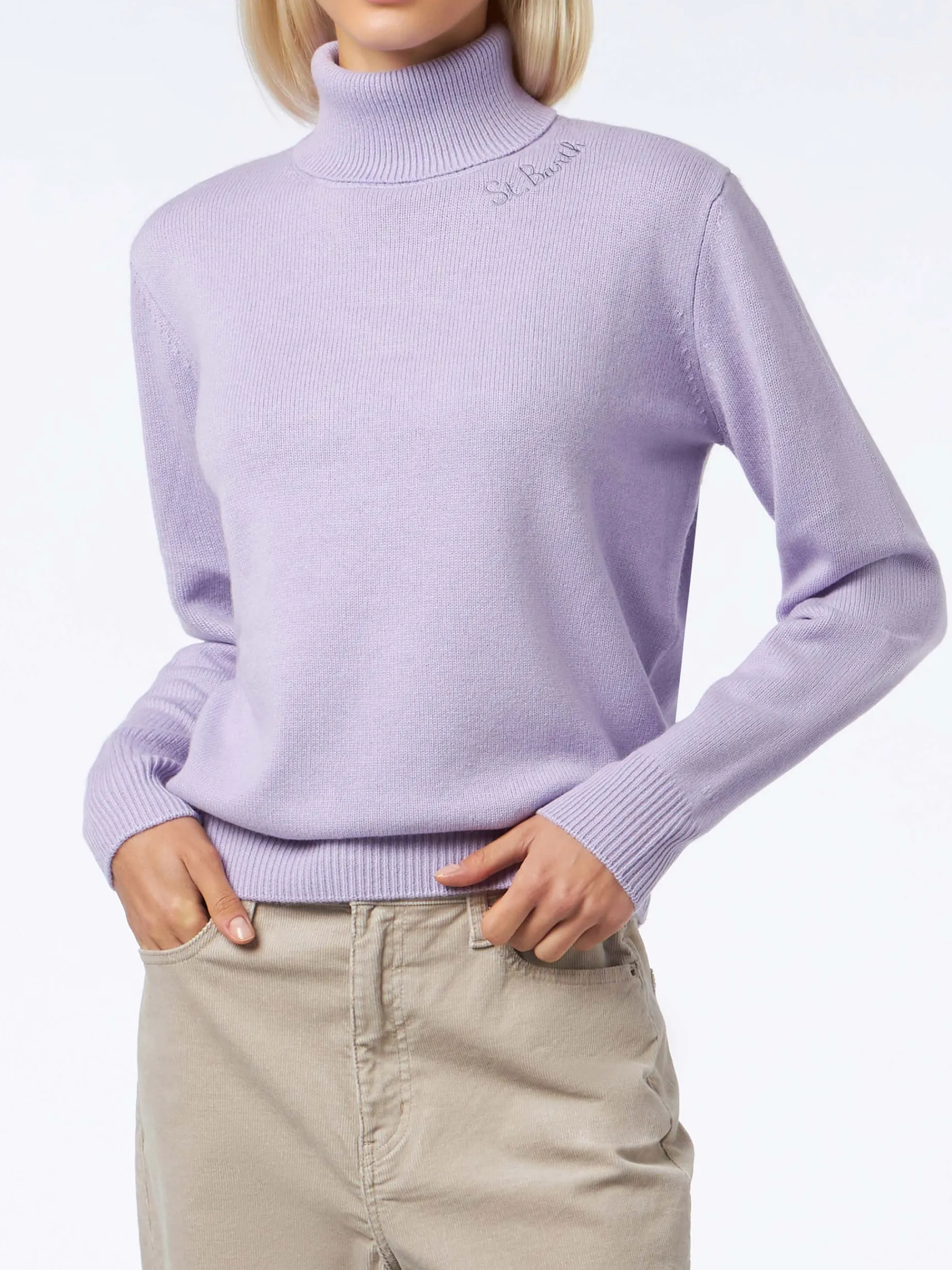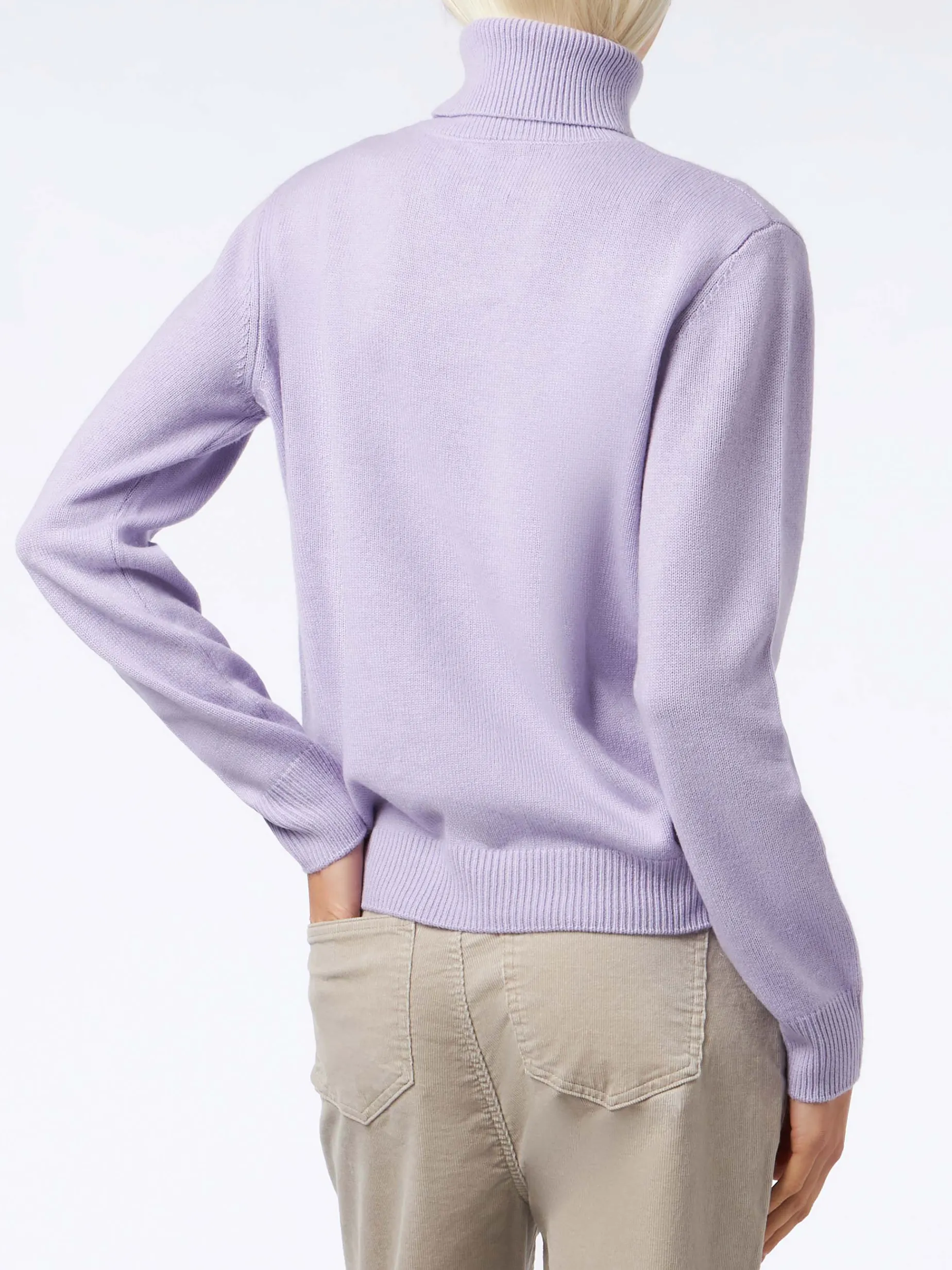 Maglione dolcevita da donna lavorato a maglia lilla