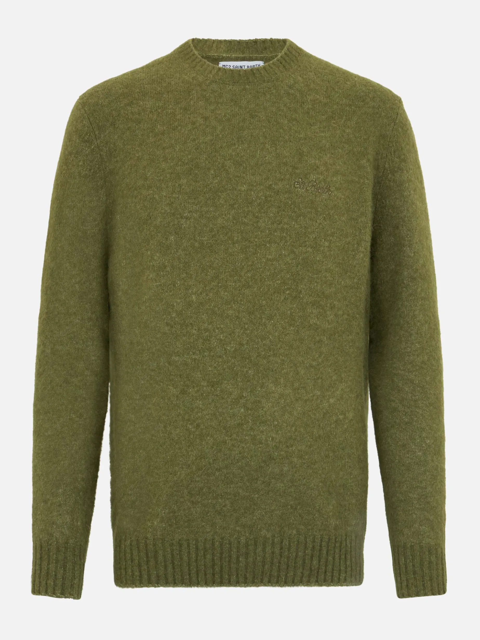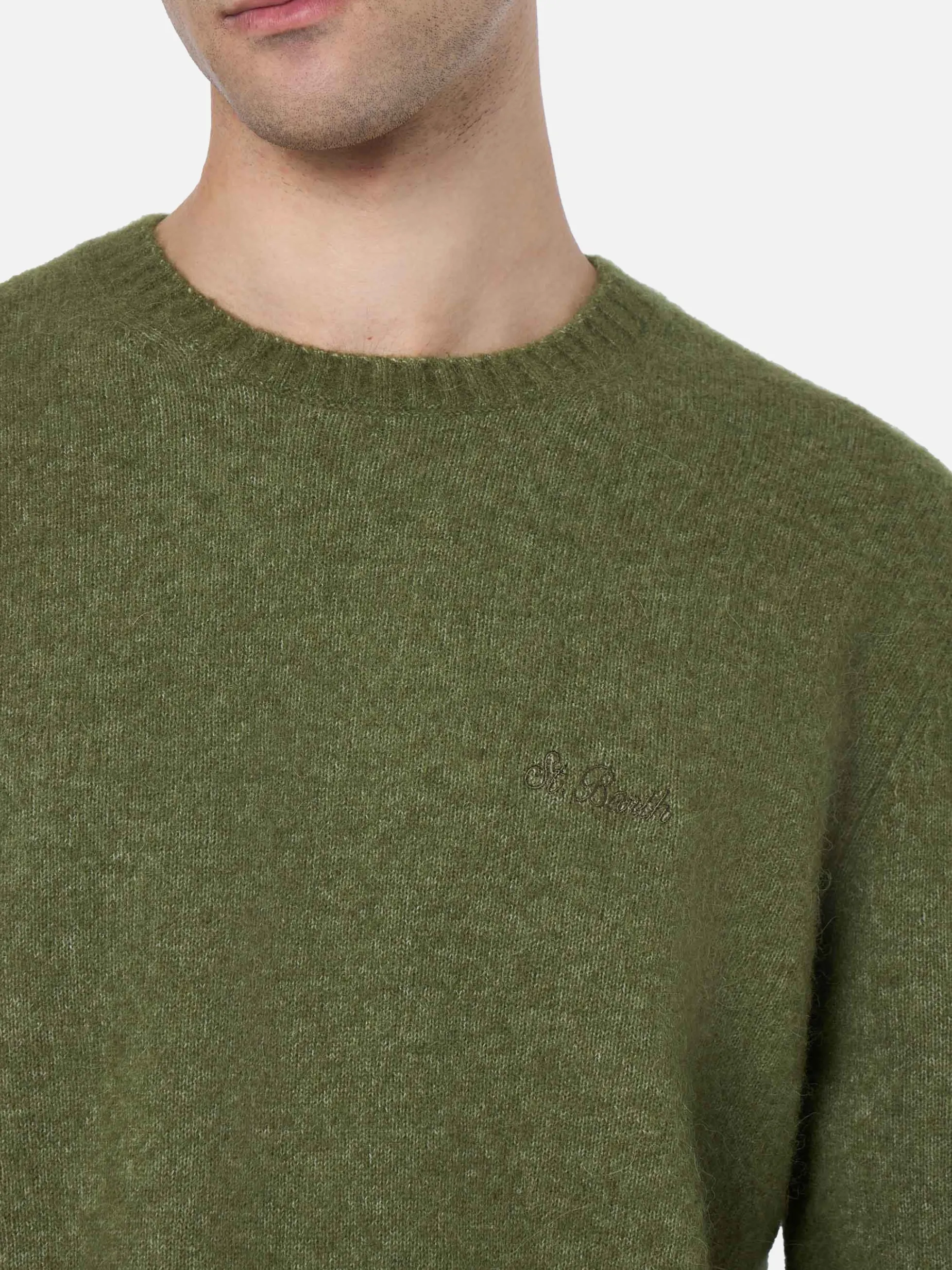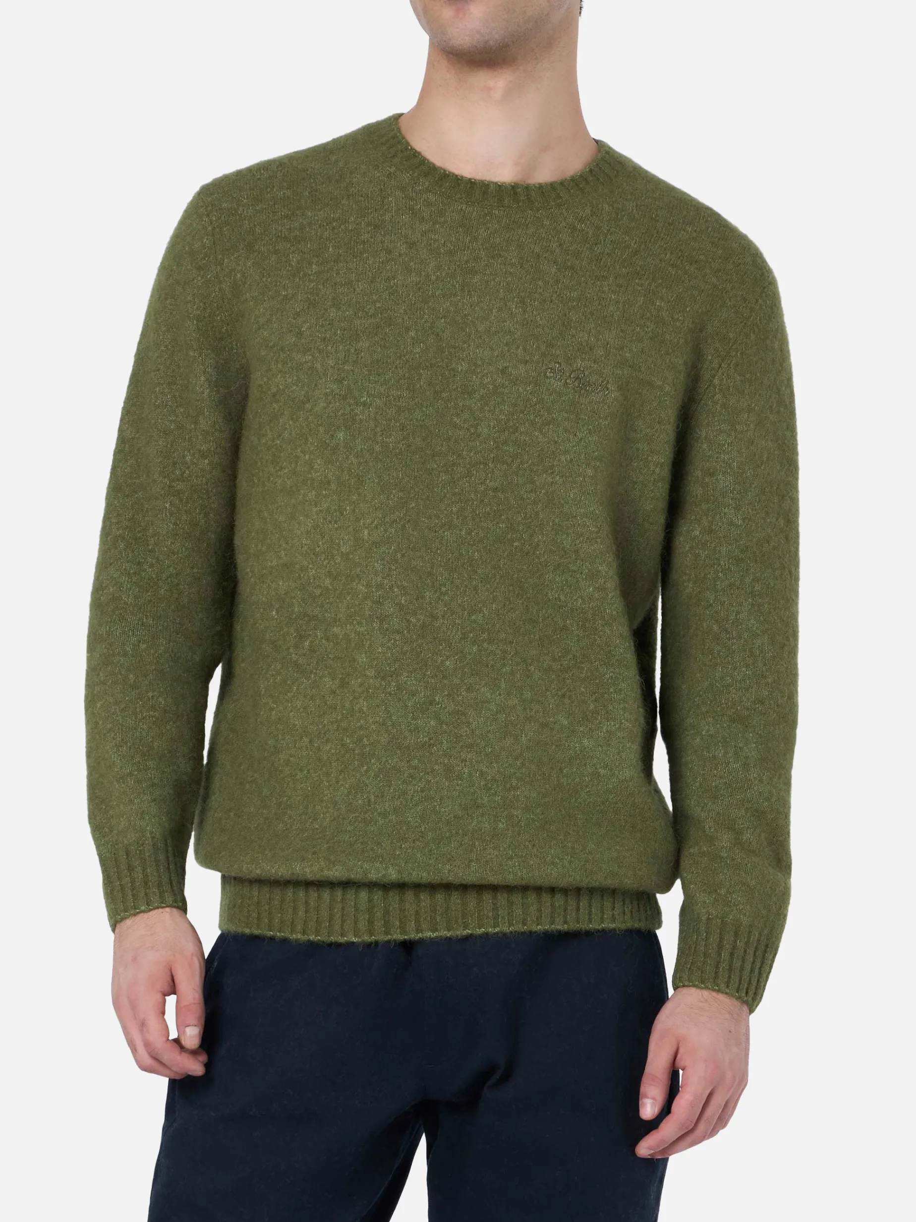 Maglione elasticizzato verde militare da uomo