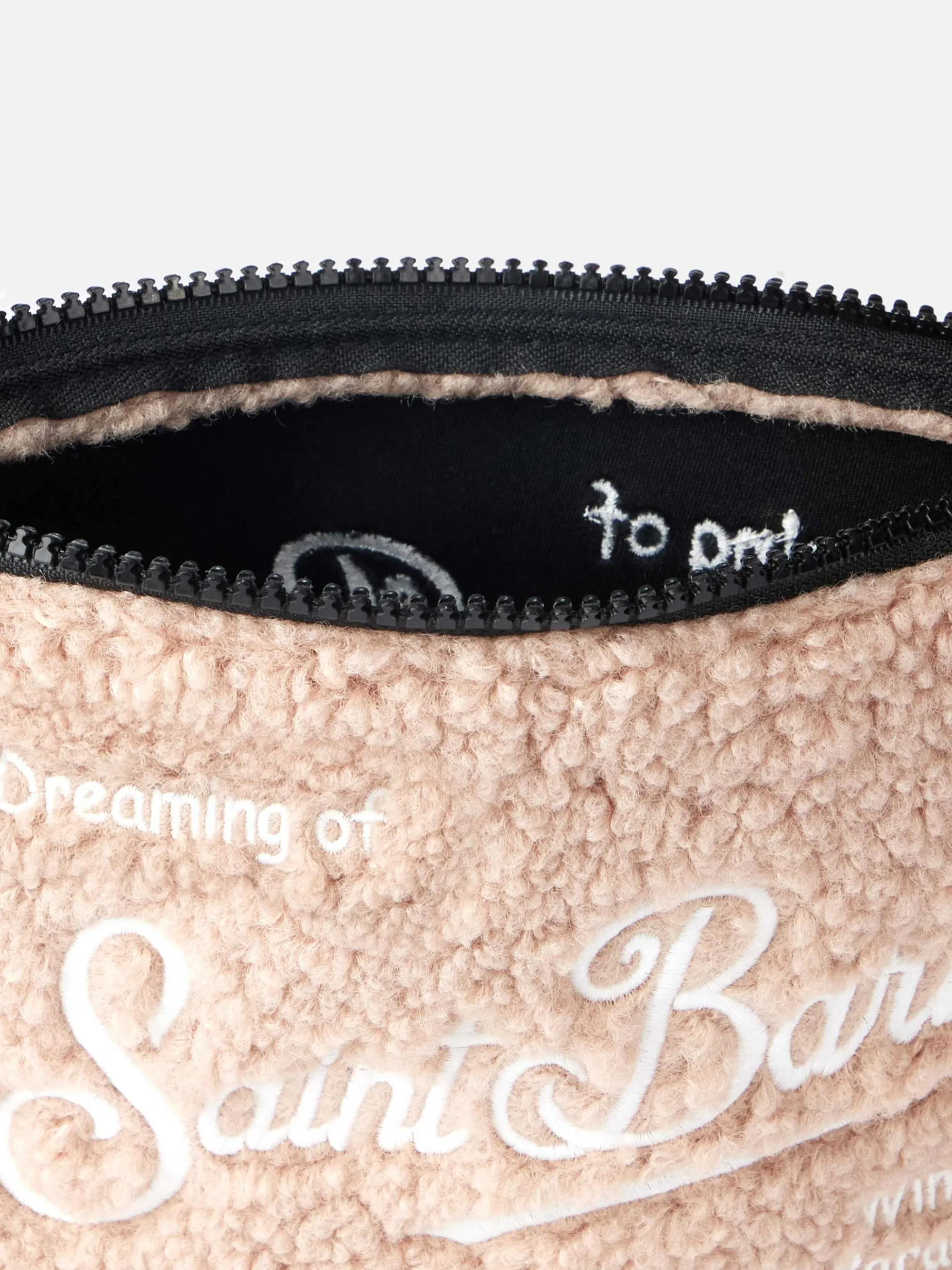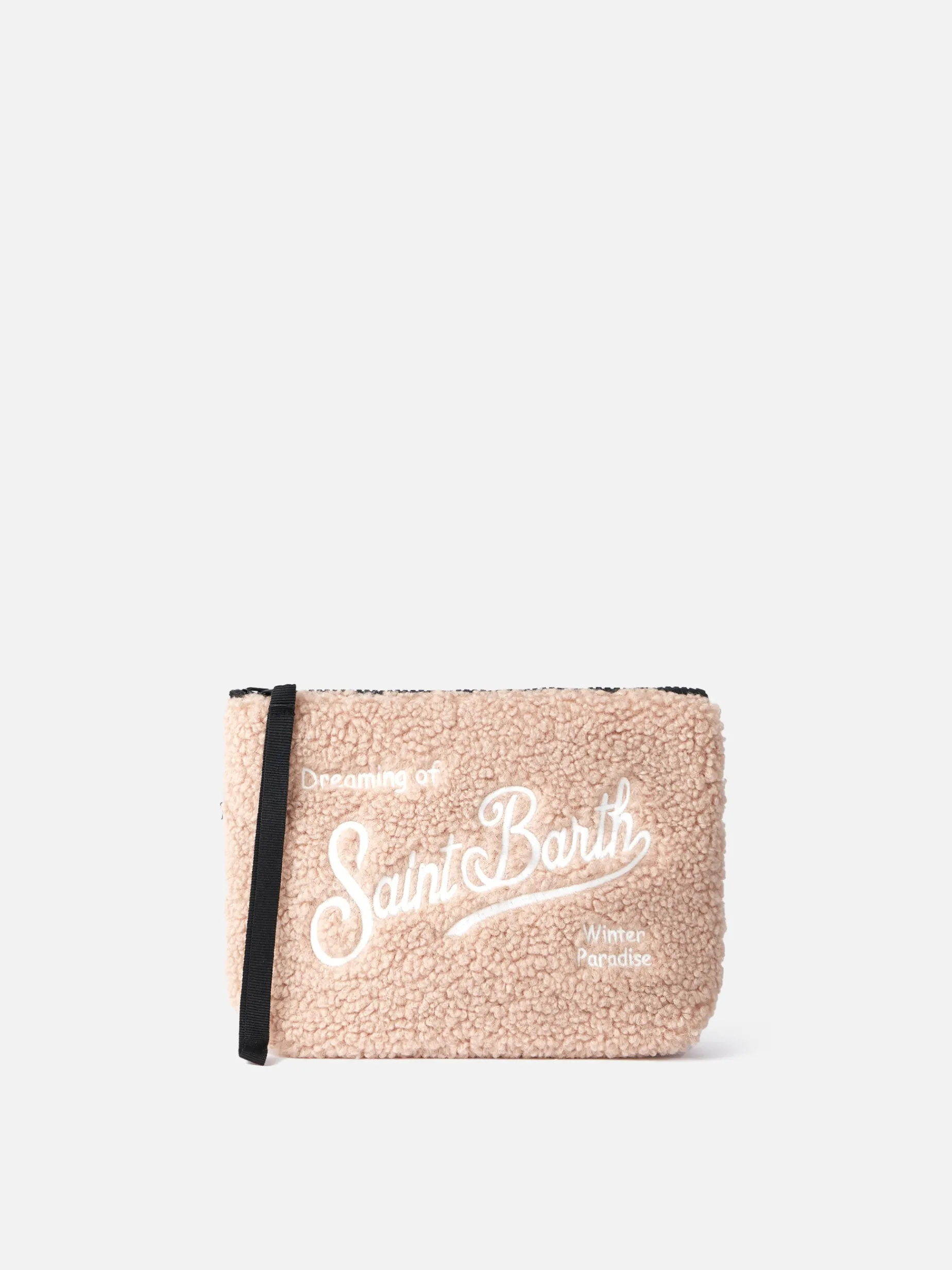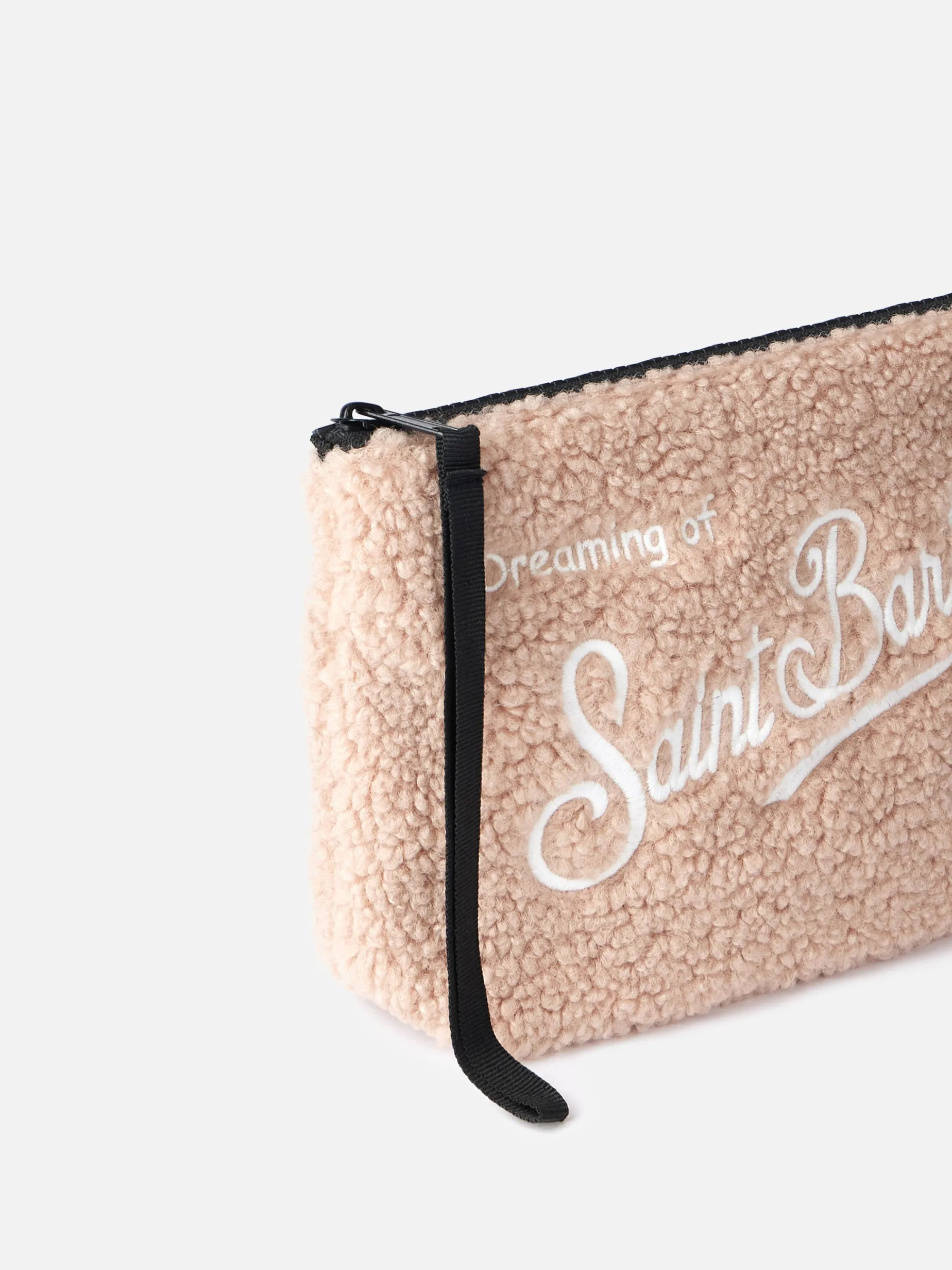 Pochette beige teddy Aline con ricamo logo