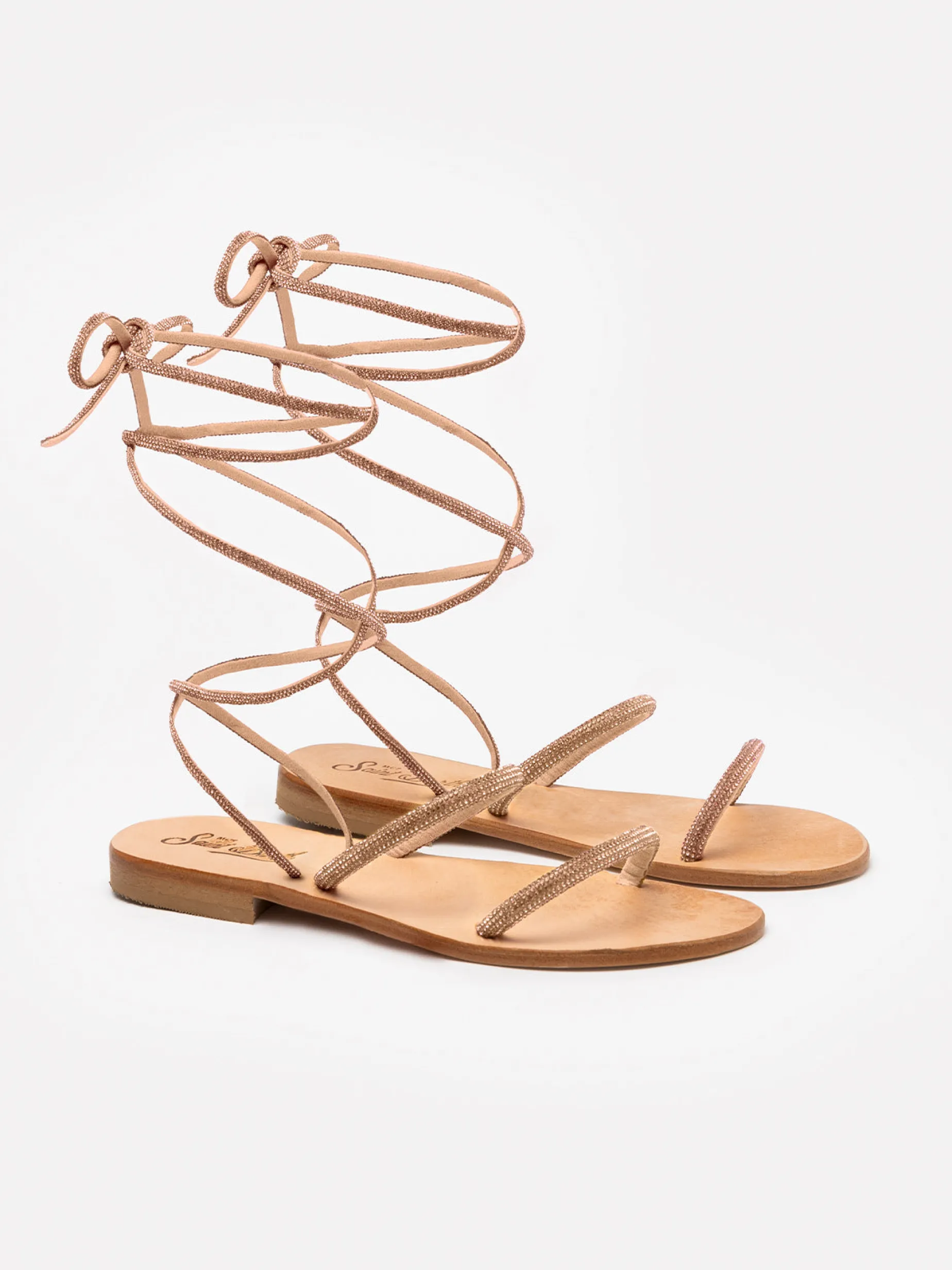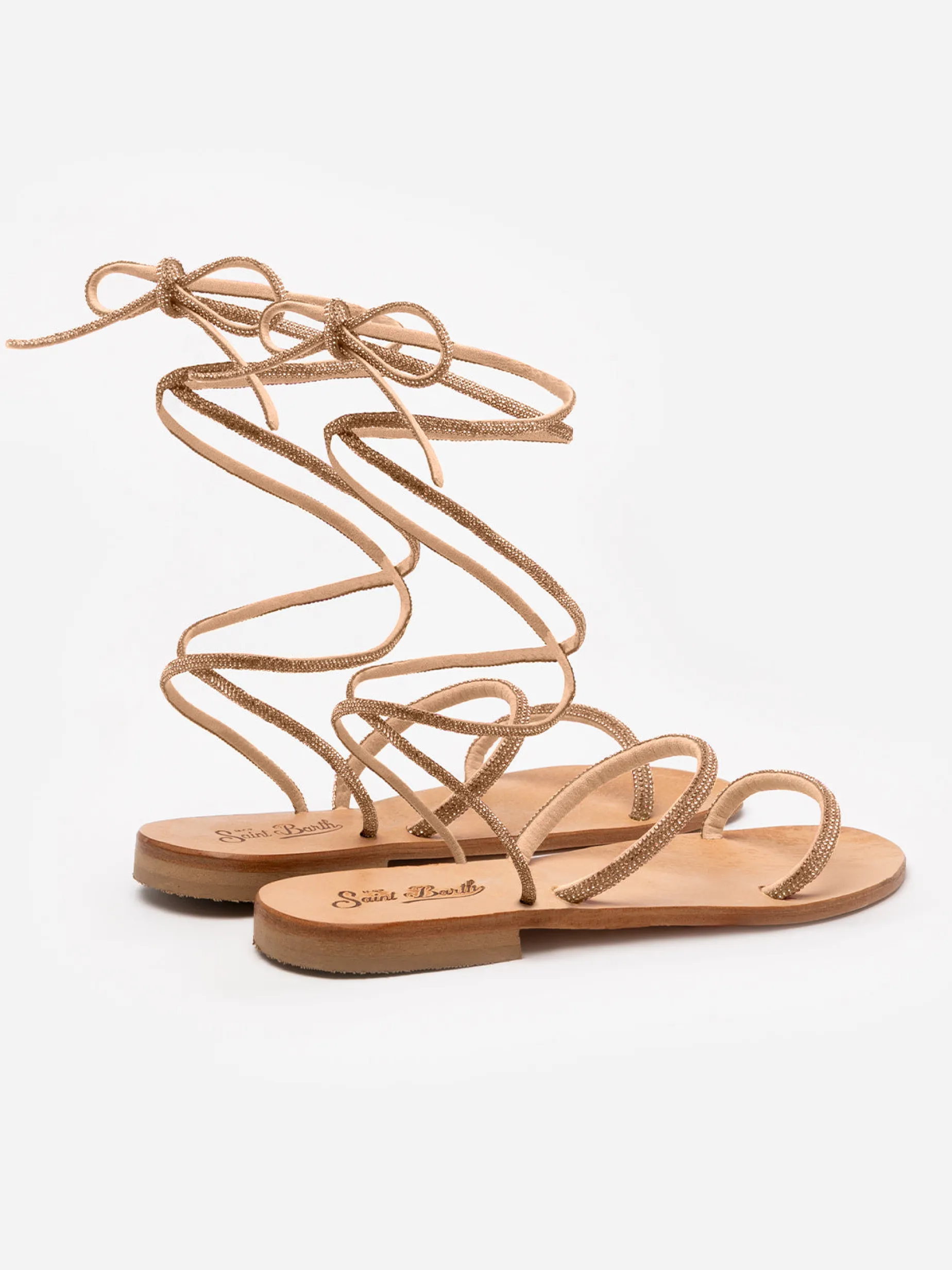 Sandali flat avvolgenti con strass oro