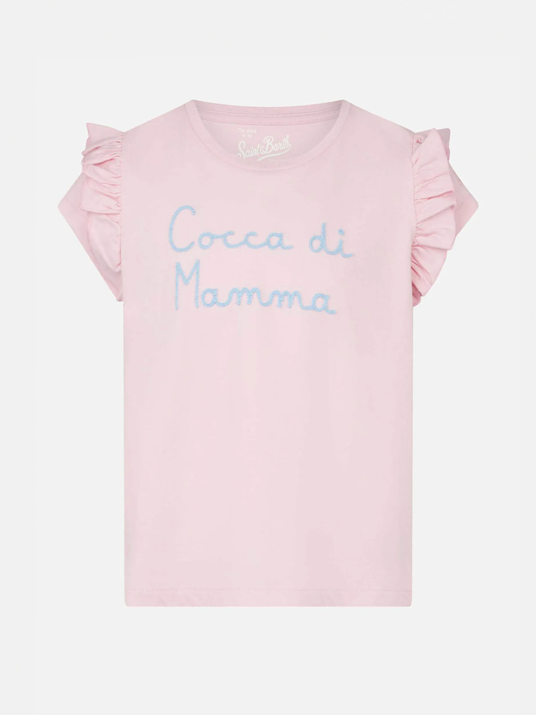 Colore rosa con scritta stampata azzurra Cocca di mamma