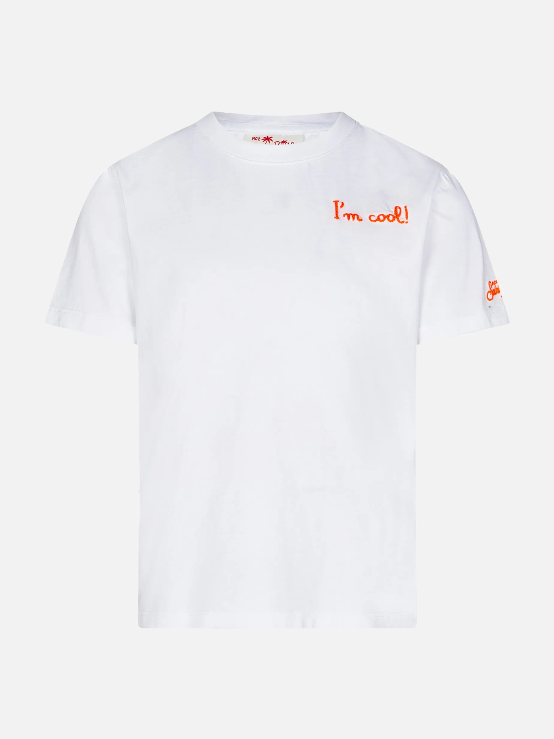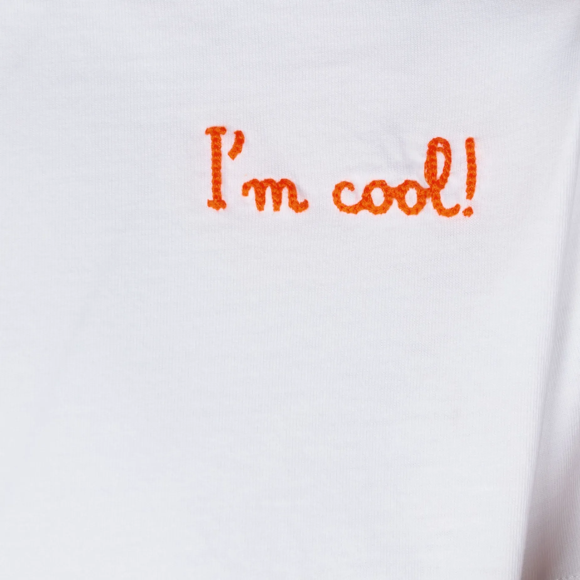 ricamo frontale I’m cool e stampa Snoopy sul retro