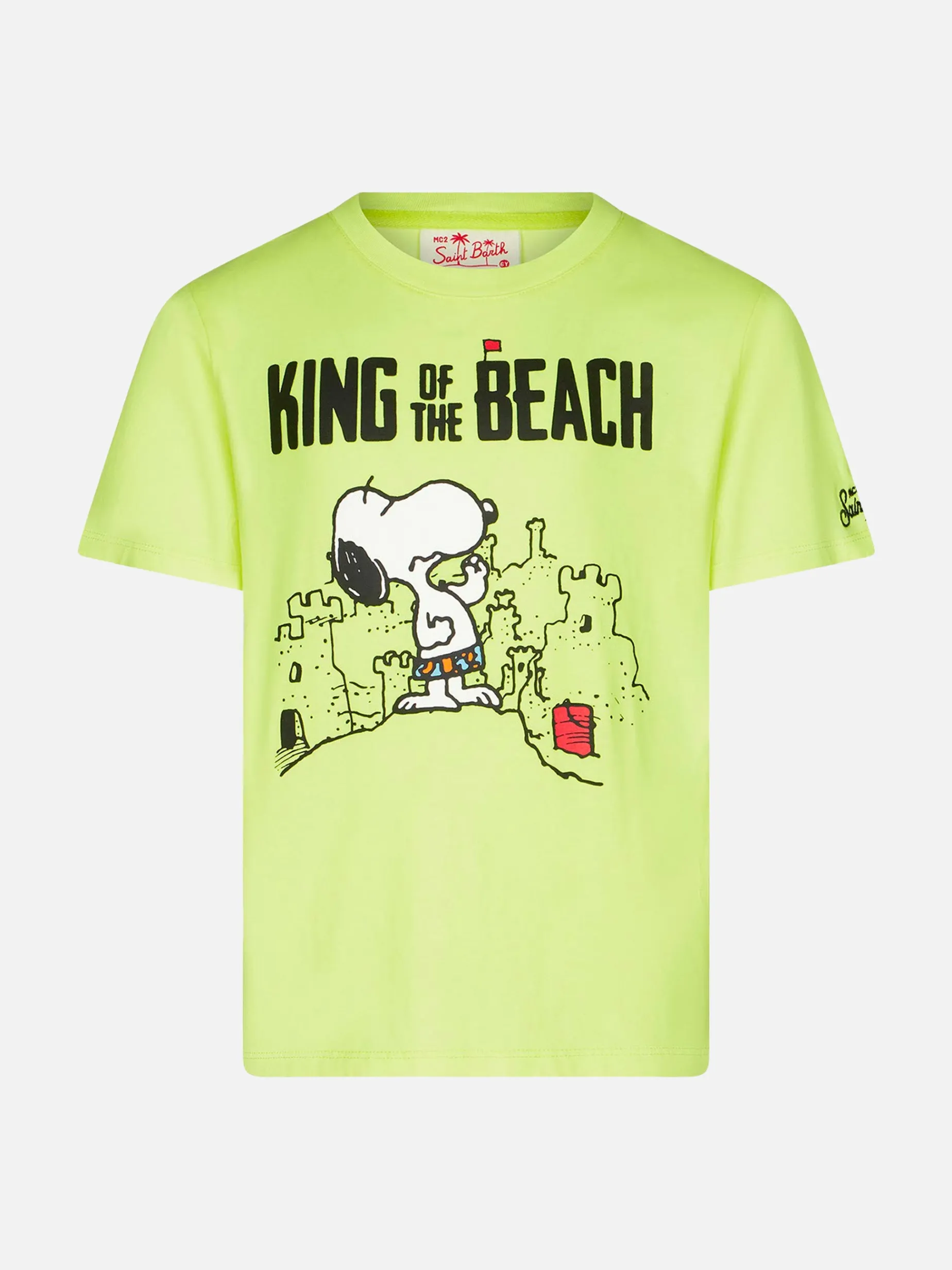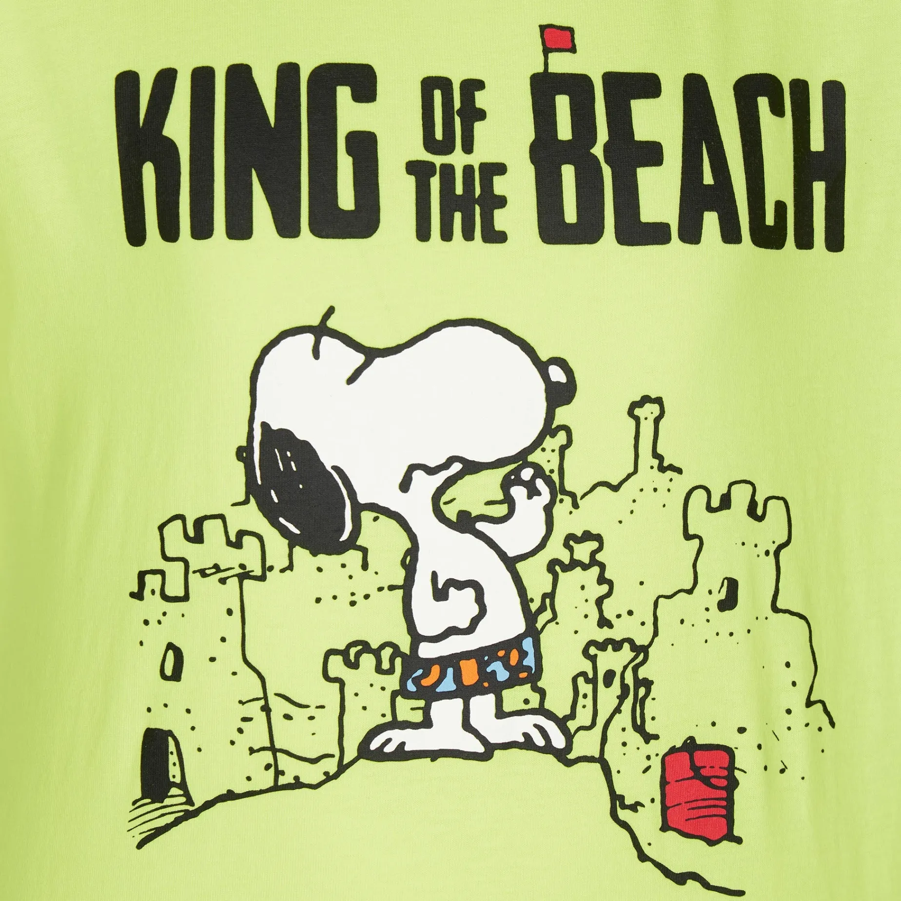 Stampa Snoopy King of the Beach su sfondo giallo fluo