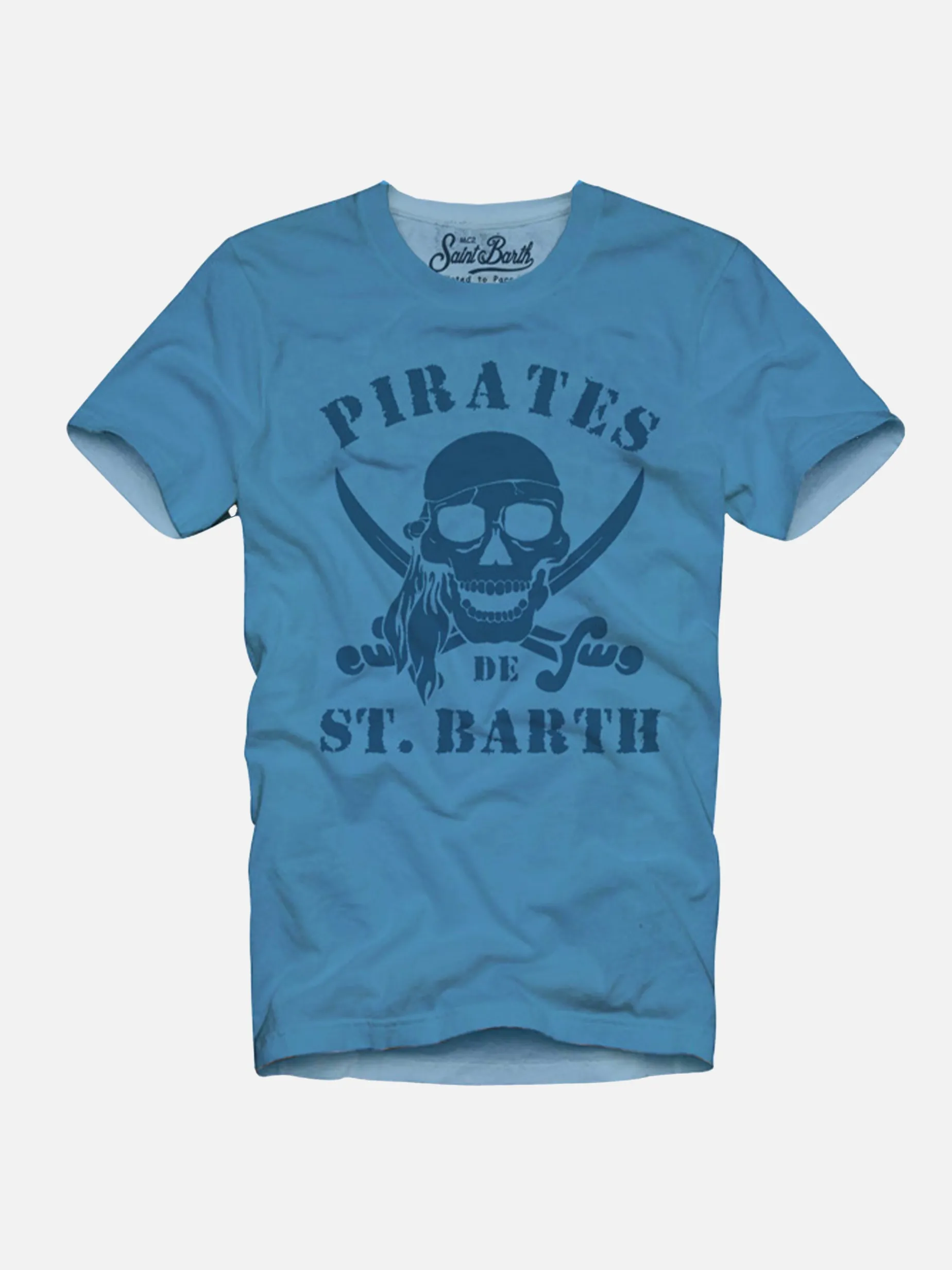 T-Shirt bambino Rock Skul16, stampa frontale Pirata, vestibilità slim, girocollo, in morbido cotone Bluette, manica corta, stile St. Barth.