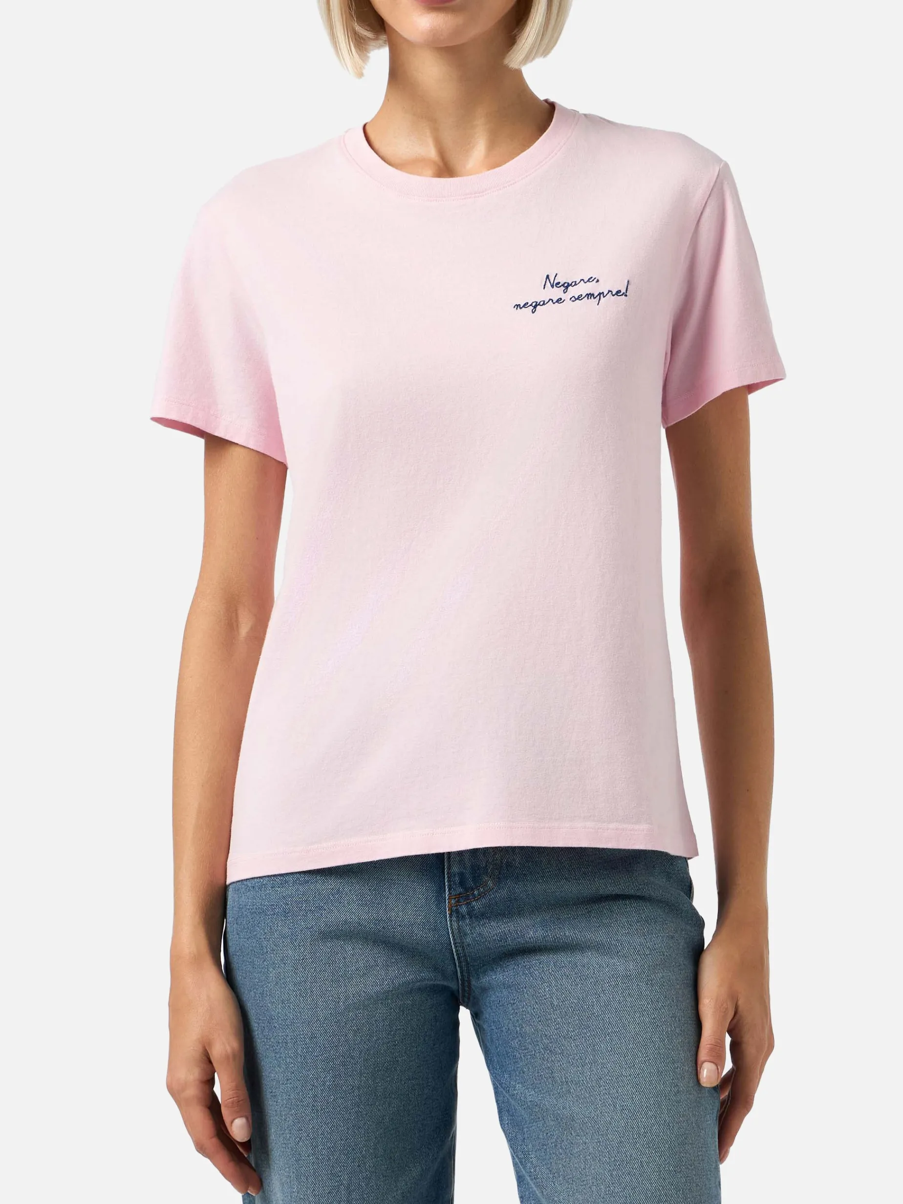 Ricamo Negare, negare sempre! all’altezza del taschino