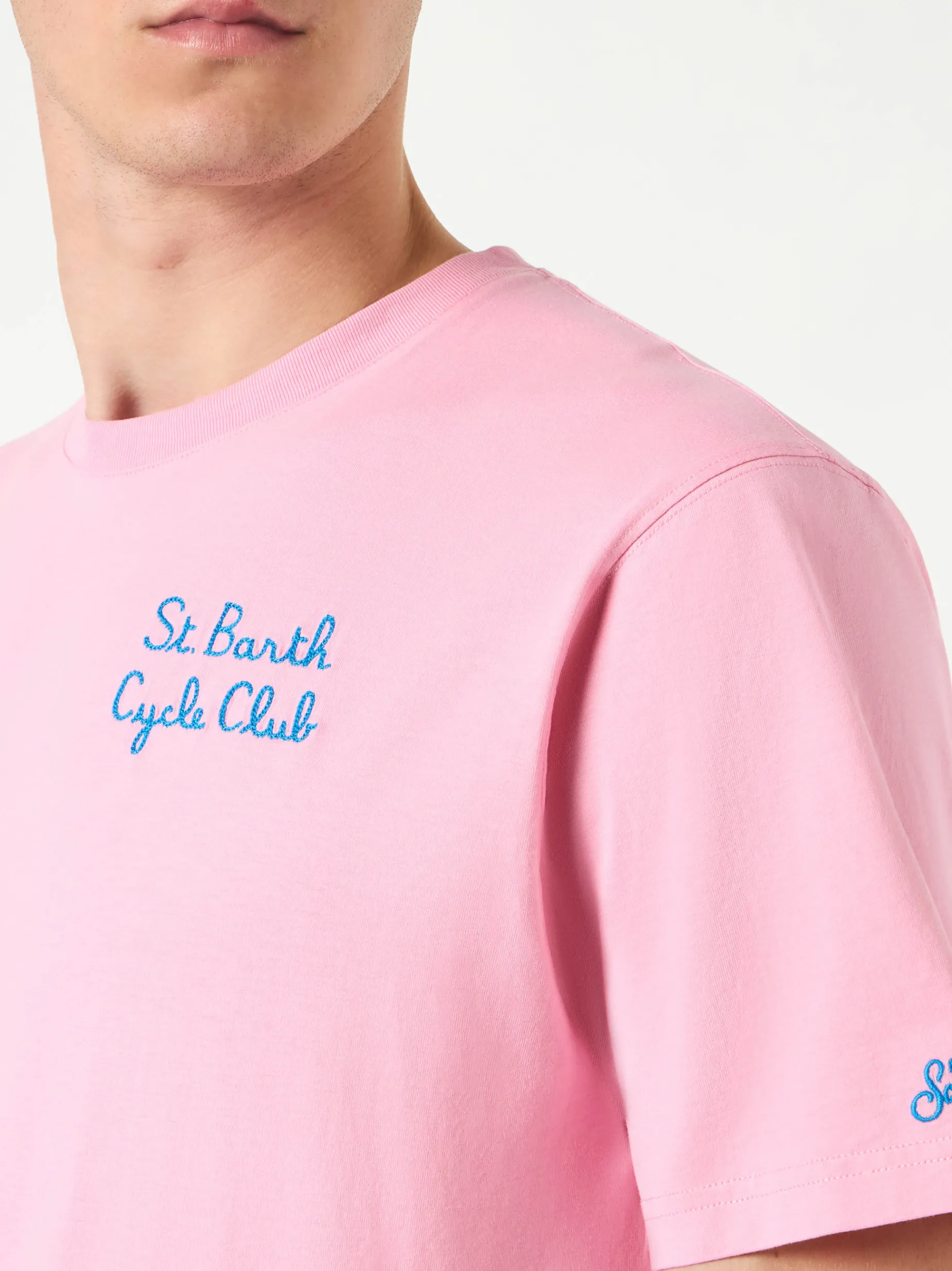 Stampa Cycling Homer sul retro e ricamo St. Barth Cycle club frontale