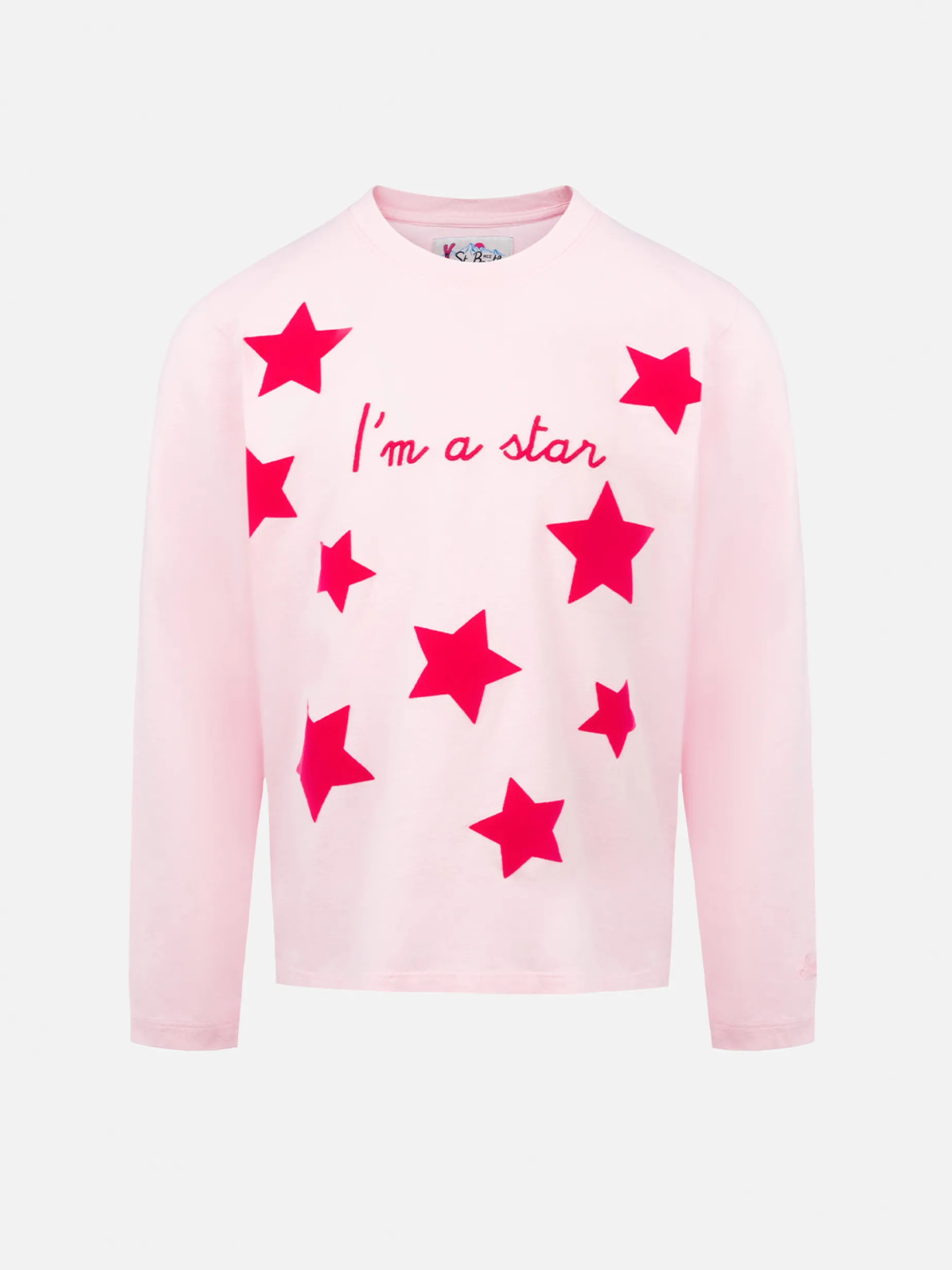 Maglietta girocollo a maniche lunghe rosa per bambina